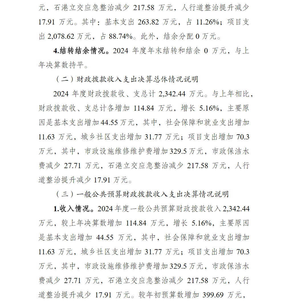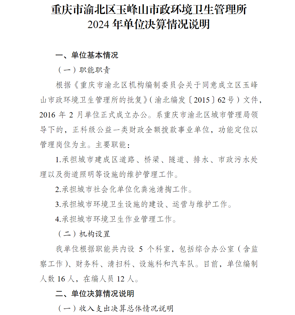 重庆市渝北区玉峰山市政环境卫生管理所2024年单位决算情况说明
