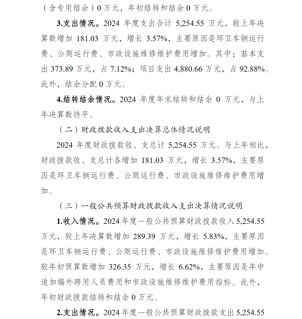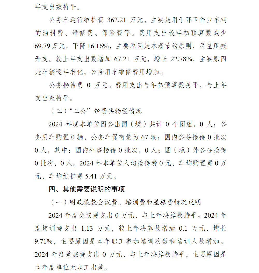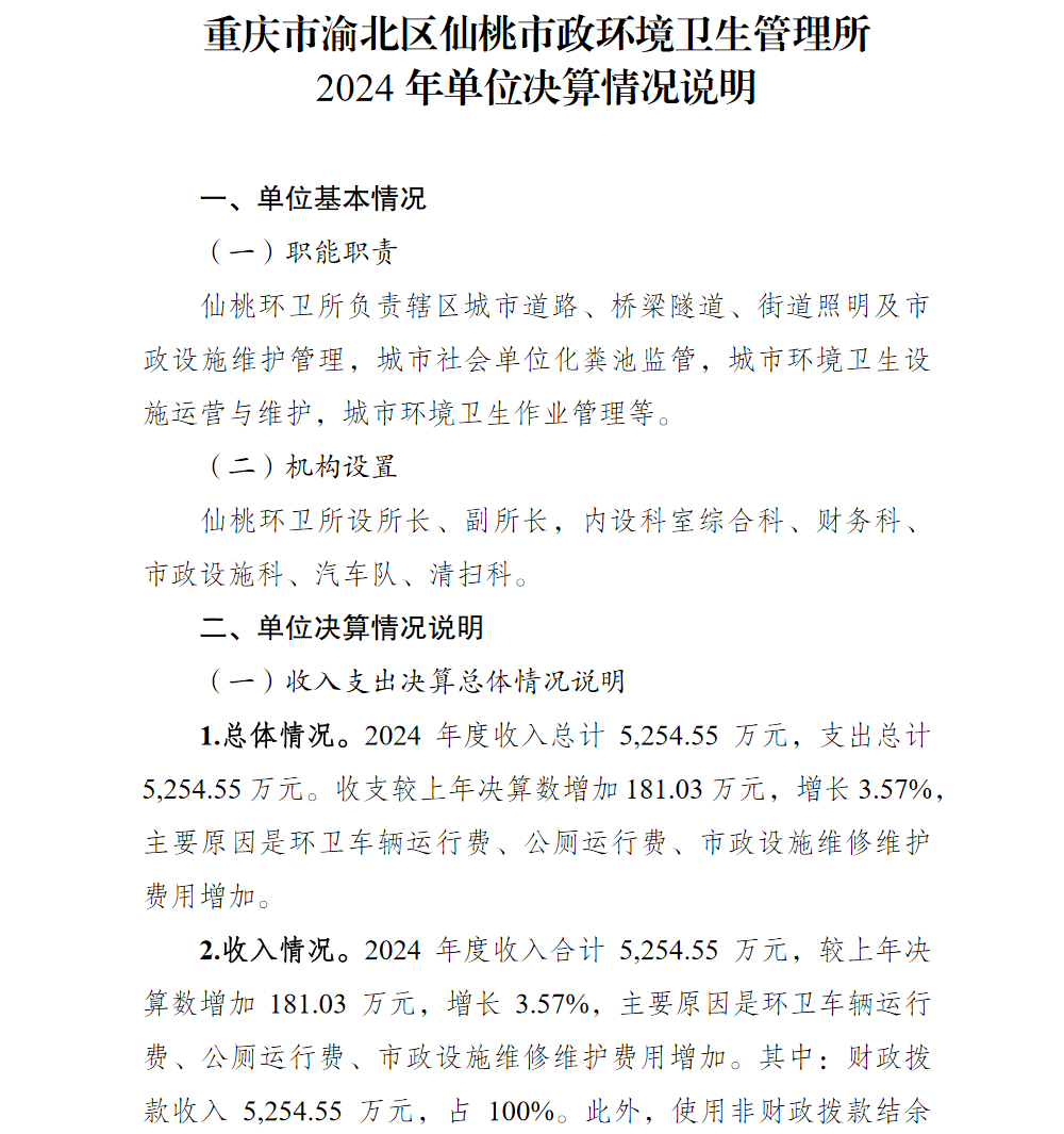 重庆市渝北区仙桃市政环境卫生管理所2024年单位决算情况说明