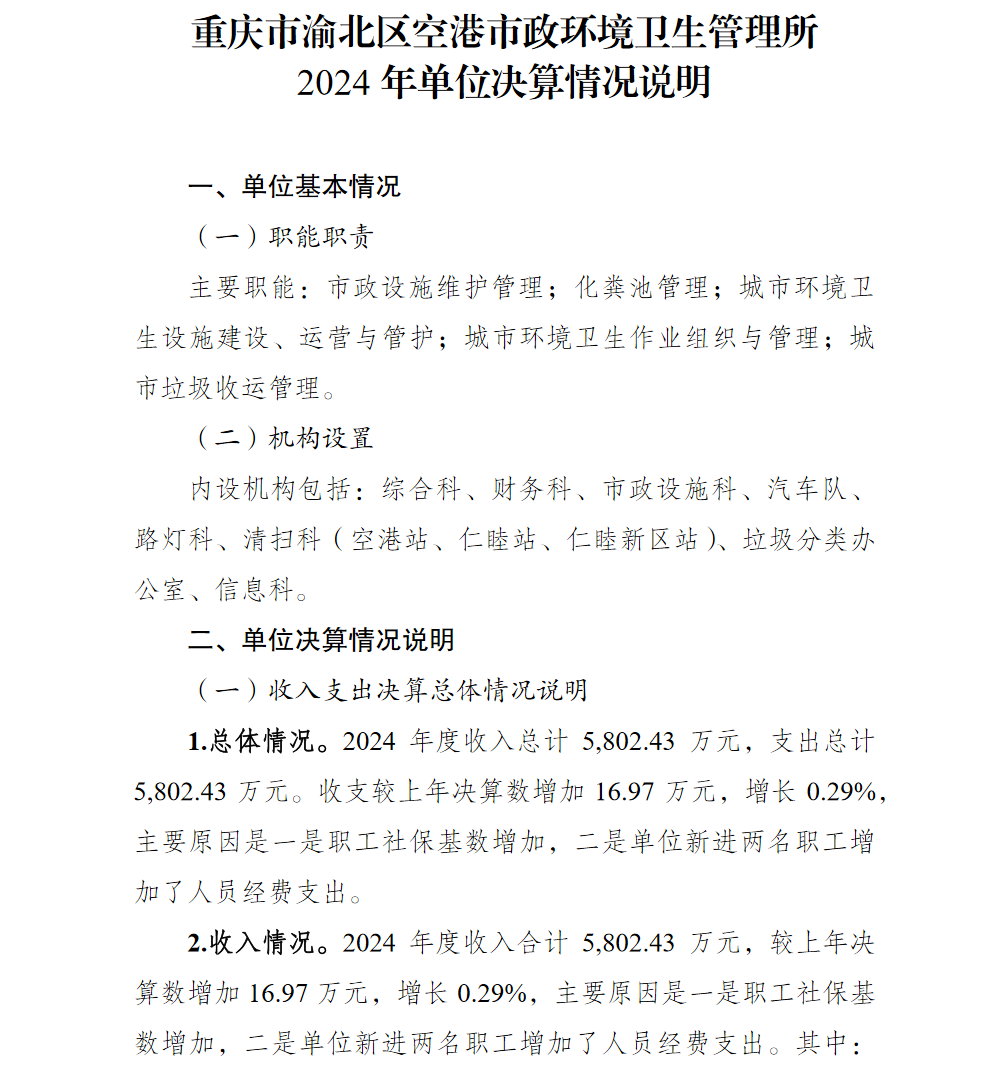 重庆市渝北区空港市政环境卫生管理所2024年单位决算情况说明
