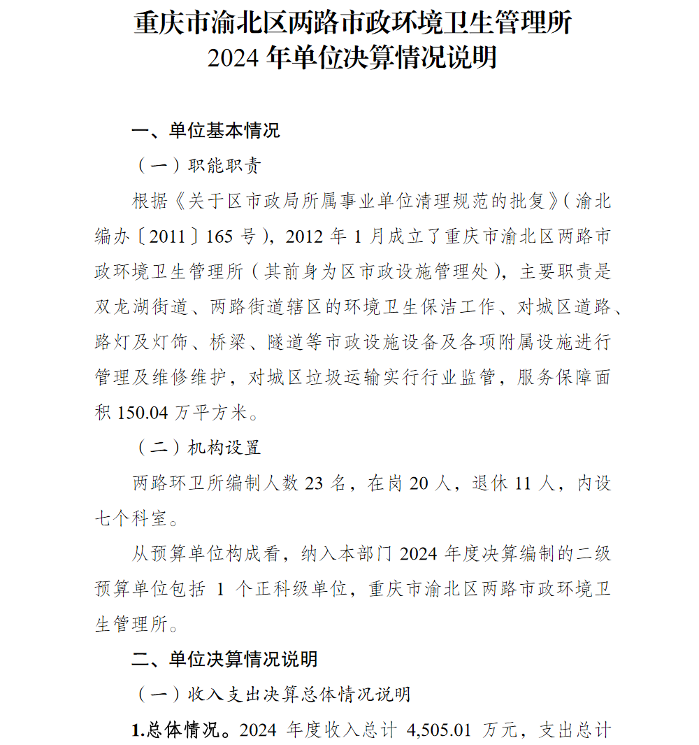 重庆市渝北区两路市政环境卫生管理所2024年单位决算情况说明