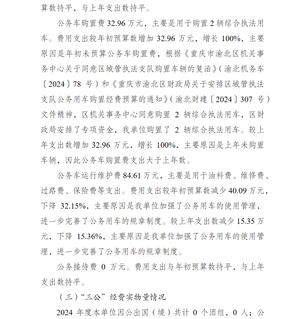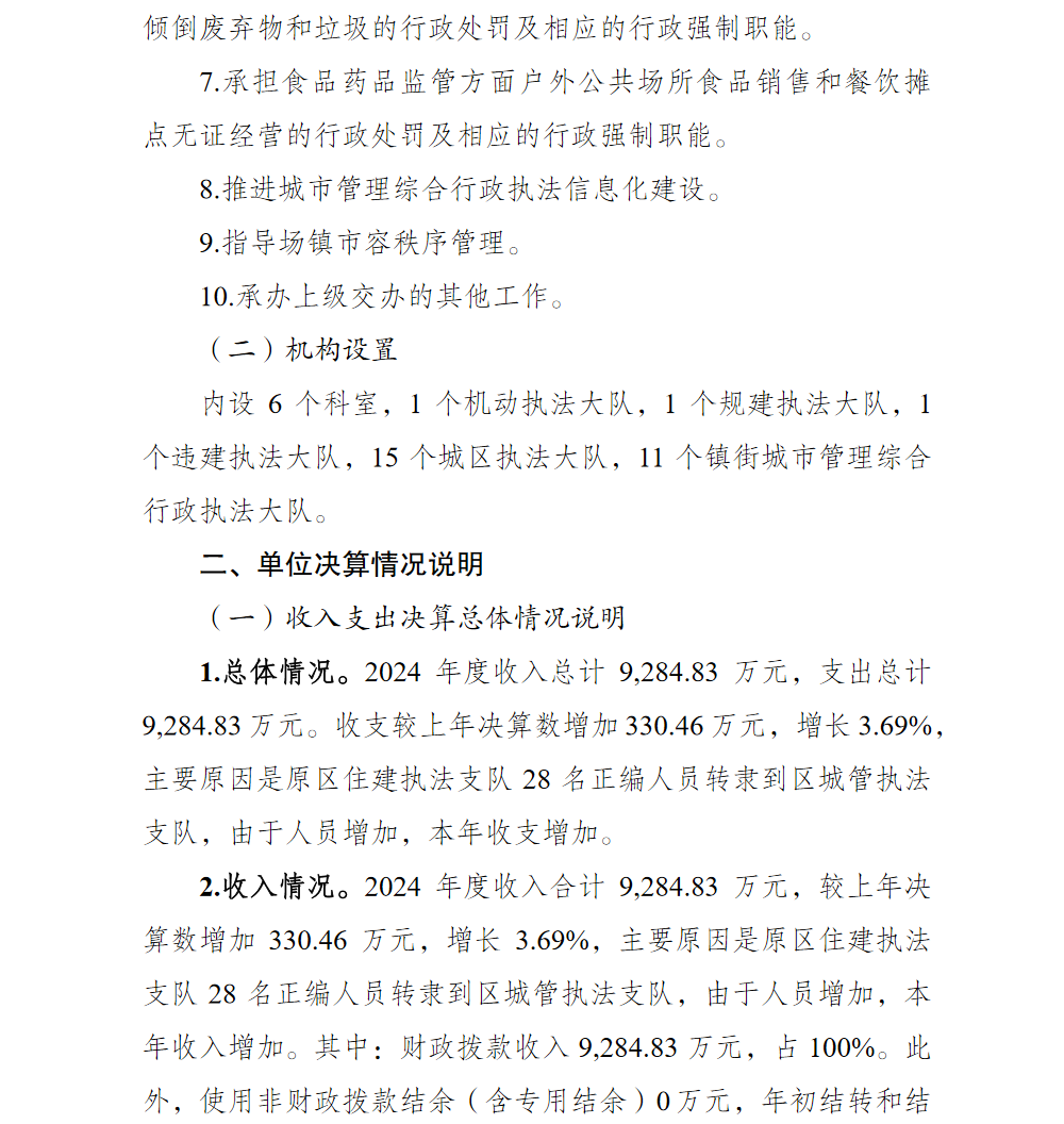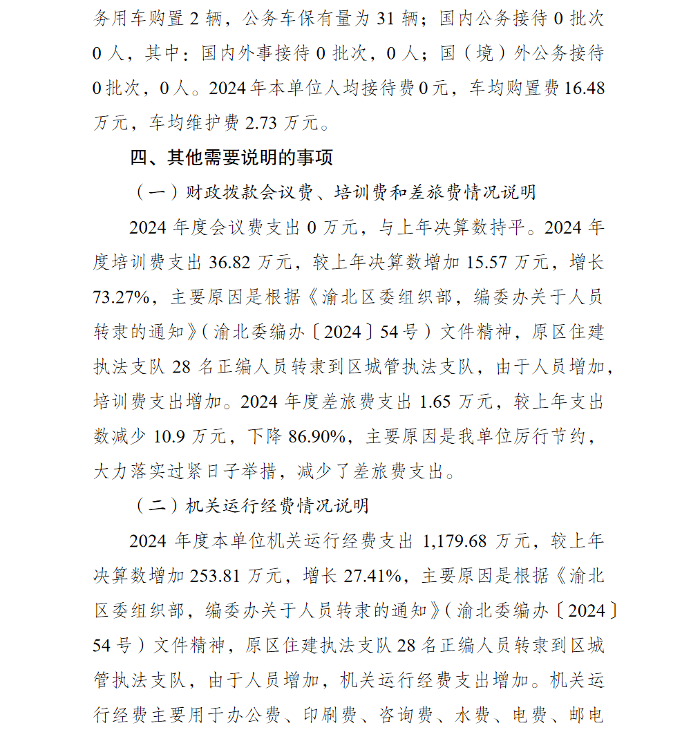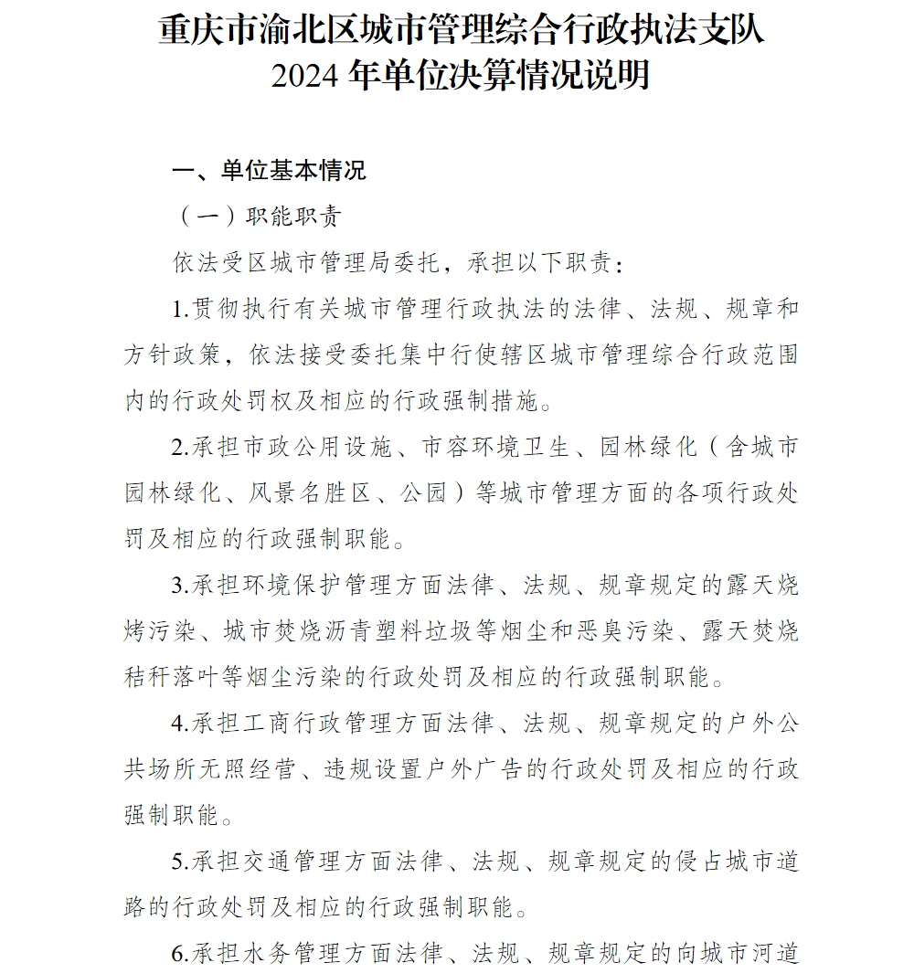 重庆市渝北区城市管理综合行政执法支队2024年单位决算情况说明