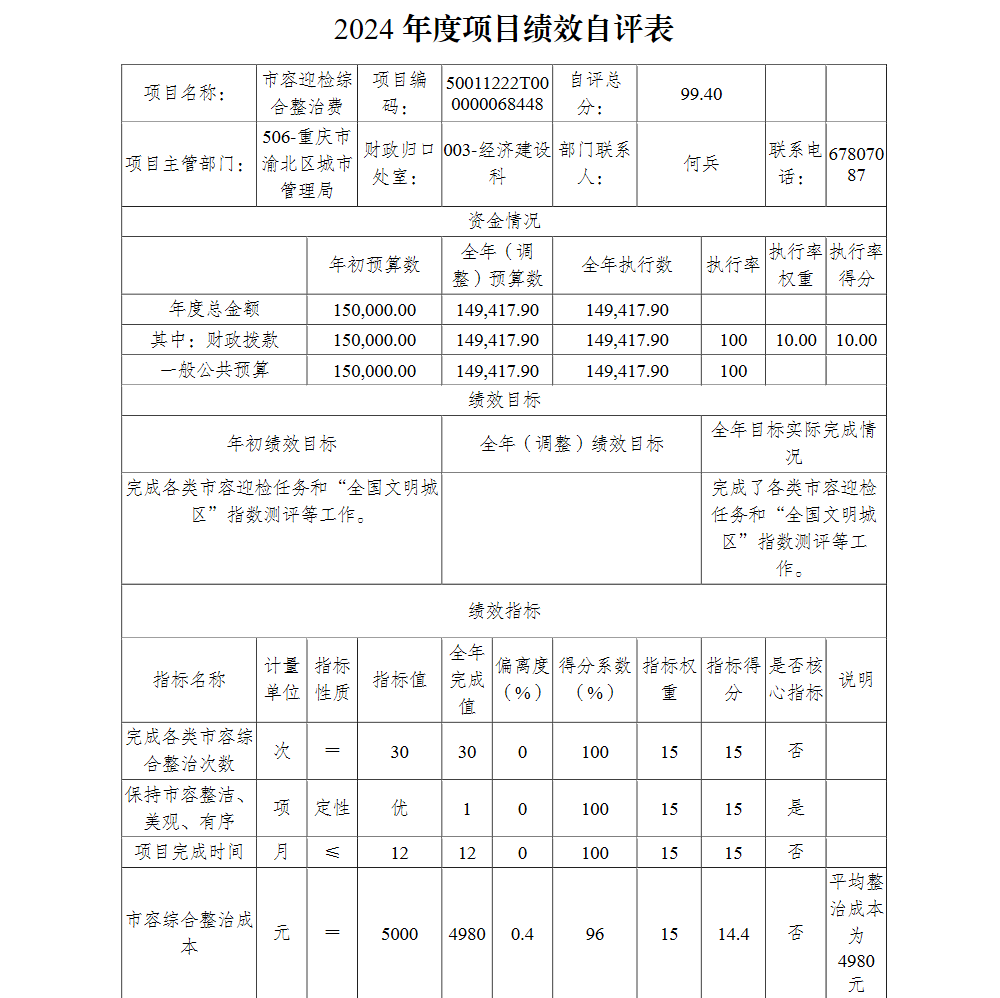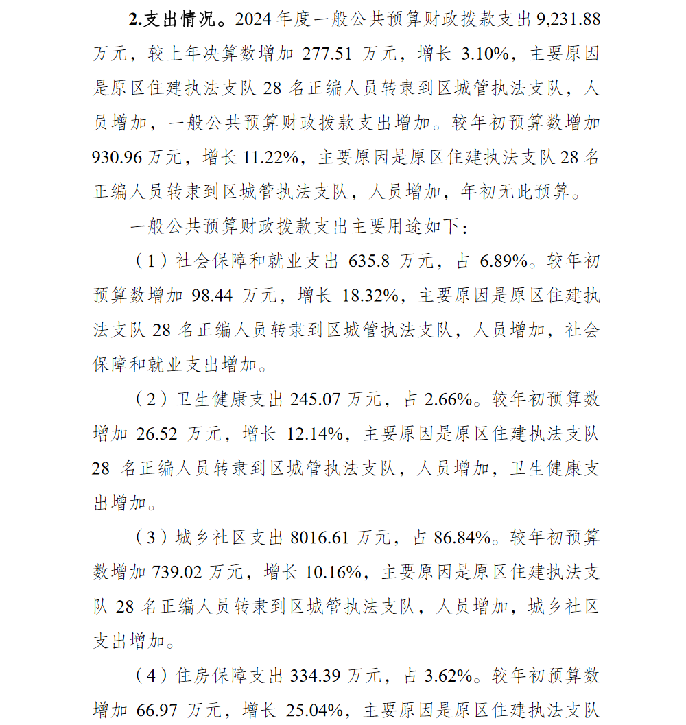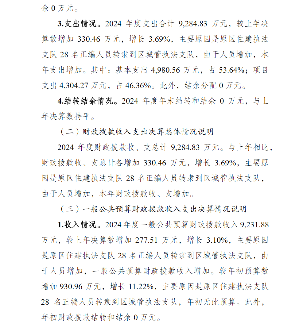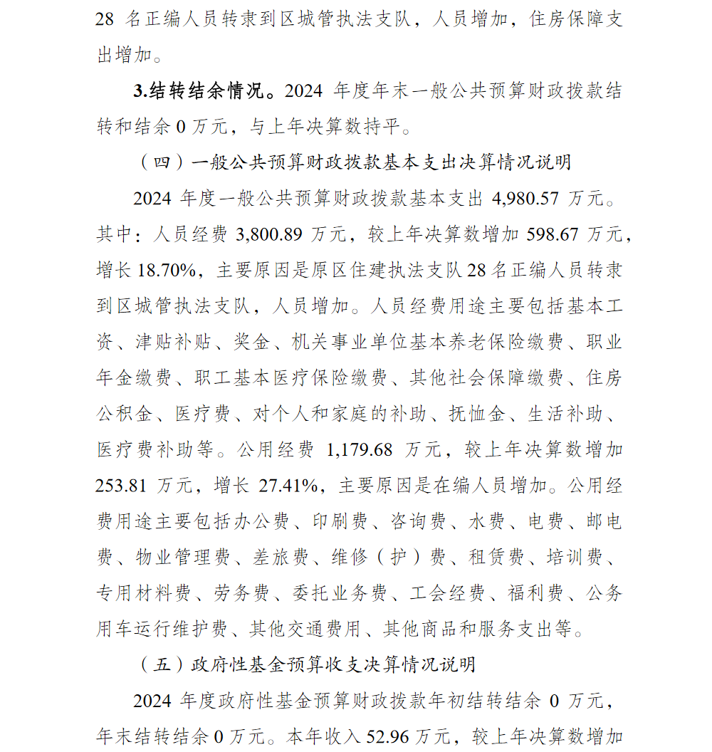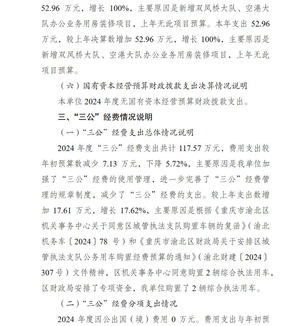 重庆市渝北区城市管理综合行政执法支队2024年单位决算情况说明