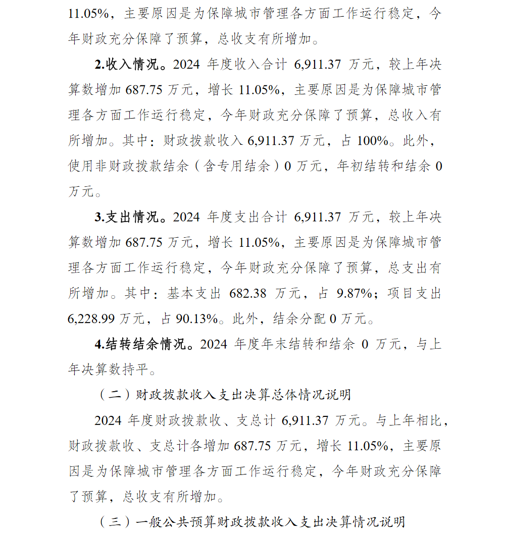 重庆市渝北区城市管理局(本级)2024年单位决算情况说明