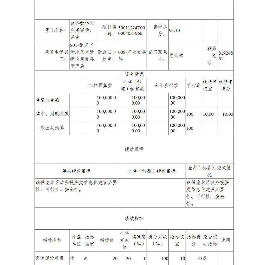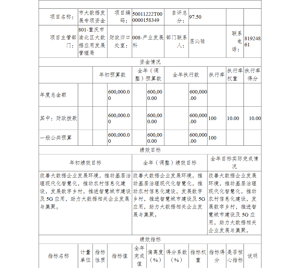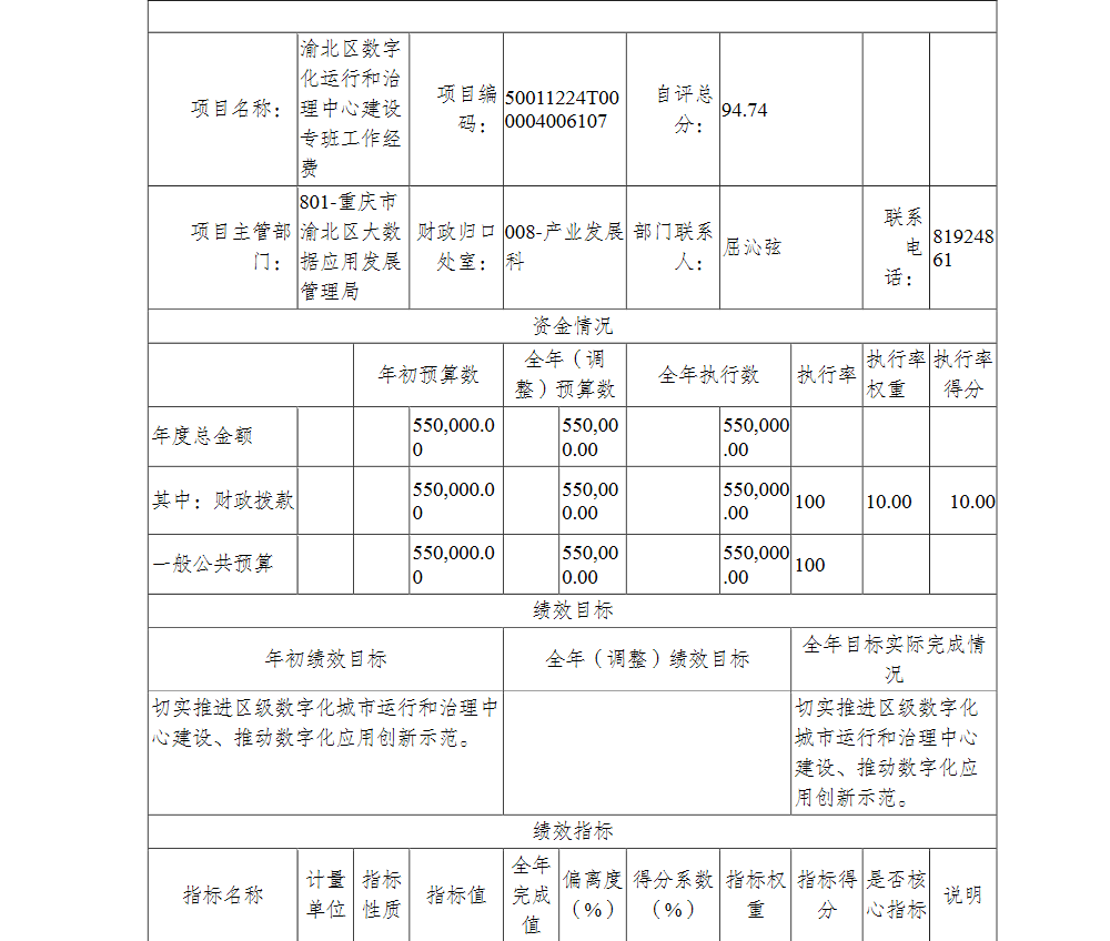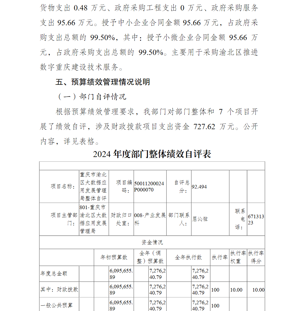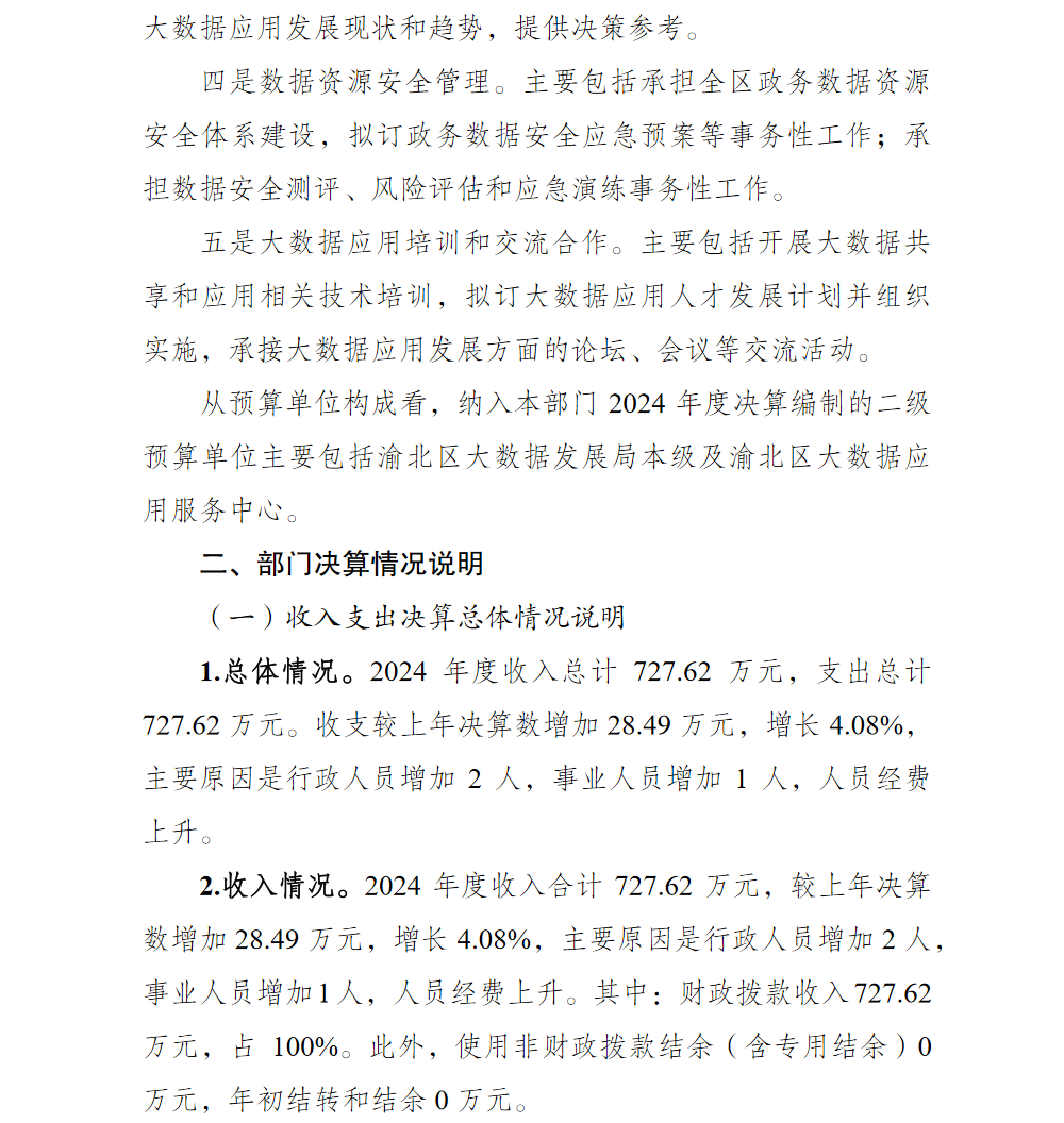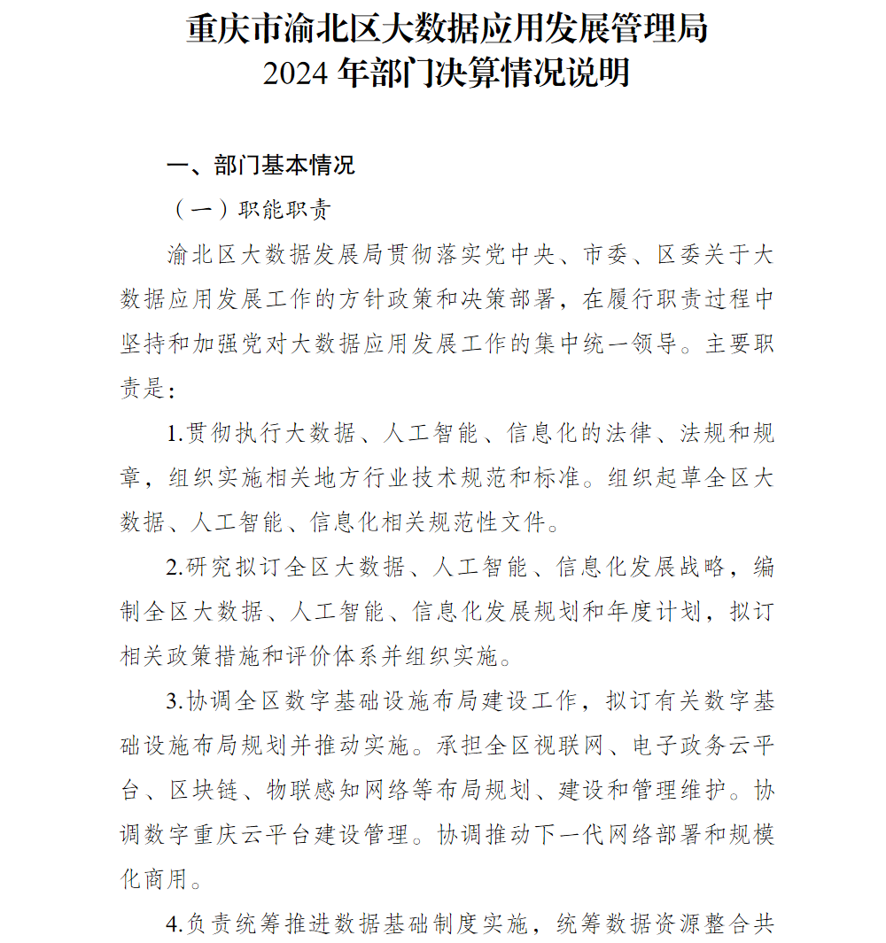 重庆市渝北区大数据应用发展管理局2024年部门决算情况说明
