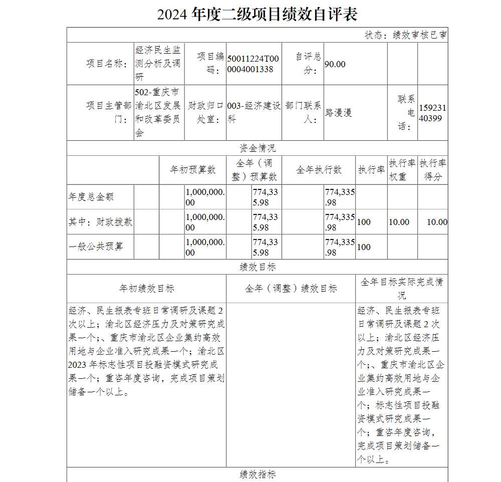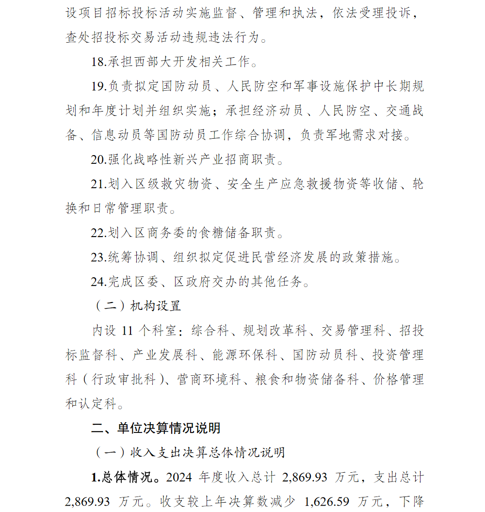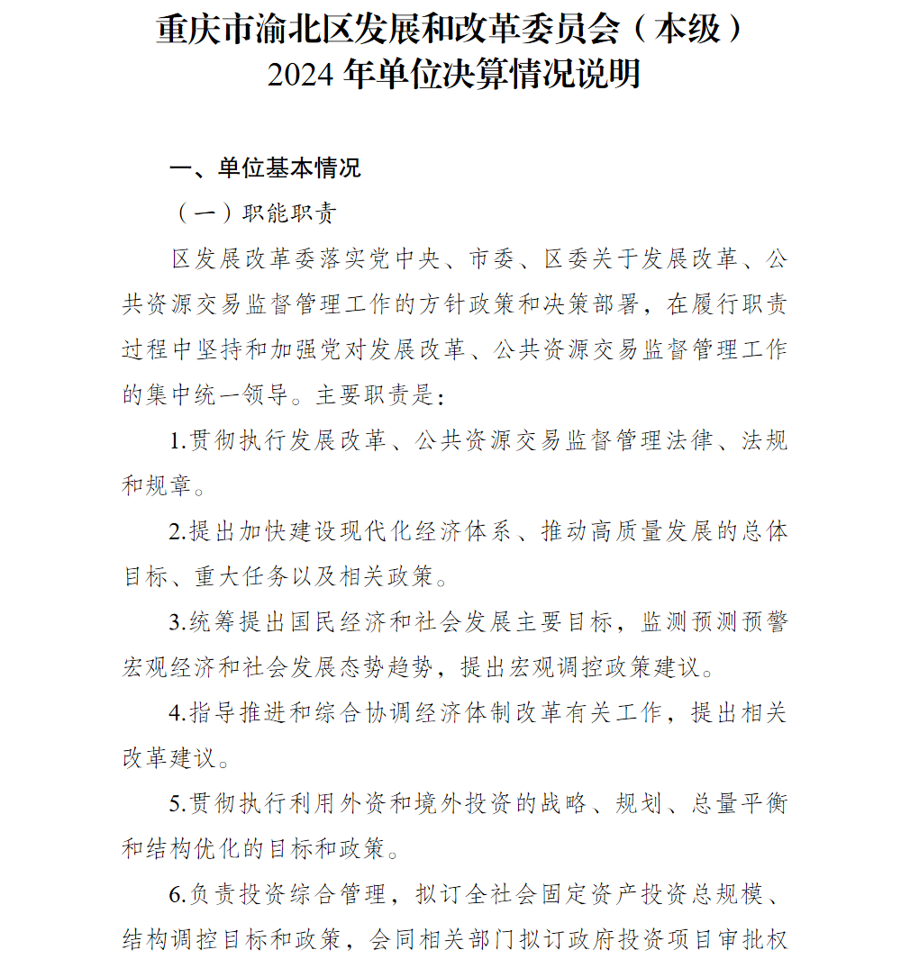 重庆市渝北区发展和改革委员会(本级)2024年单位决算情况说明