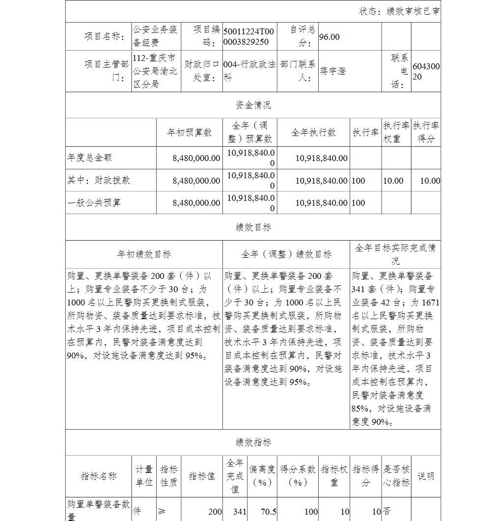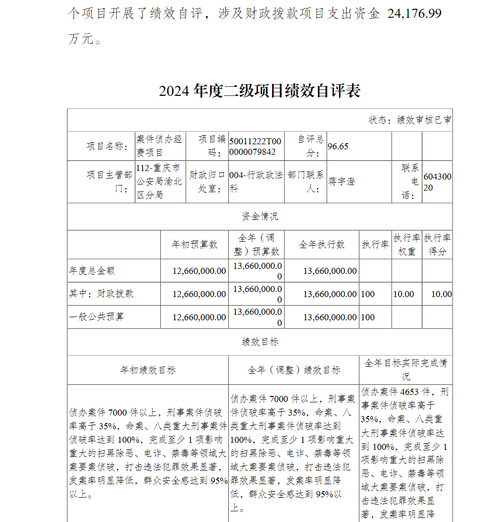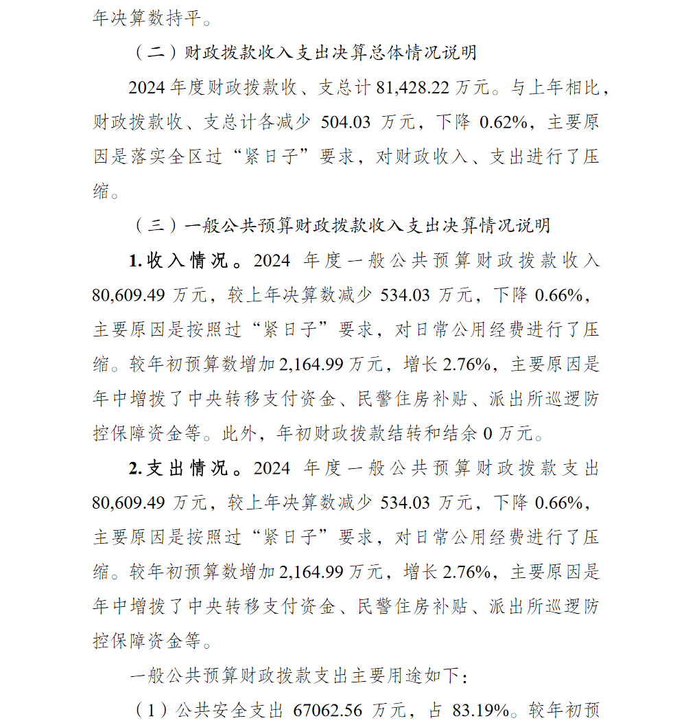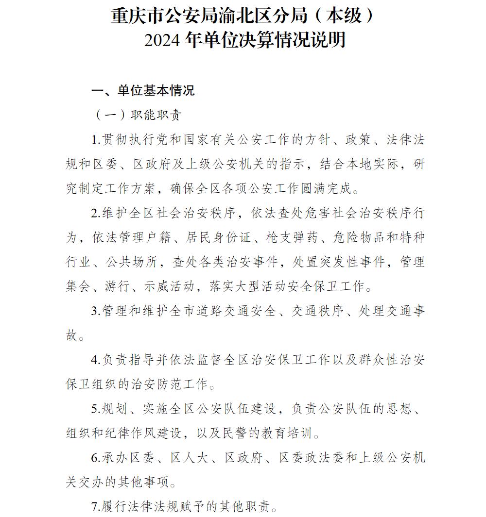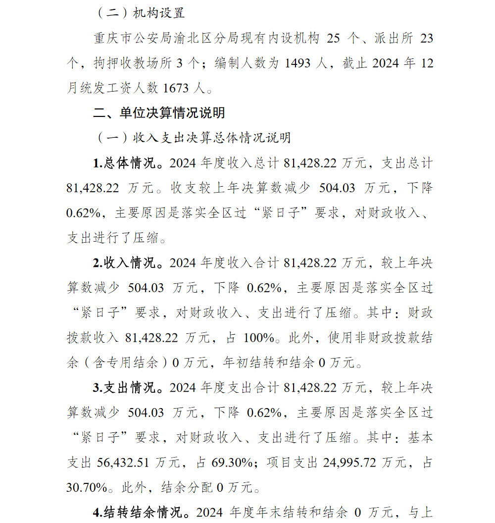重庆市公安局渝北区分局(本级)2024年单位决算情况说明