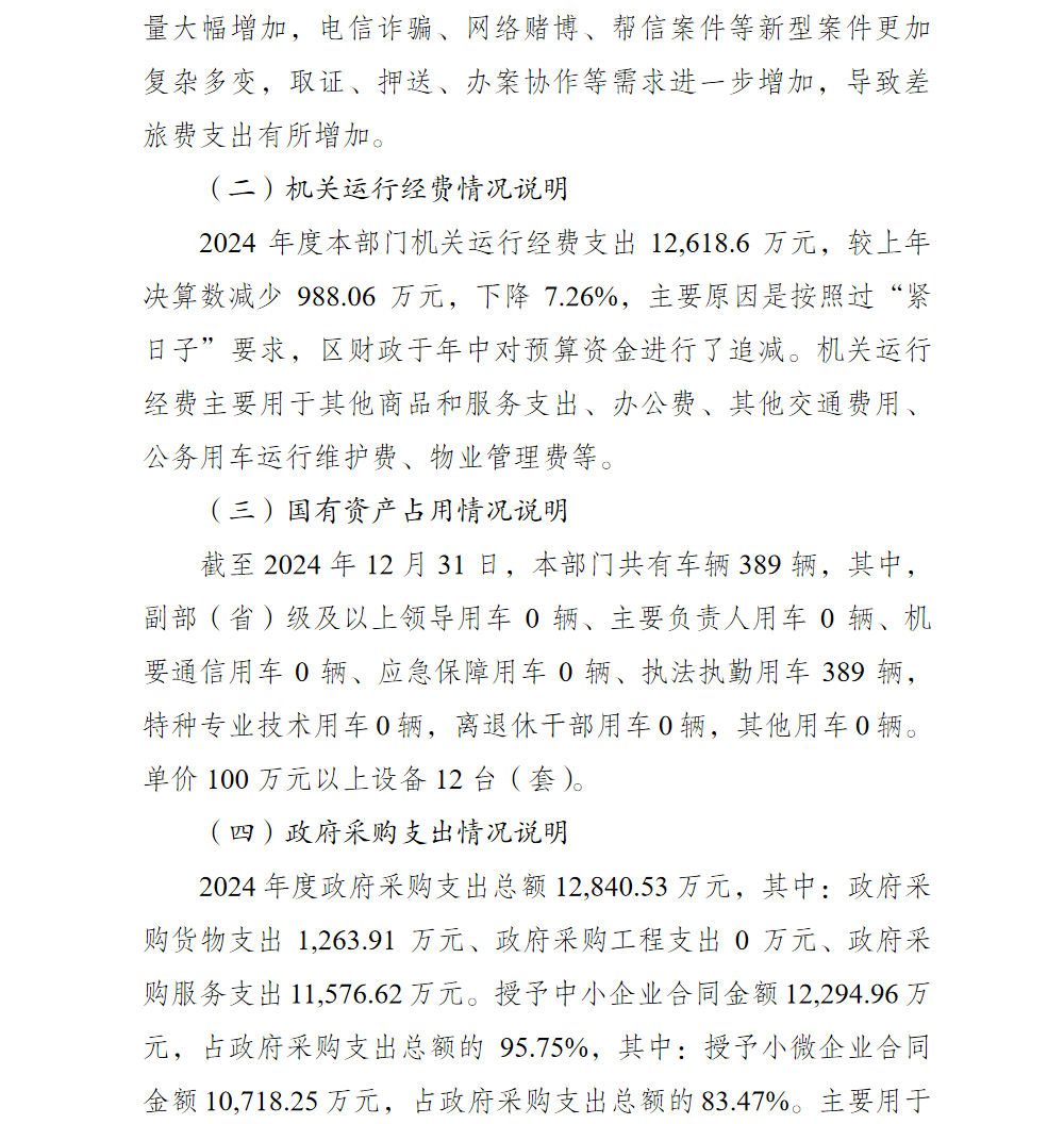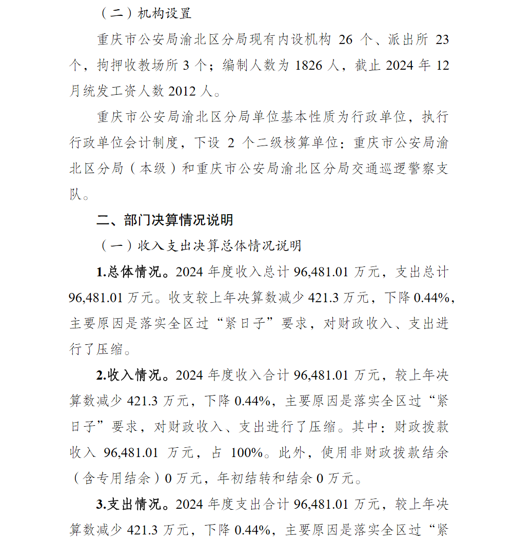 重庆市公安局渝北区分局2024年部门决算情况说明