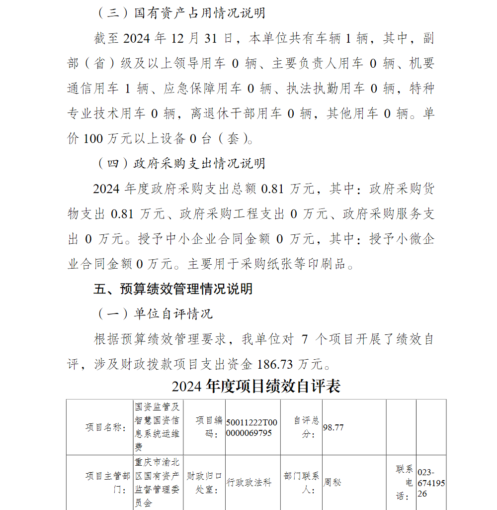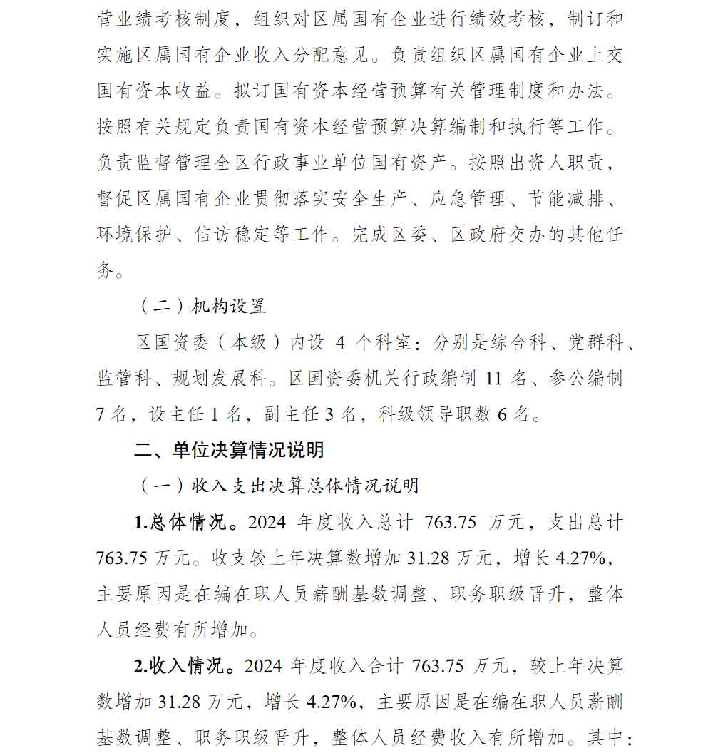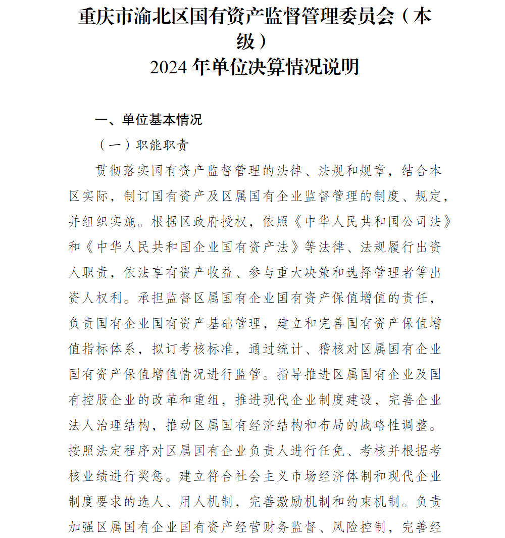 重庆市渝北区国有资产监督管理委员会(本级)2024年单位决算情况说明
