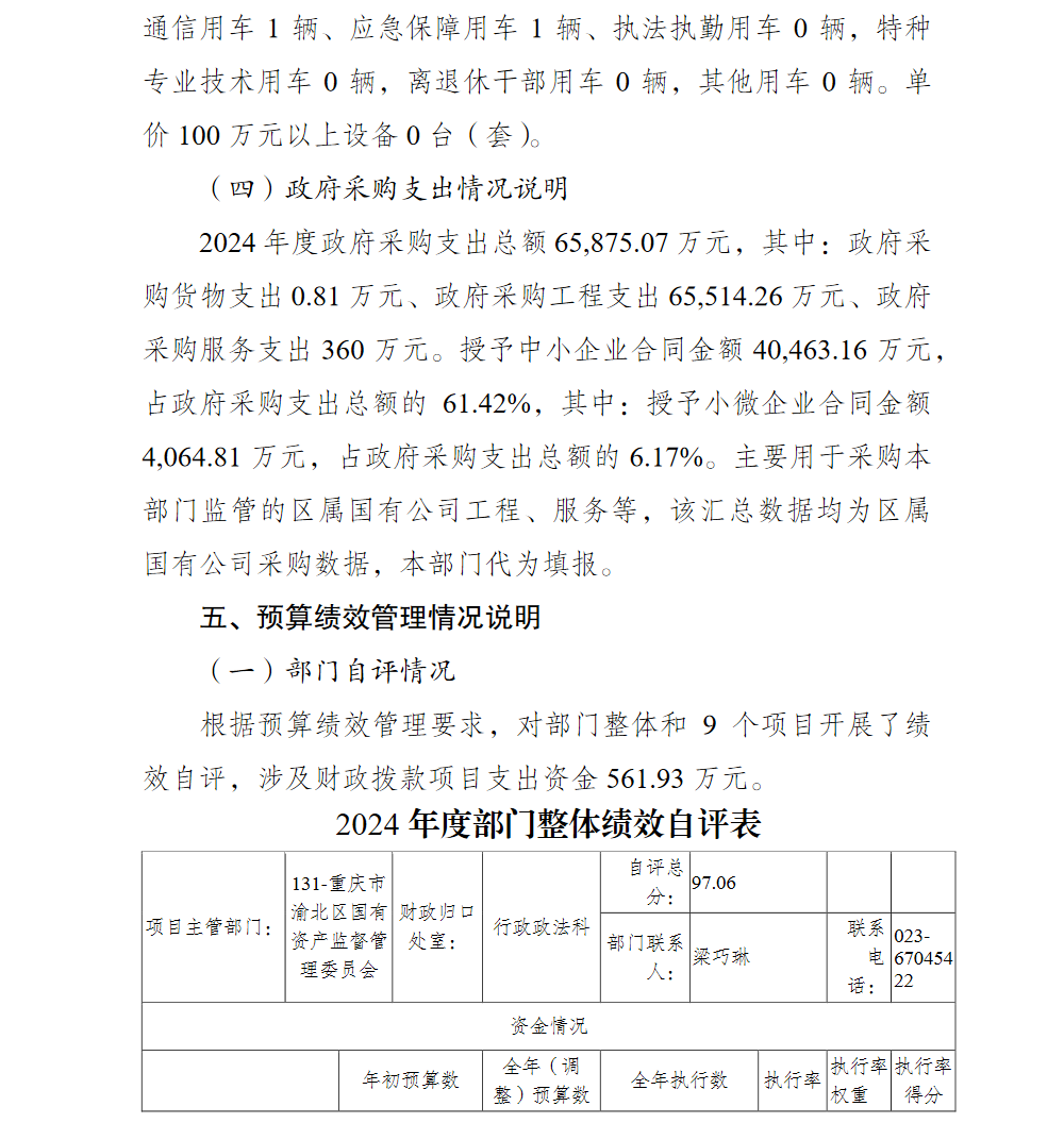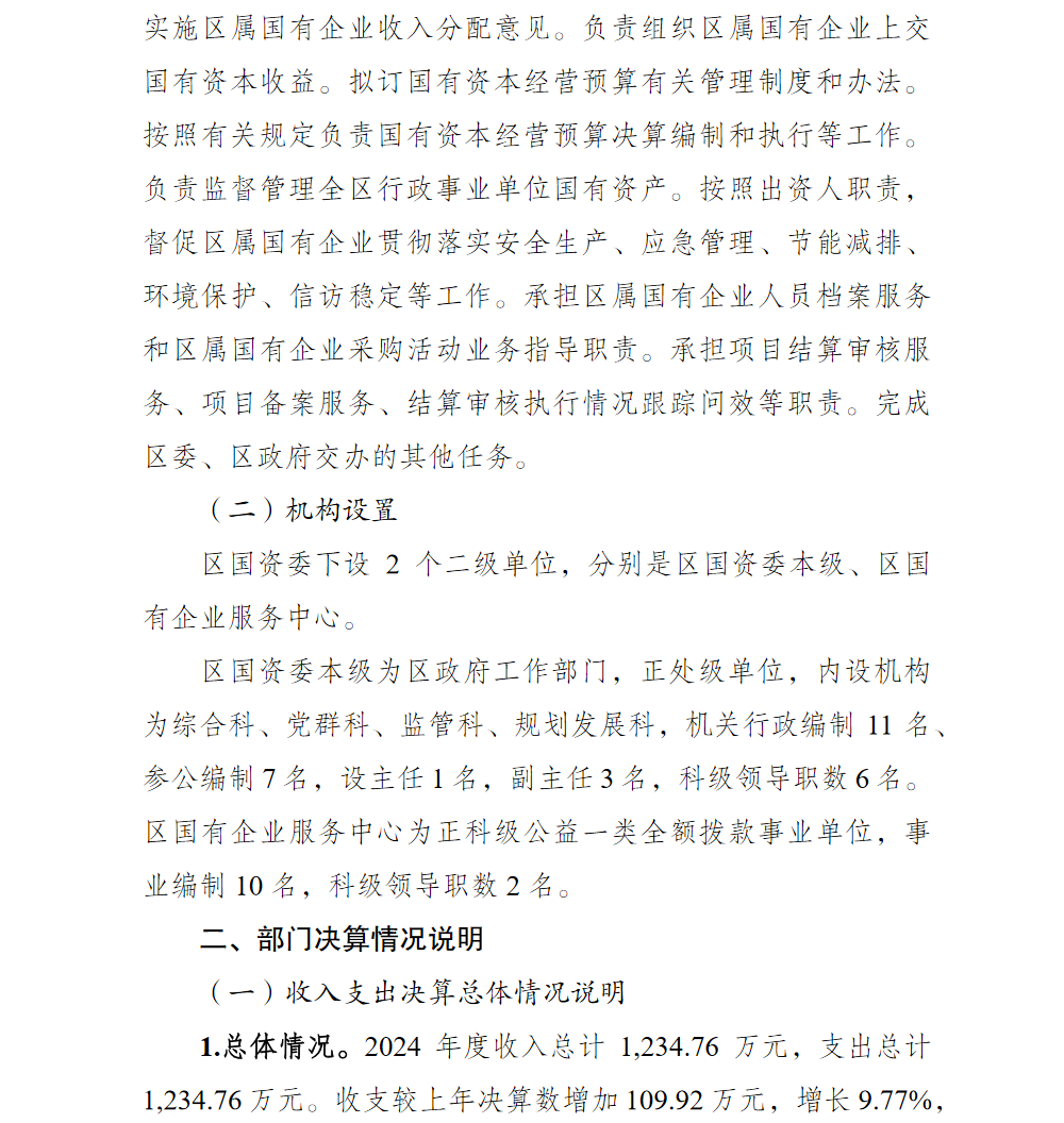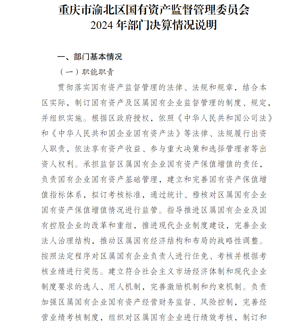 重庆市渝北区国有资产监督管理委员会2024年部门决算情况说明