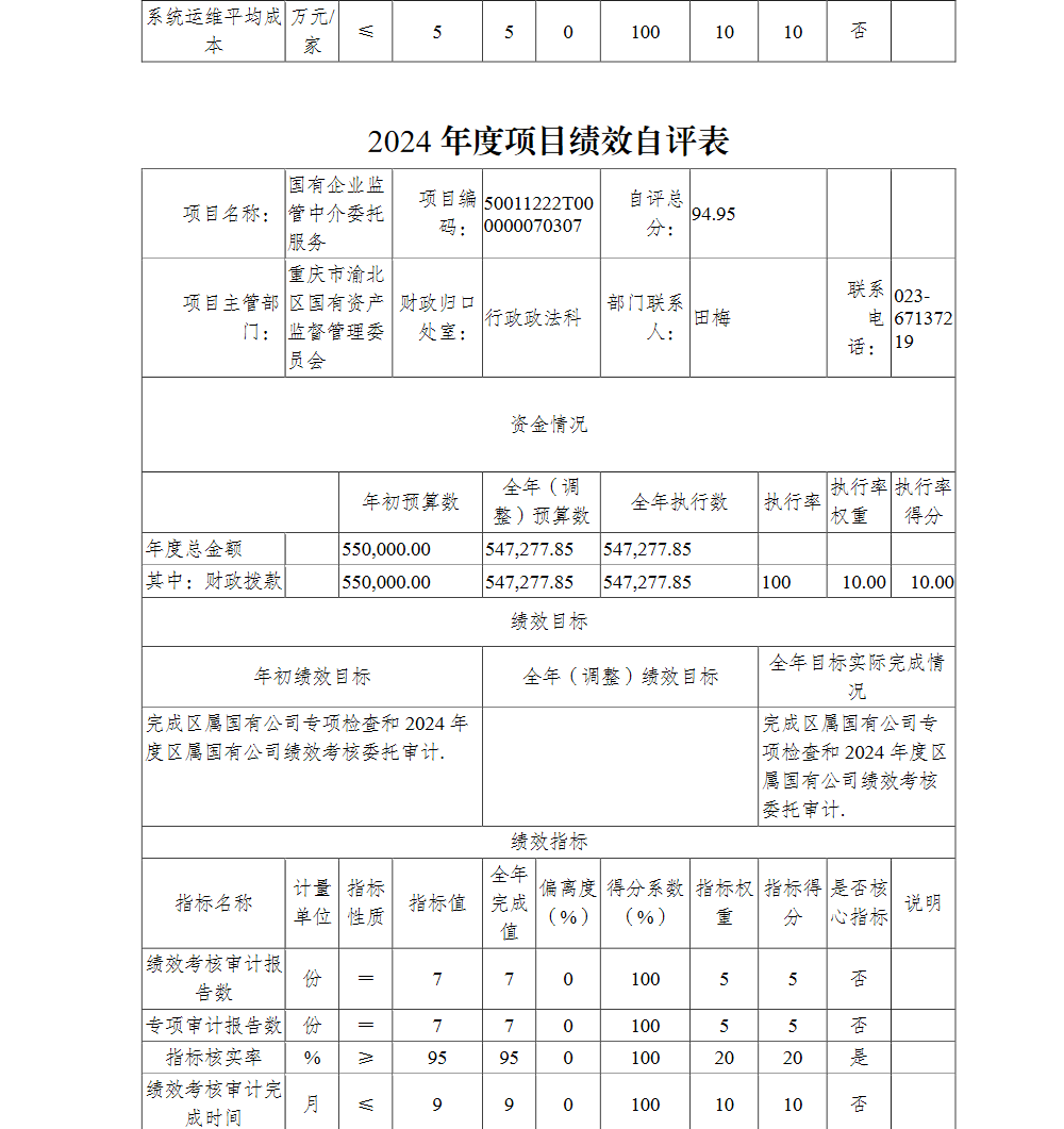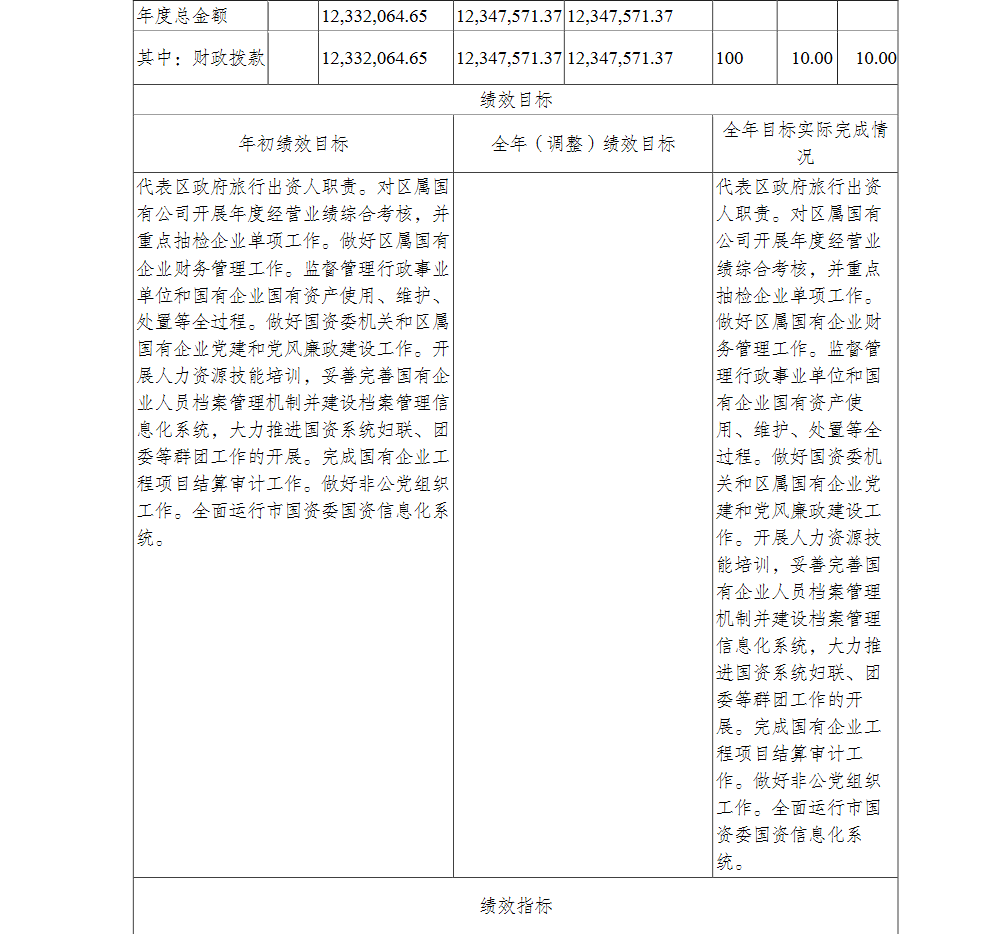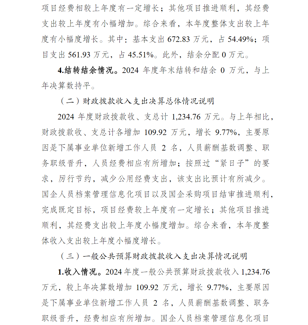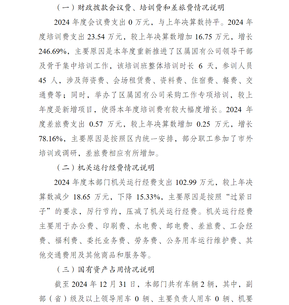 重庆市渝北区国有资产监督管理委员会2024年部门决算情况说明