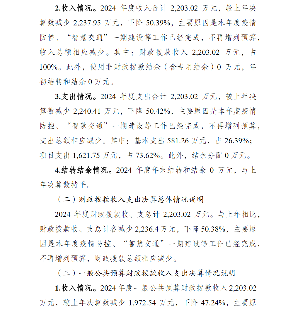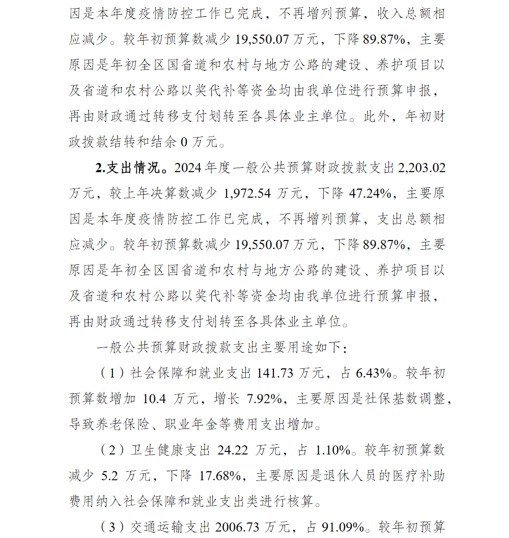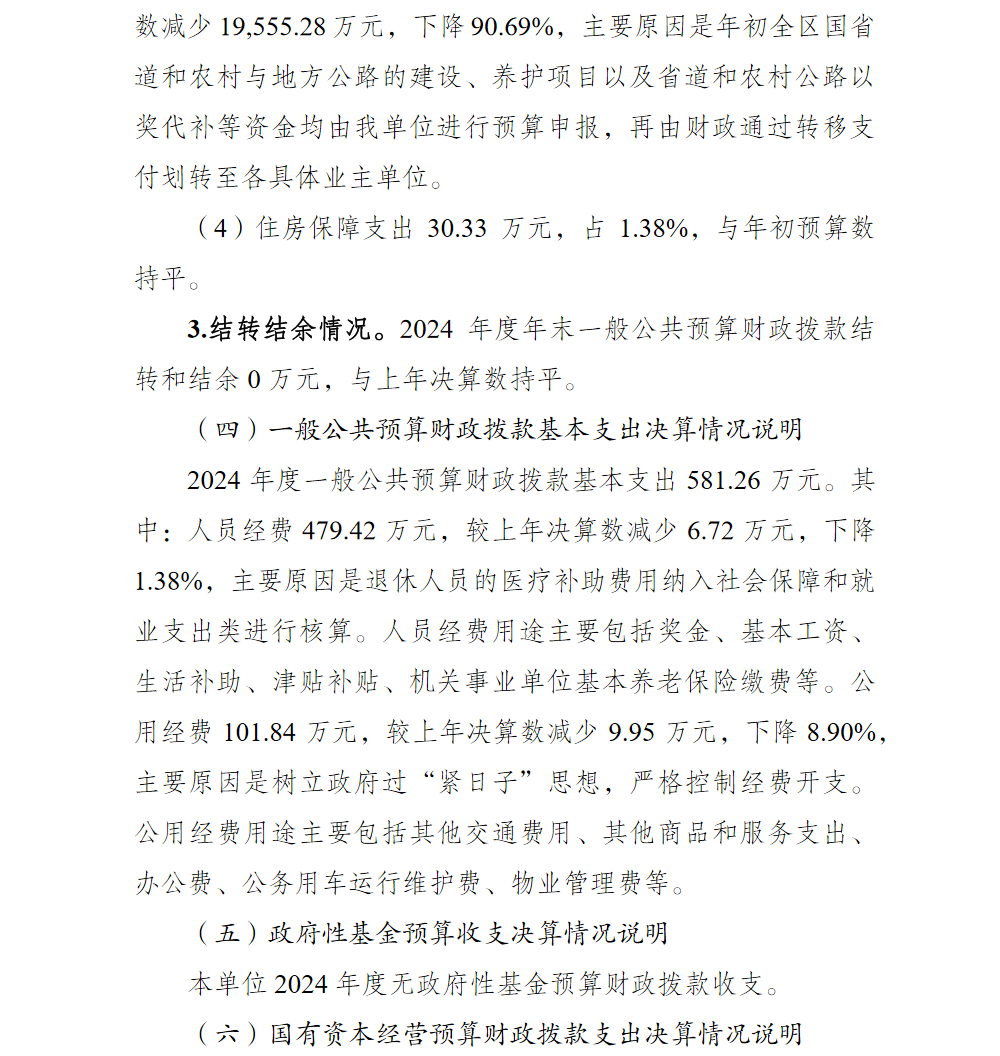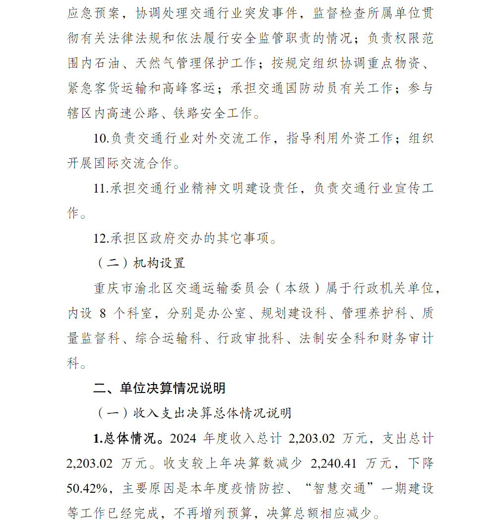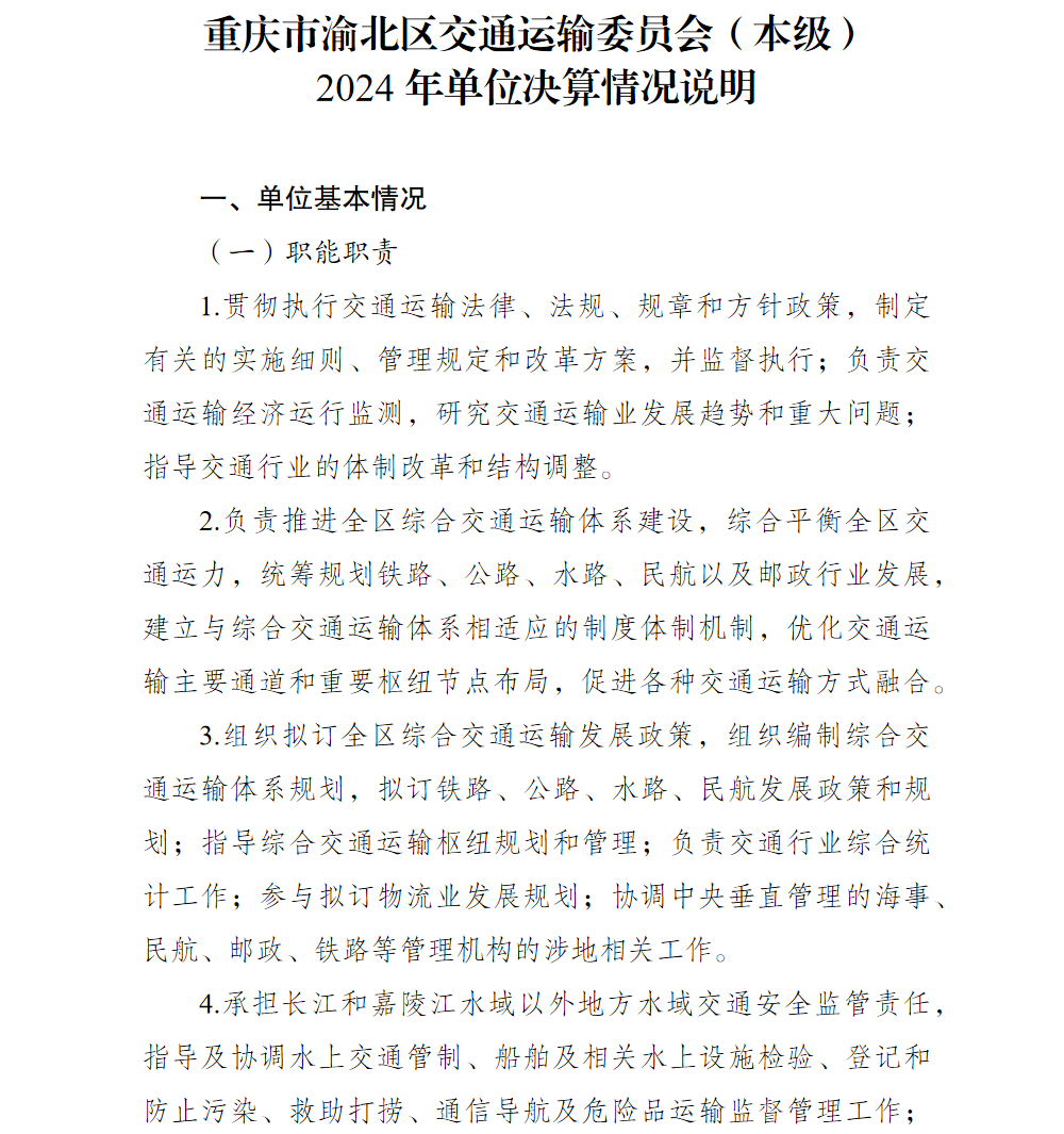重庆市渝北区交通运输委员会(本级)2024年单位决算情况说明