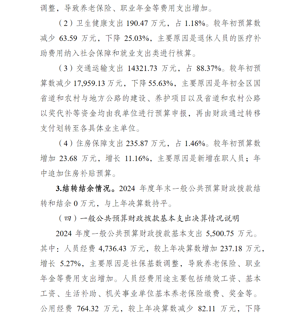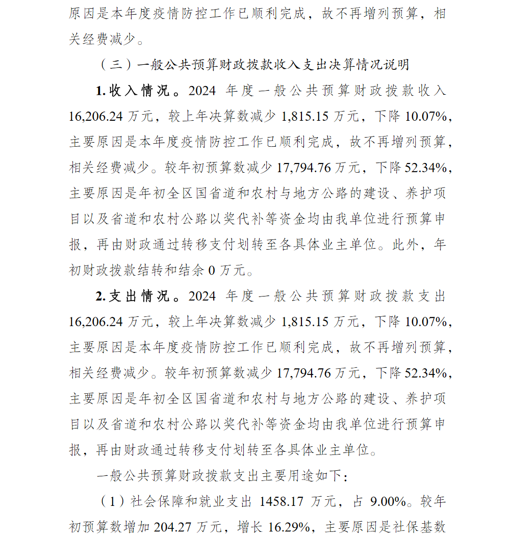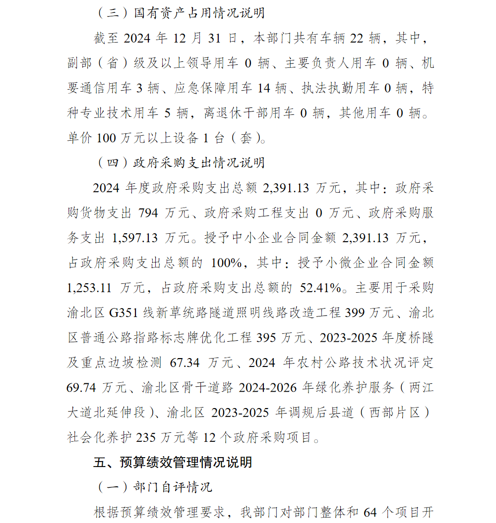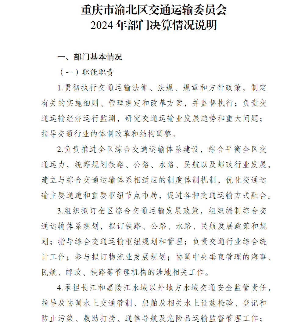 重庆市渝北区交通运输委员会2024年部门决算情况说明