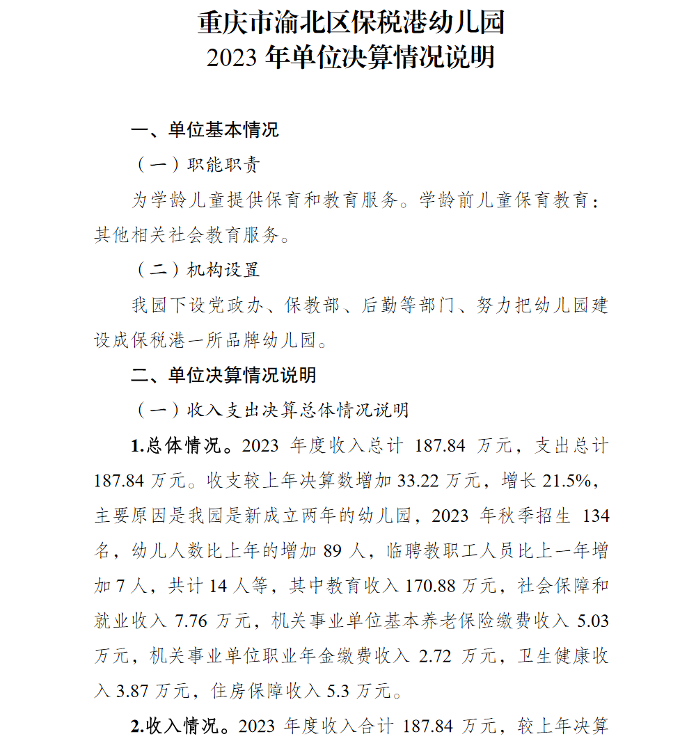 重庆市渝北区保税港幼儿园2023年单位决算情况说明及附表.pdf