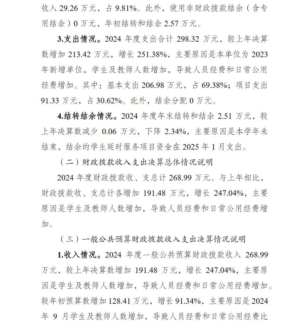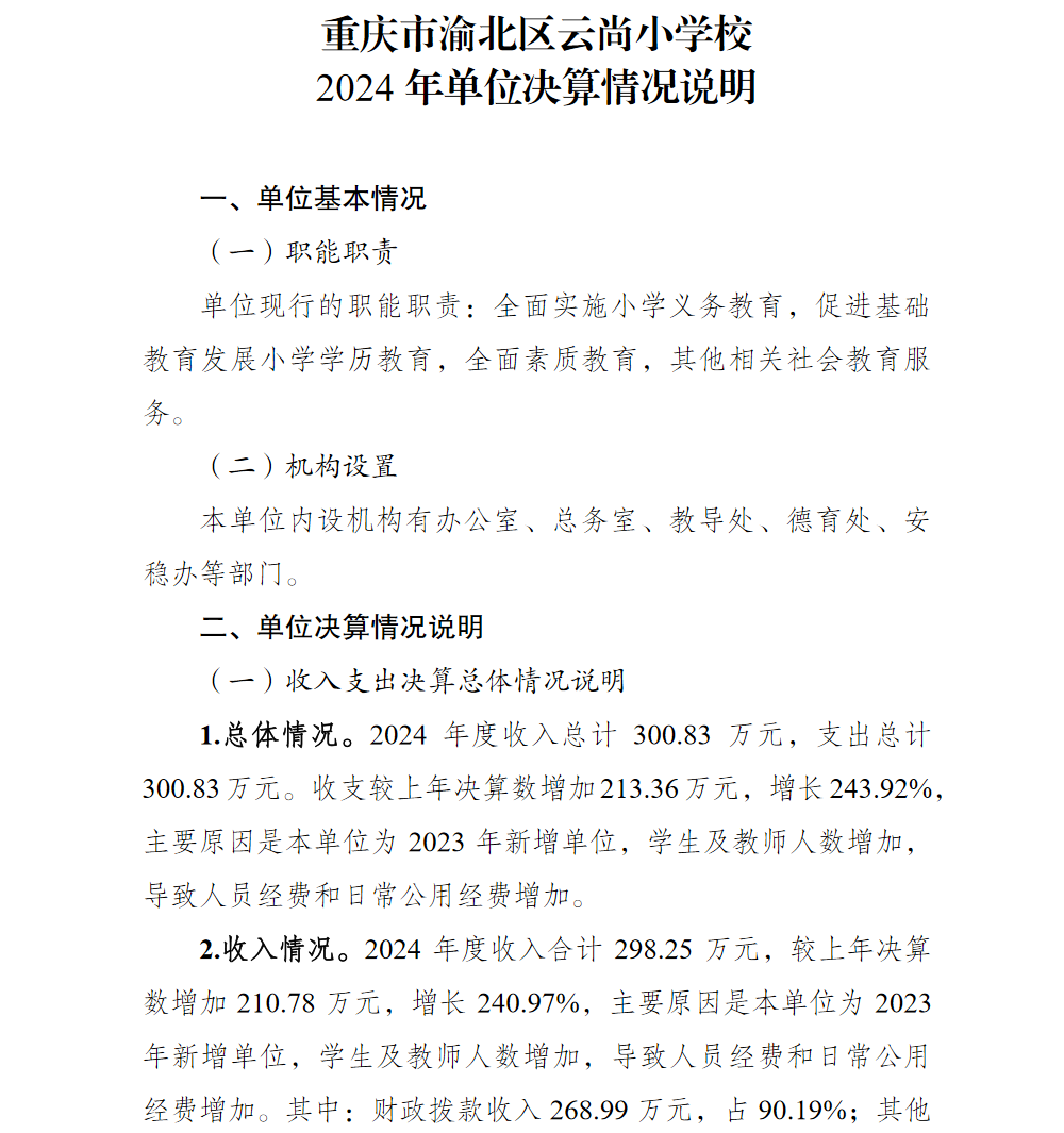 重庆市渝北区云尚小学校2024年单位决算情况说明