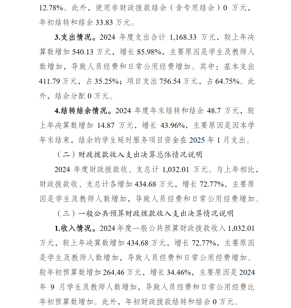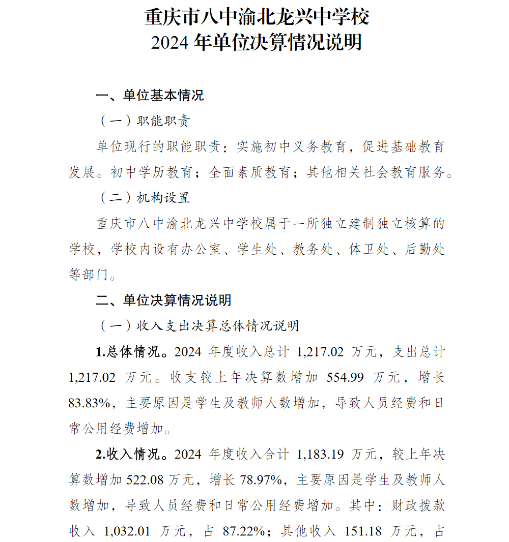 重庆市八中渝北龙兴中学校2024年单位决算情况说明
