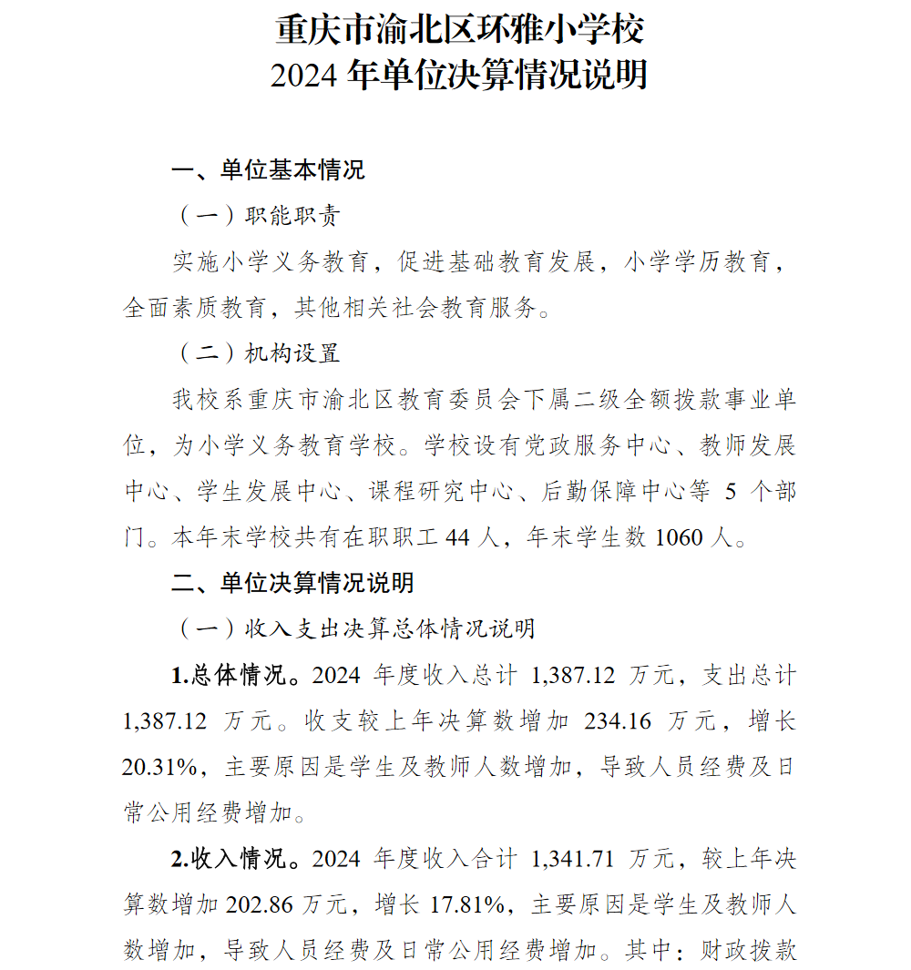 重庆市渝北区环雅小学校2024年单位决算情况说明及附表.pdf