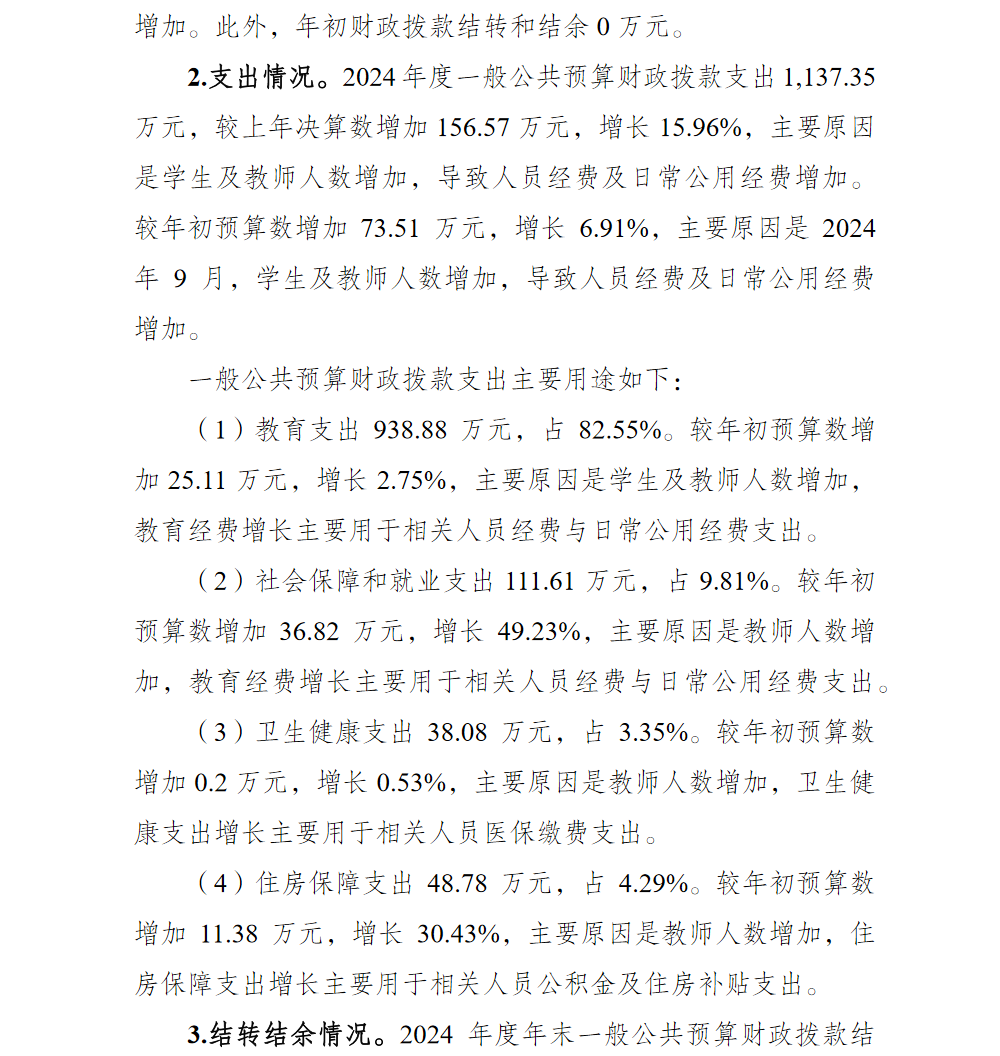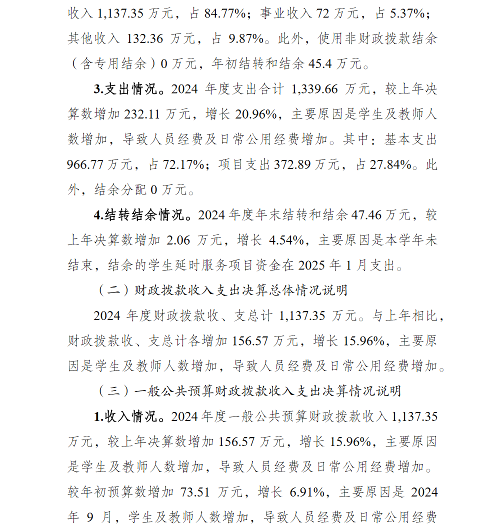 重庆市渝北区环雅小学校2024年单位决算情况说明