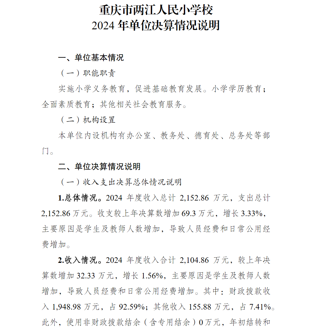 重庆市两江人民小学校2024年单位决算情况说明及附表.pdf