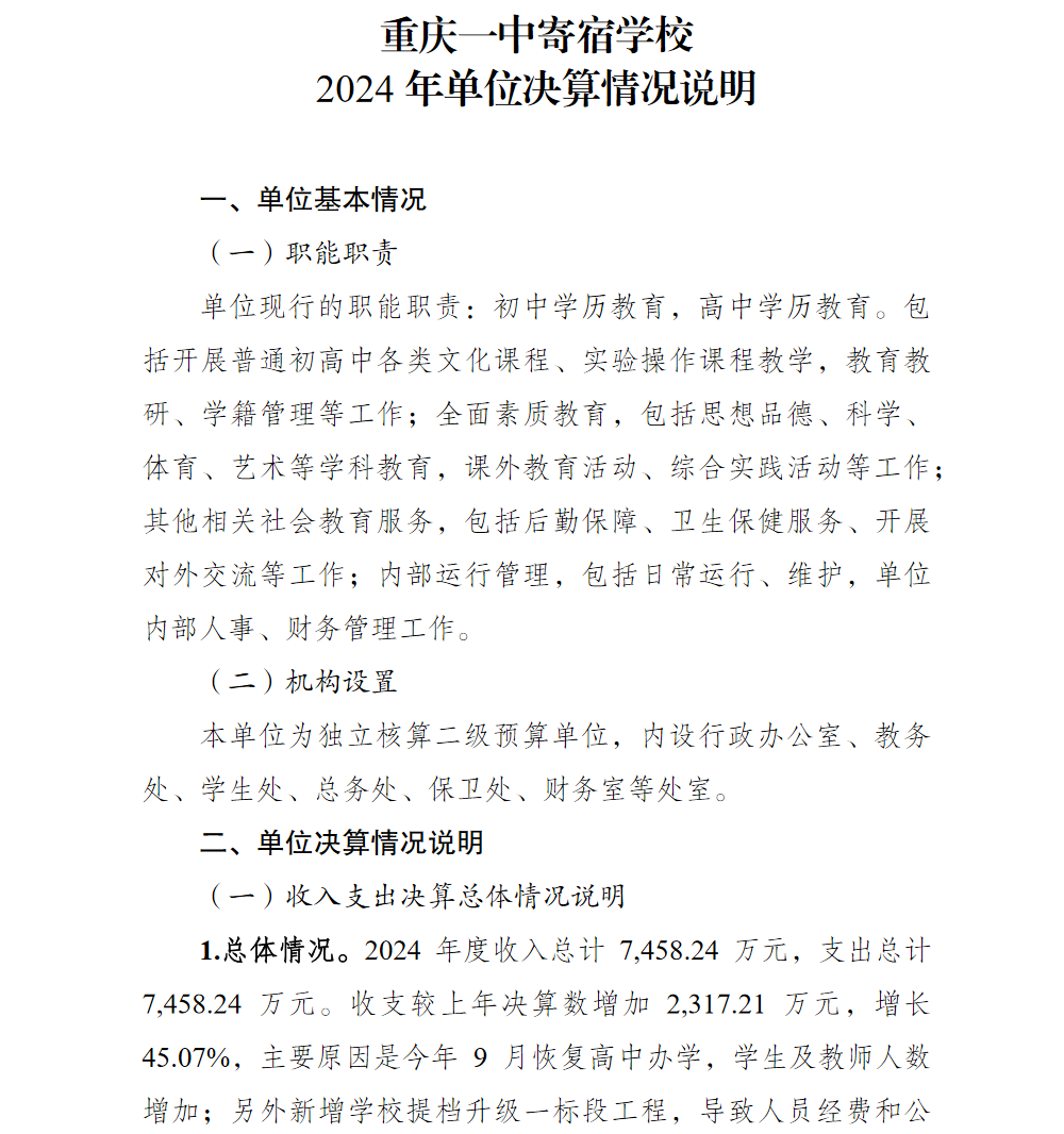 重庆一中寄宿学校2024年单位决算情况说明及附表.pdf