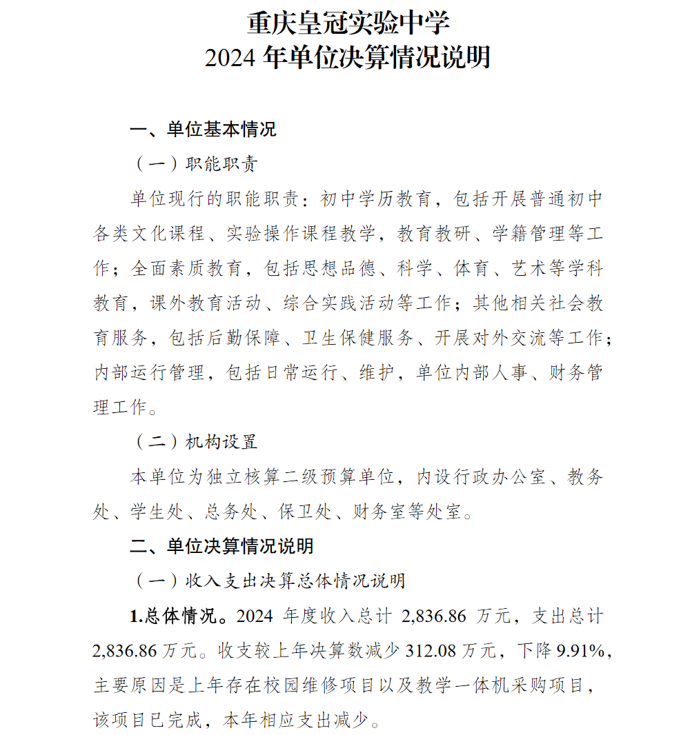 重庆皇冠实验中学2024年单位决算情况说明及附表.pdf