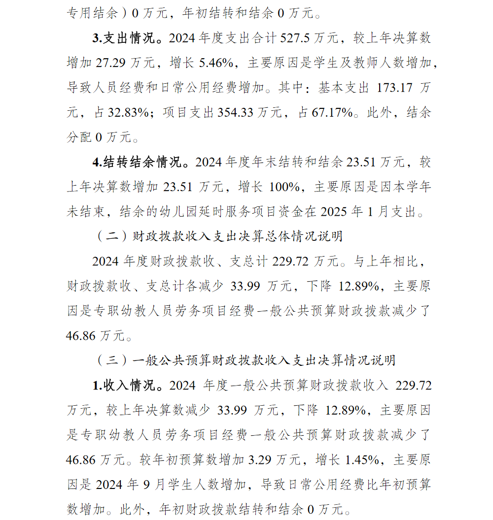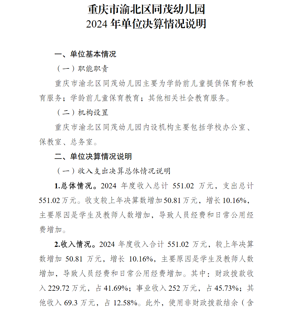 重庆市渝北区同茂幼儿园2024年单位决算情况说明
