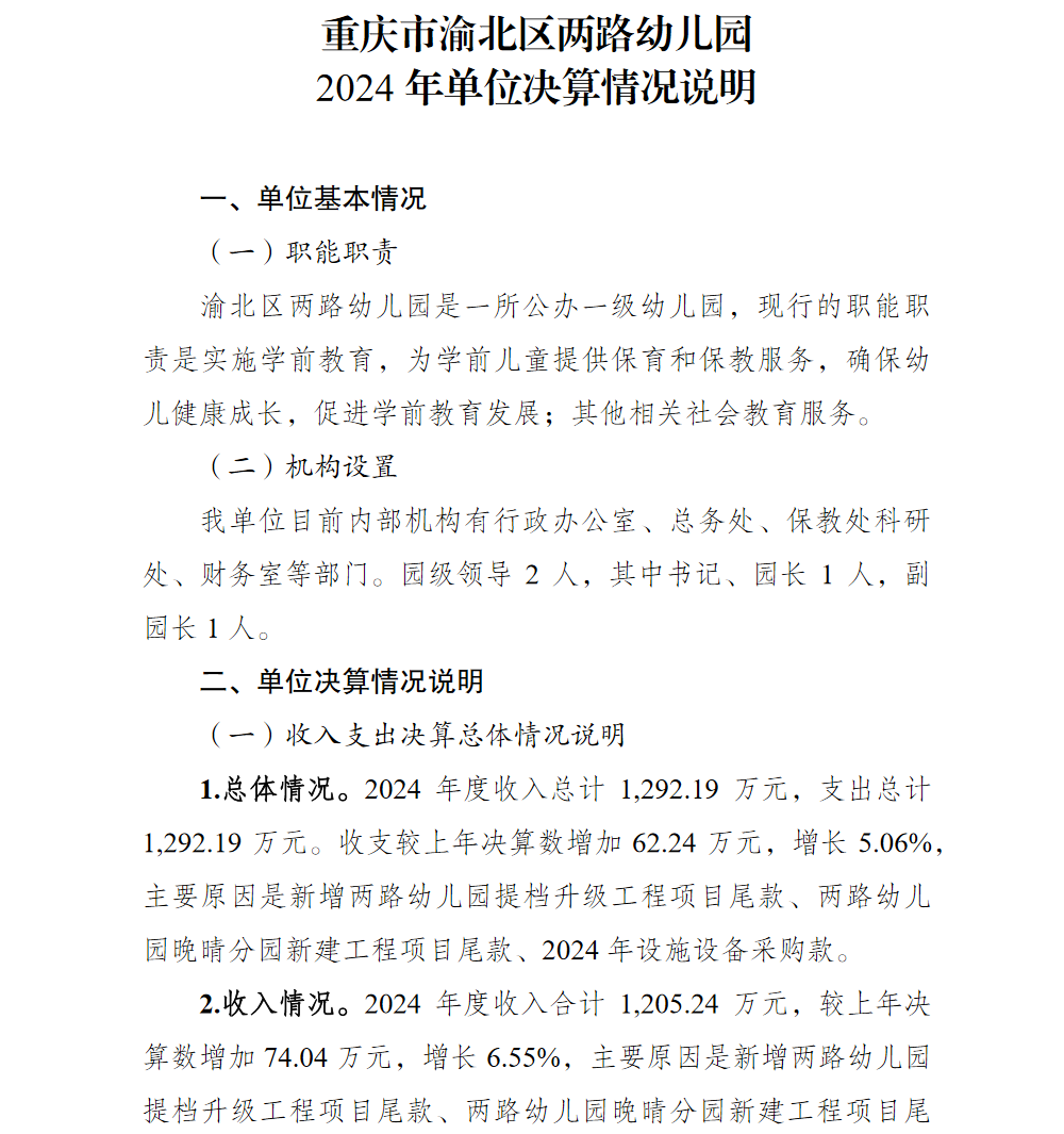 重庆市渝北区两路幼儿园2024年单位决算情况说明及附表.pdf