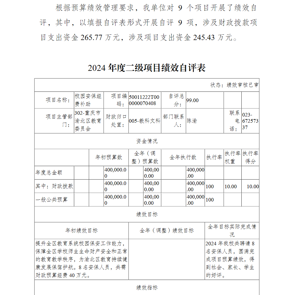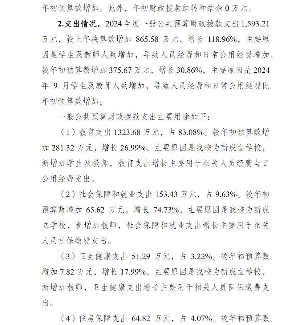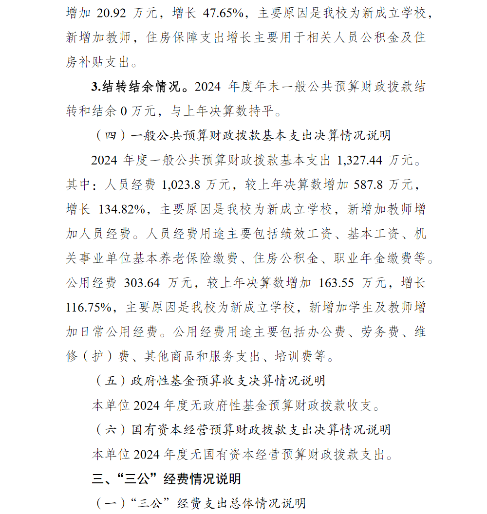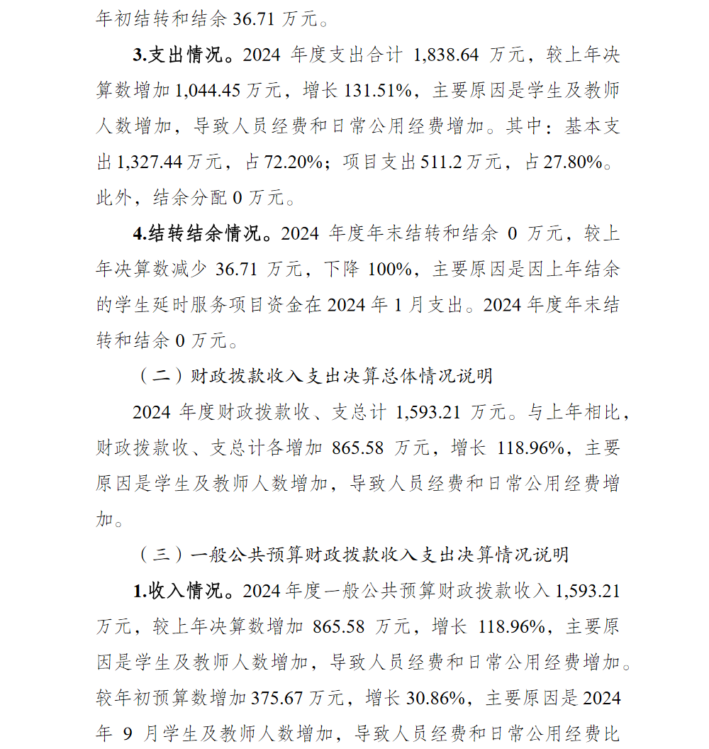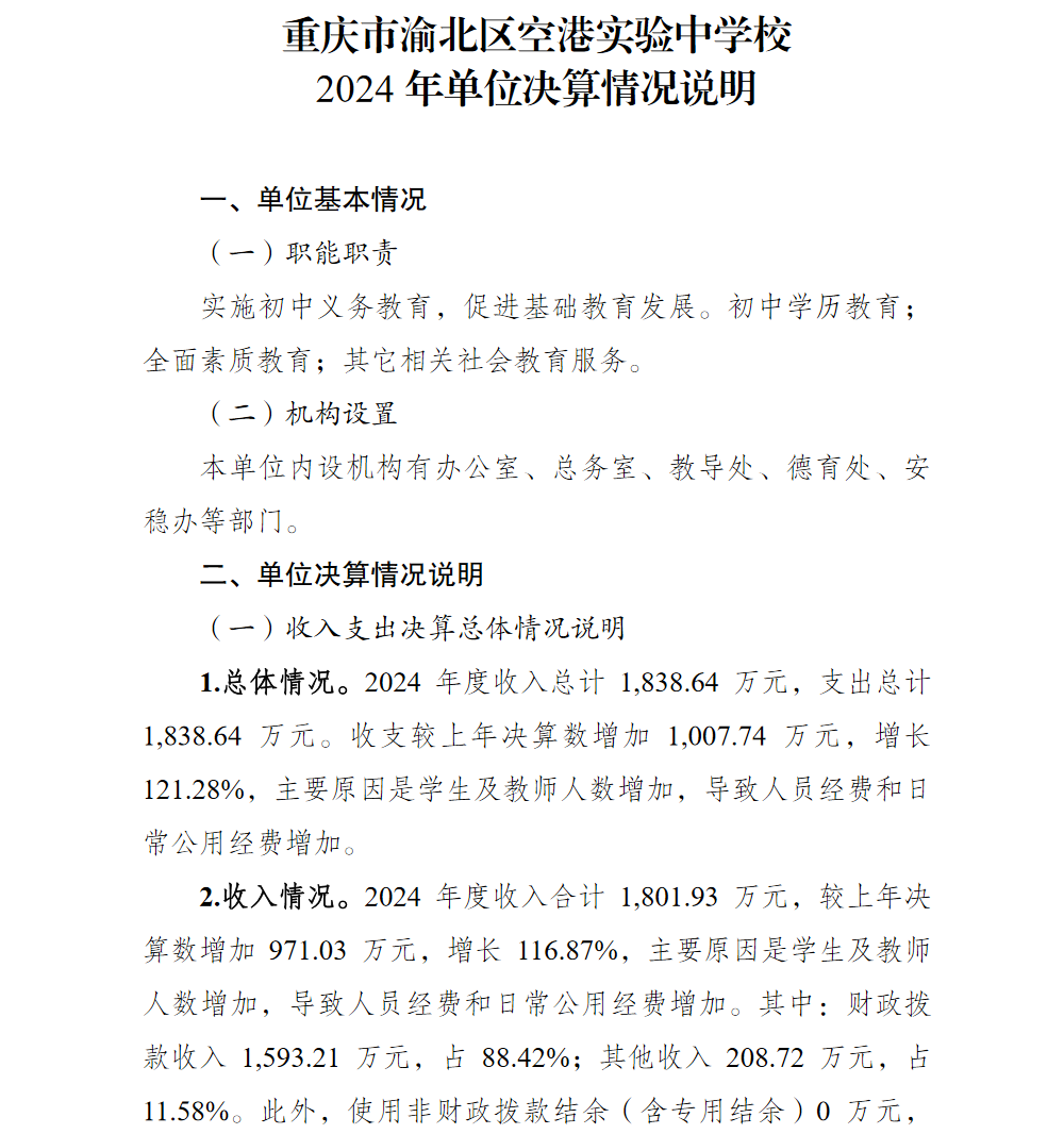 重庆市渝北区空港实验中学校2024年单位决算情况说明