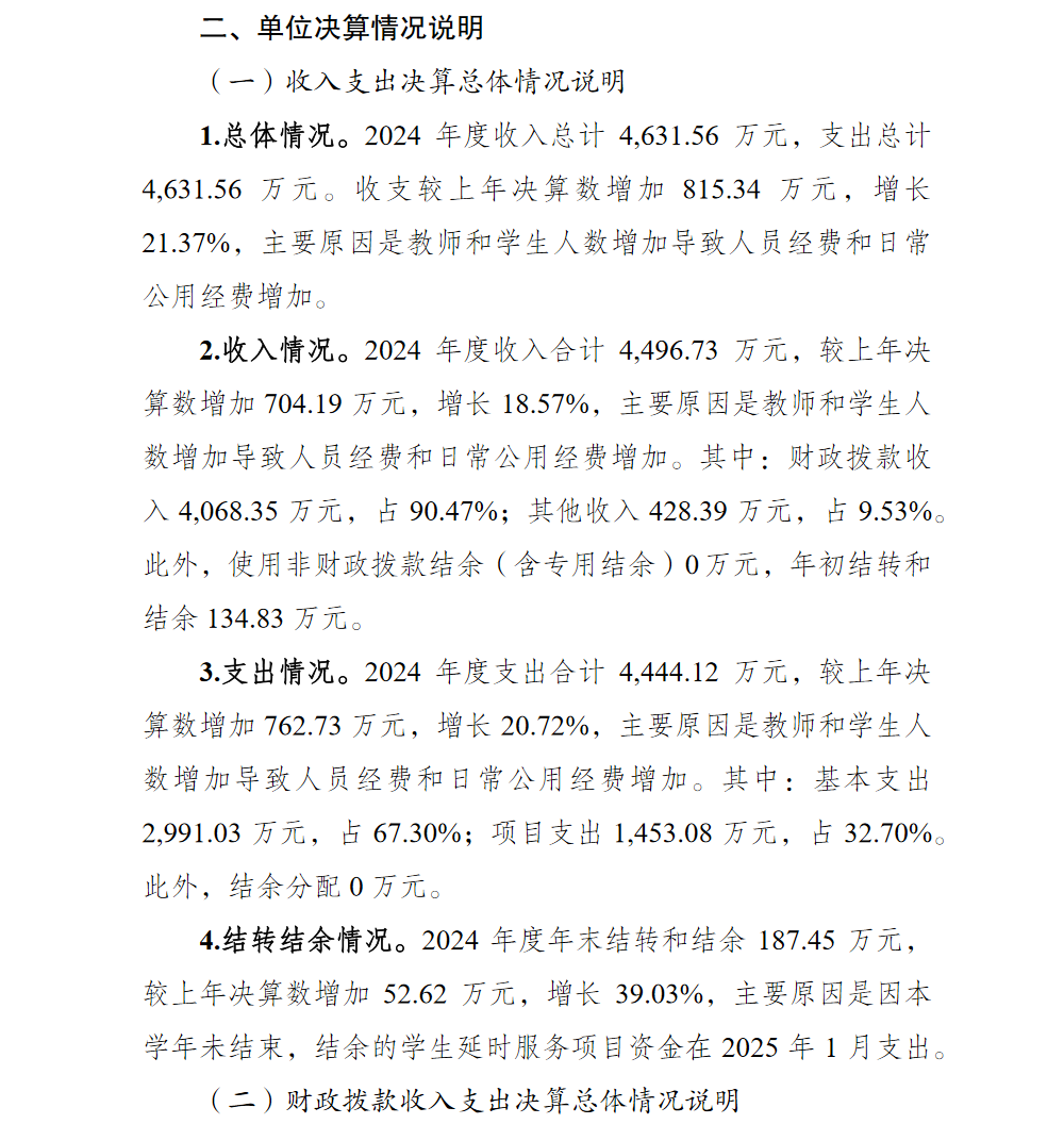 重庆市渝北区数据谷中学校2024年单位决算情况说明