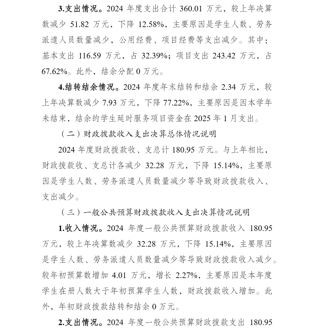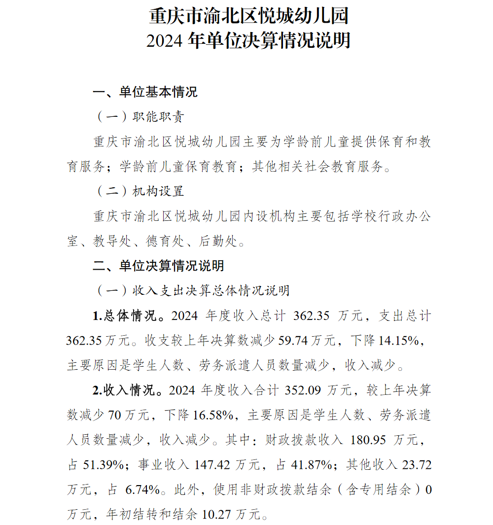 重庆市渝北区悦城幼儿园2024年单位决算情况说明