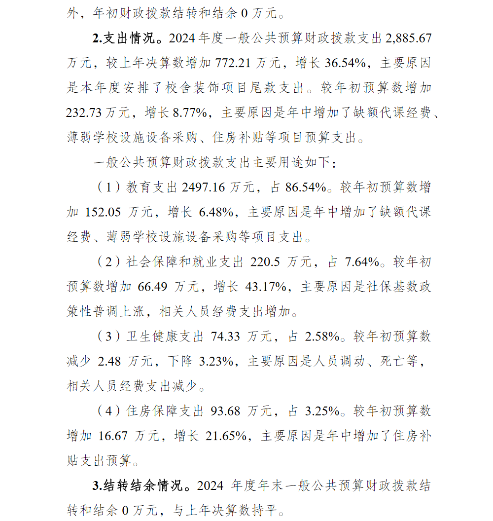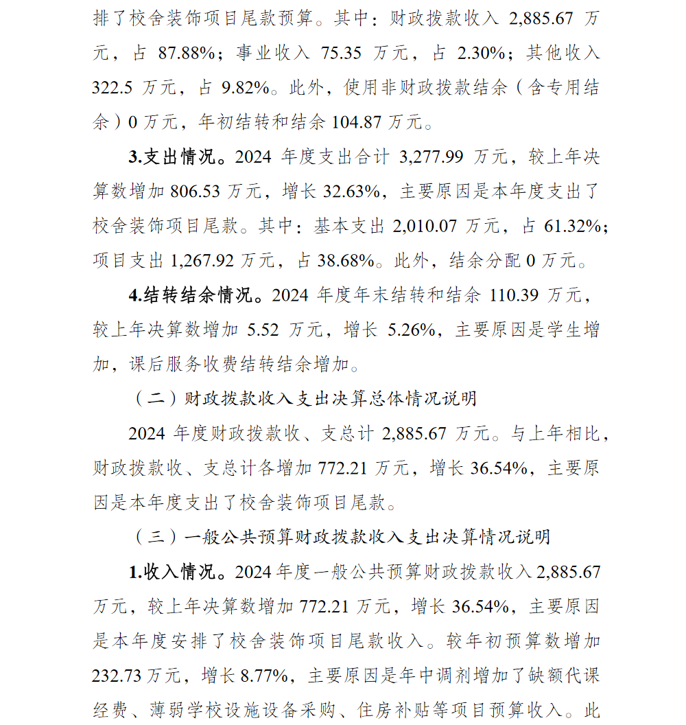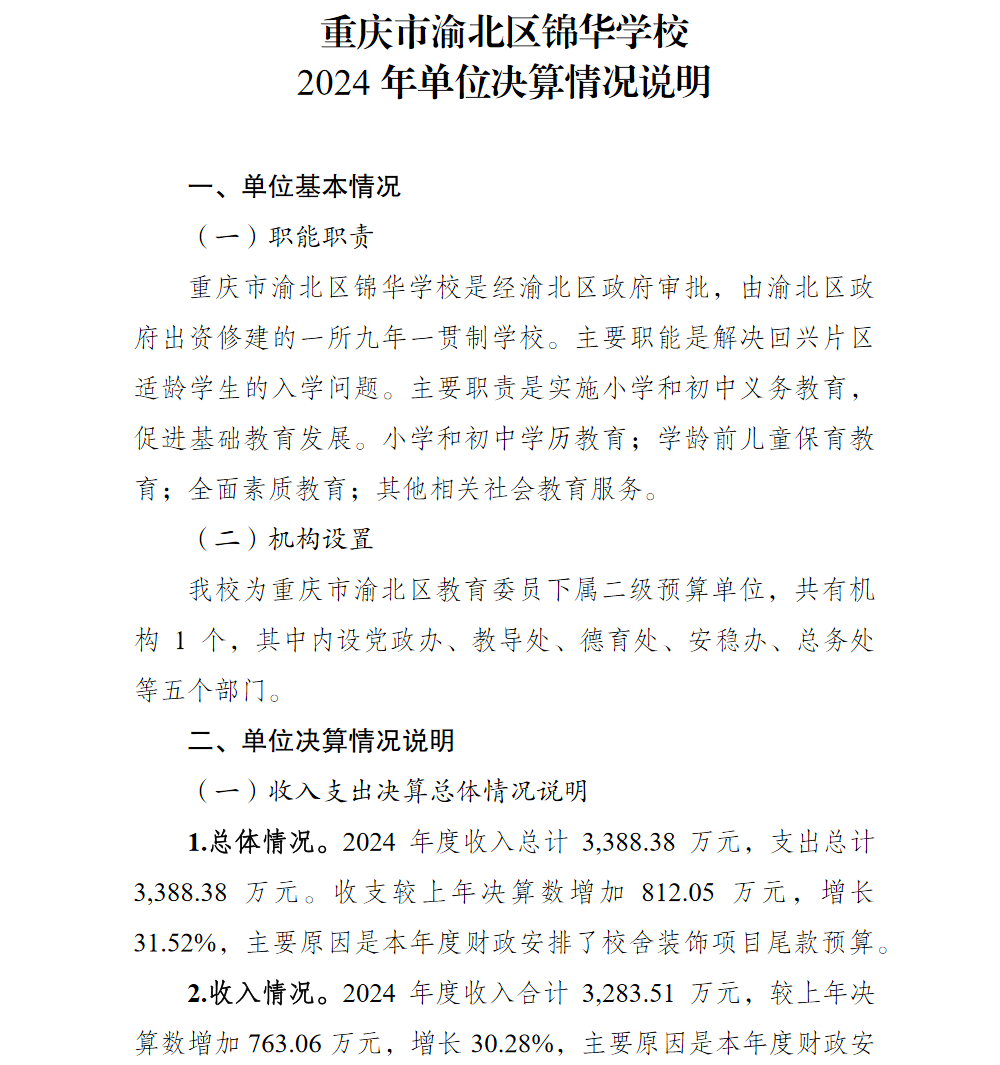 重庆市渝北区锦华学校2024年单位决算情况说明