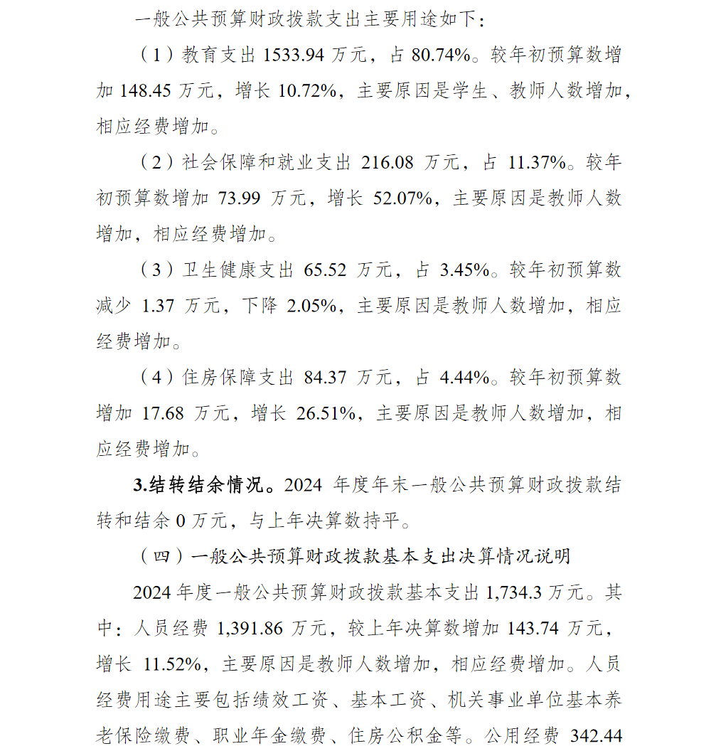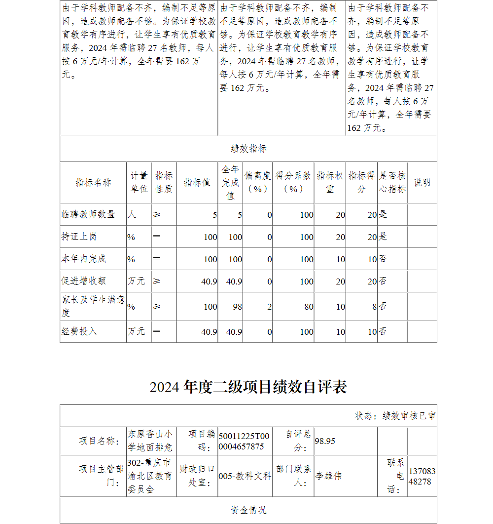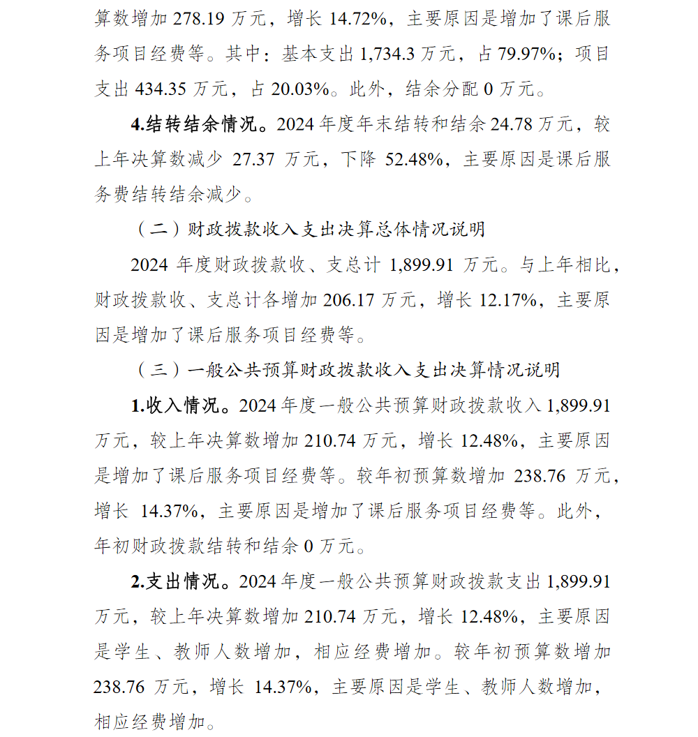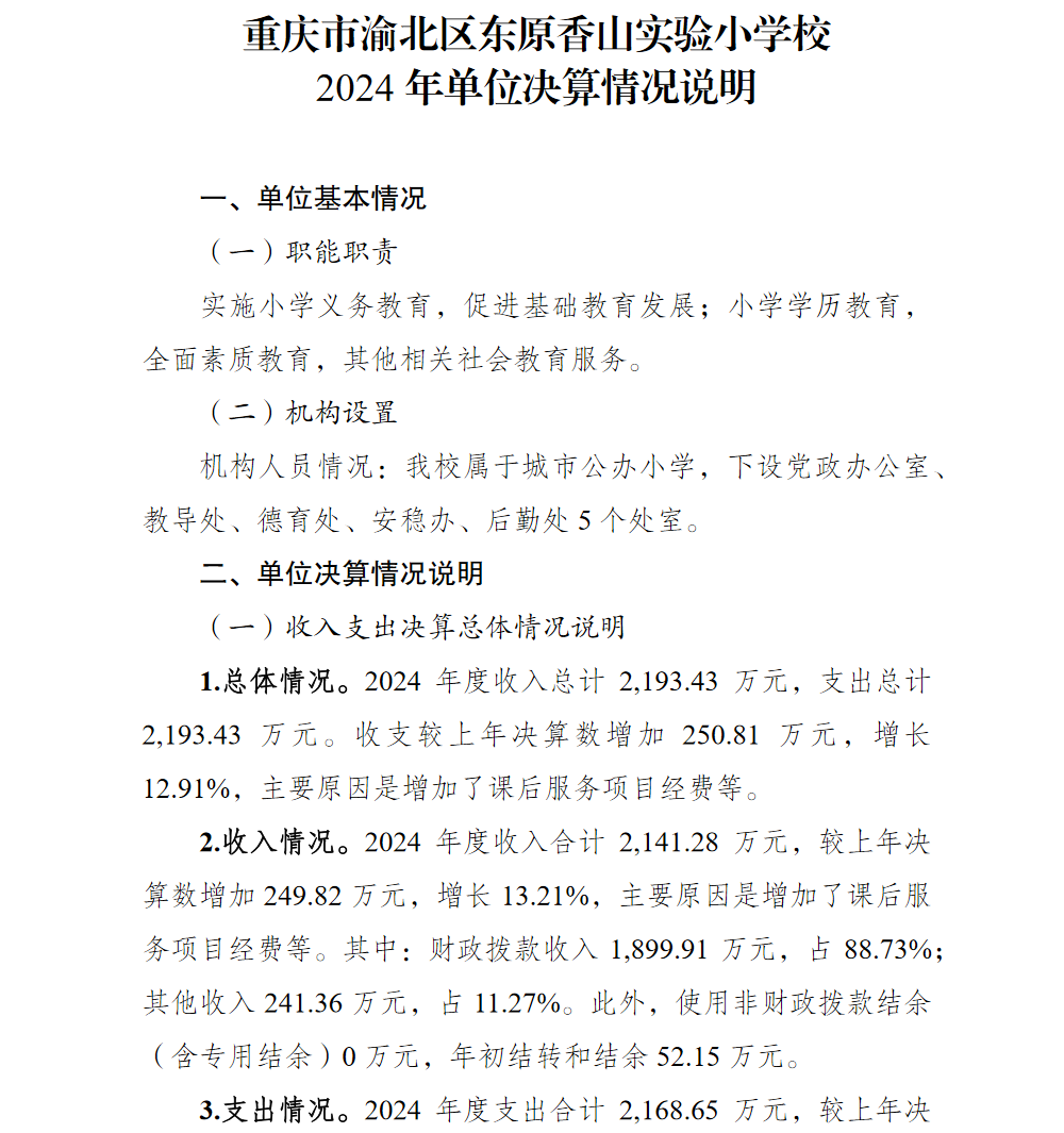 重庆市渝北区东原香山实验小学校2024年单位决算情况说明