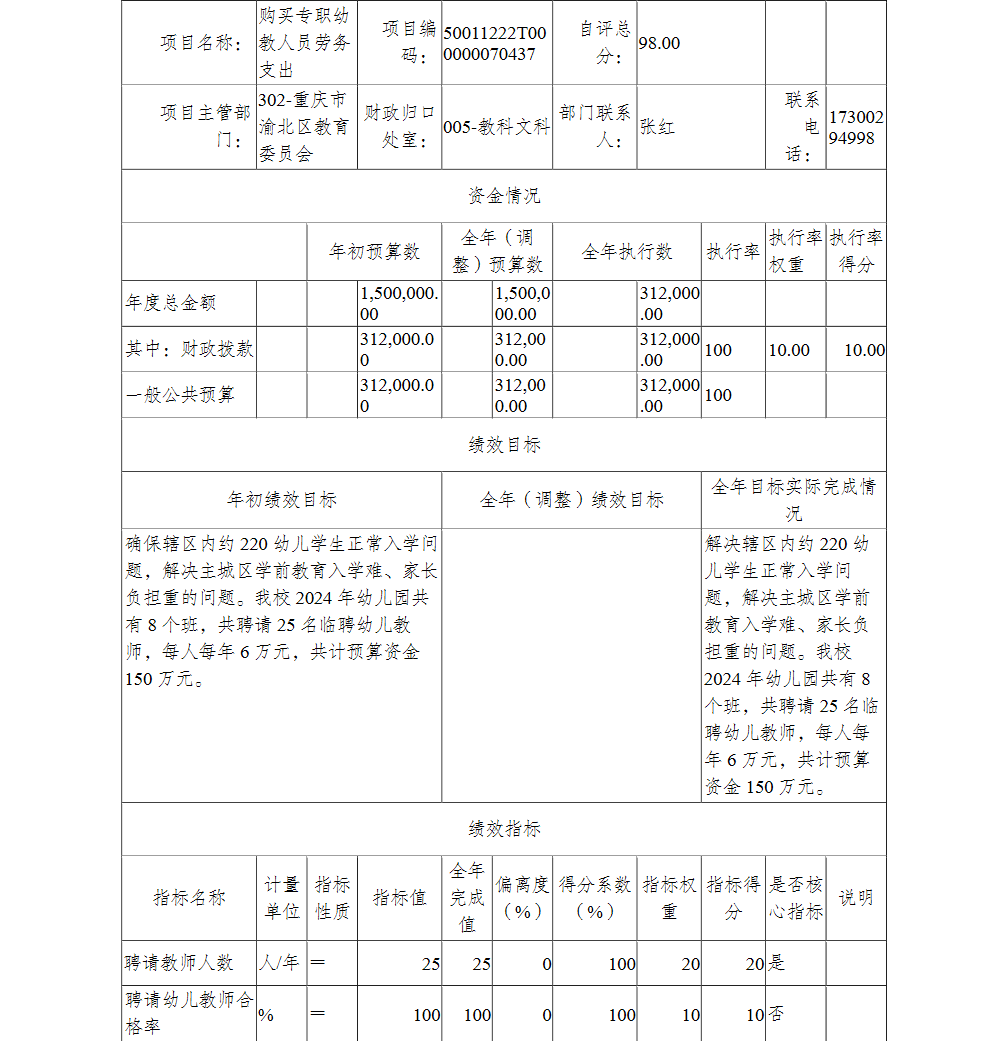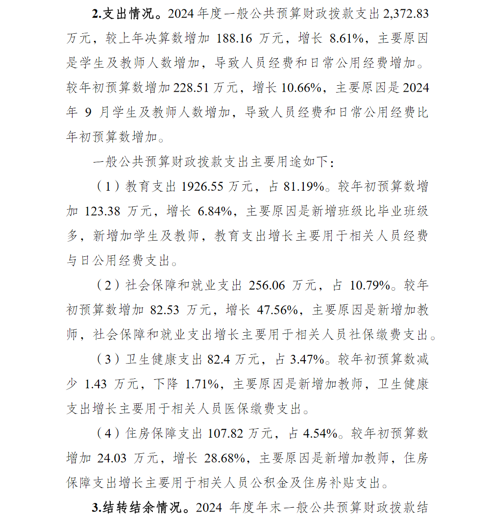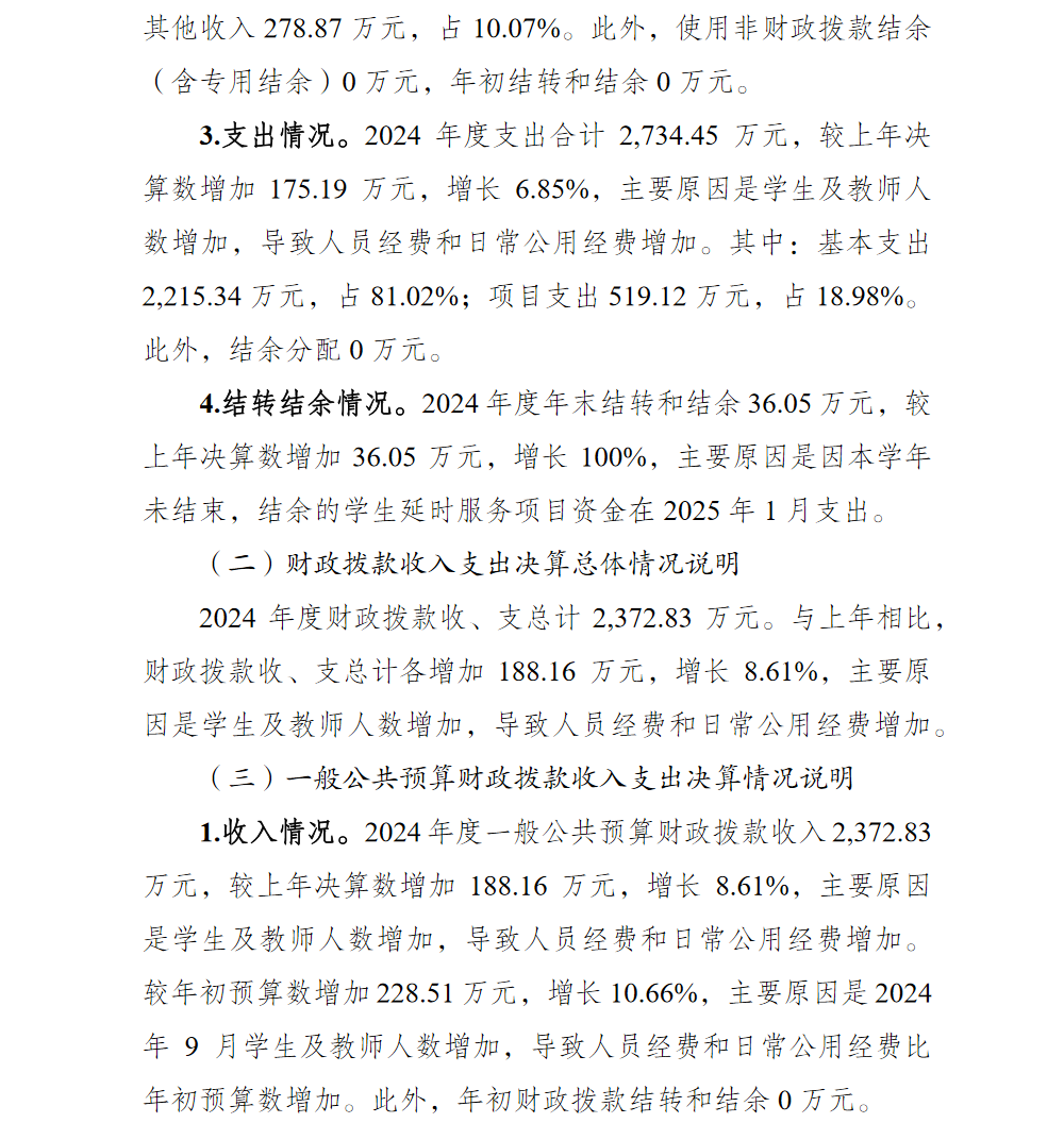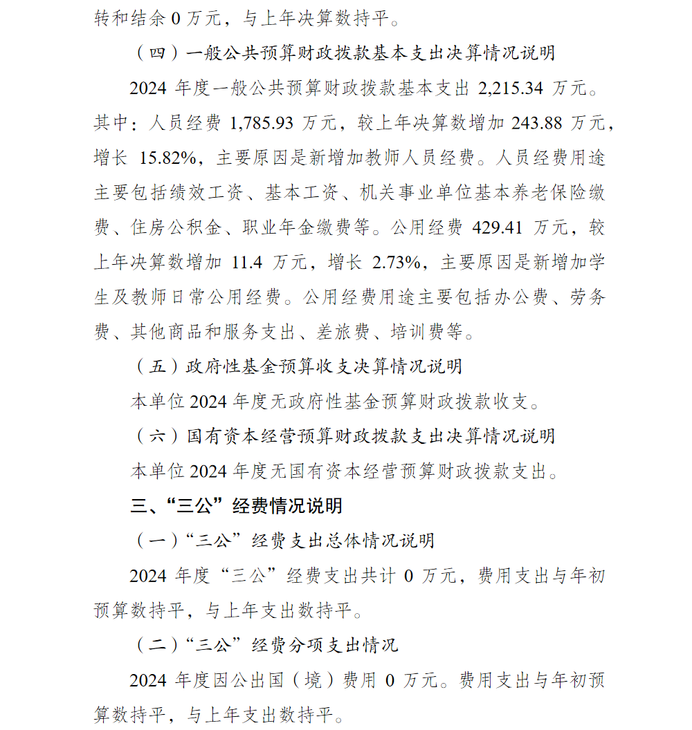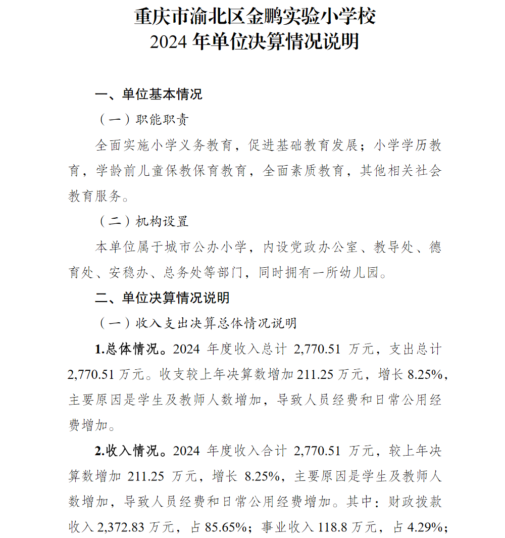 重庆市渝北区金鹏实验小学校2024年单位决算情况说明