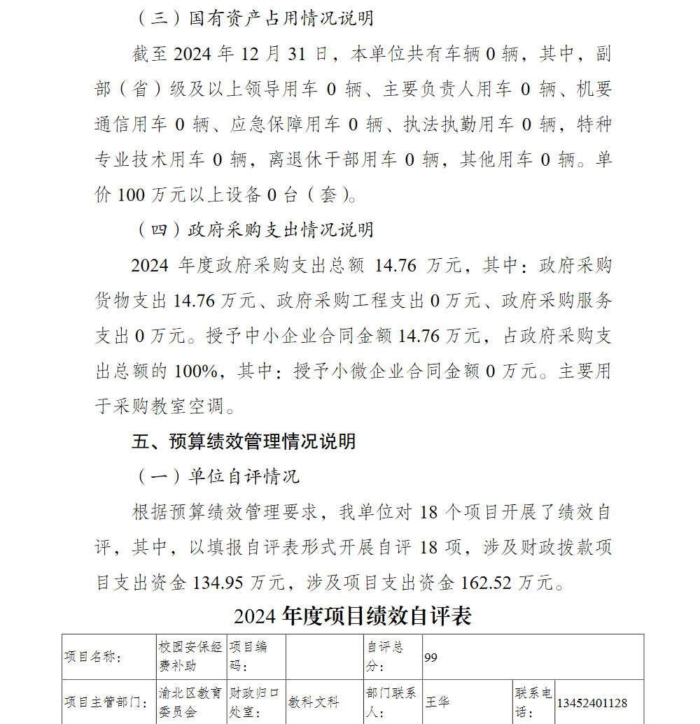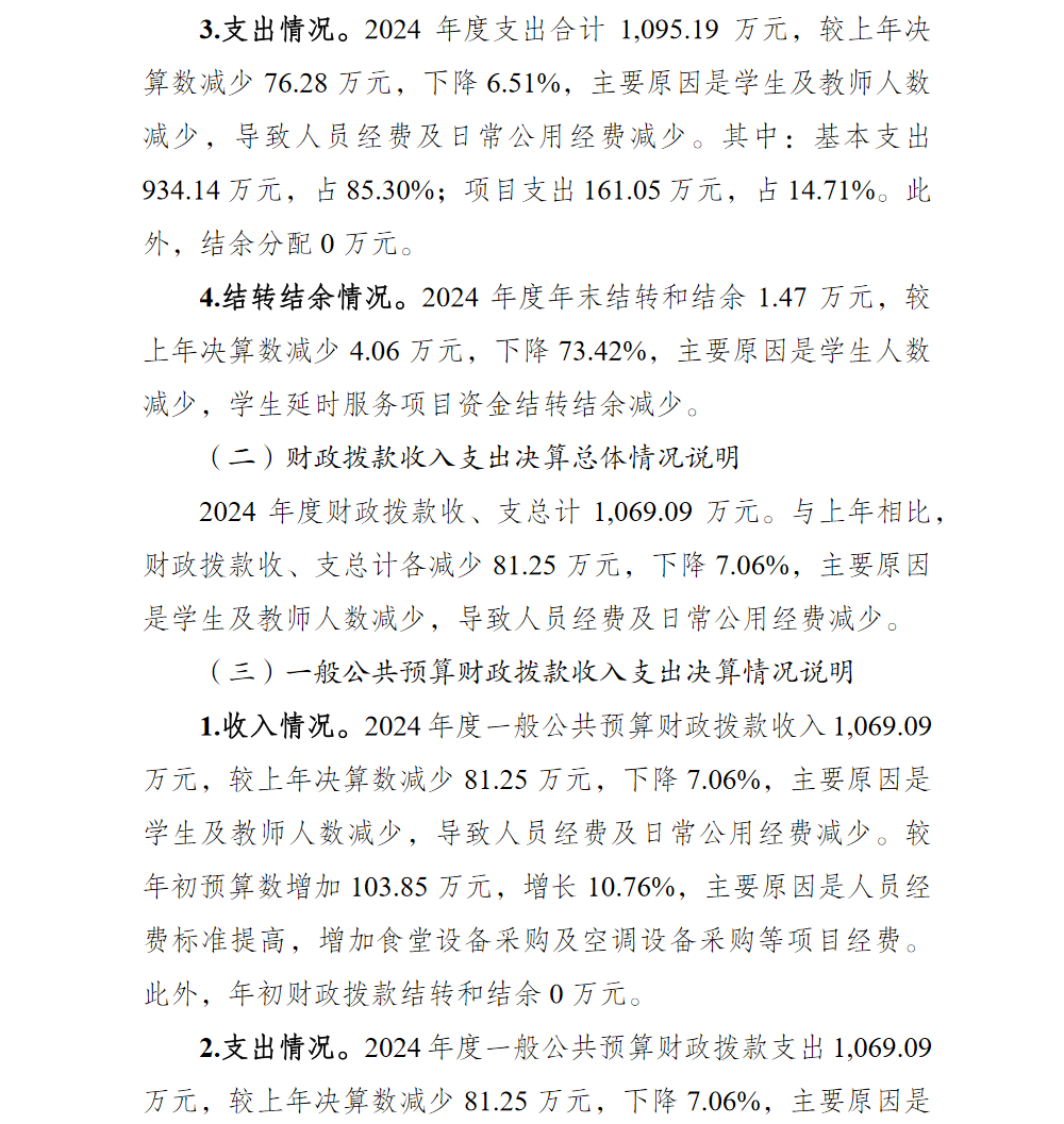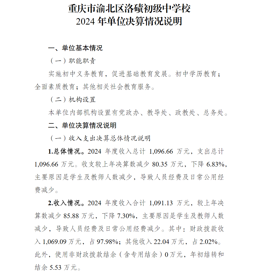 重庆市渝北区洛碛初级中学校2024年单位决算情况说明