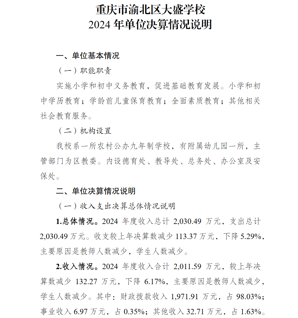 重庆市渝北区大盛学校2024年单位决算情况说明及附表.pdf