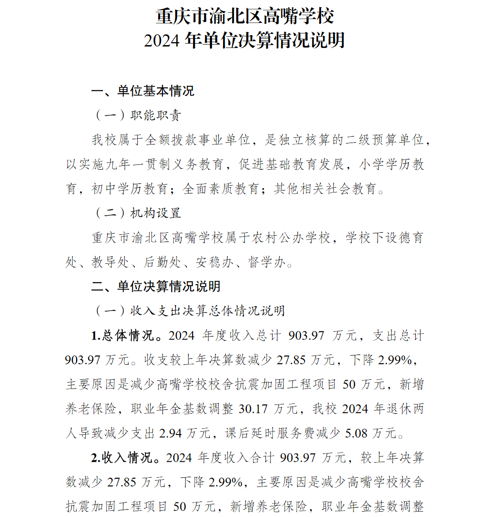 重庆市渝北区高嘴学校2024年单位决算情况说明及附表.pdf