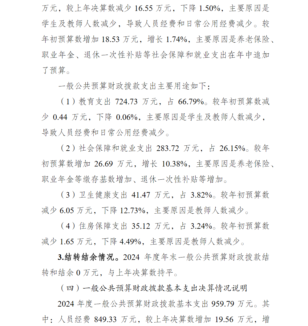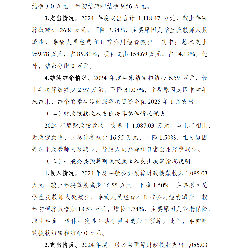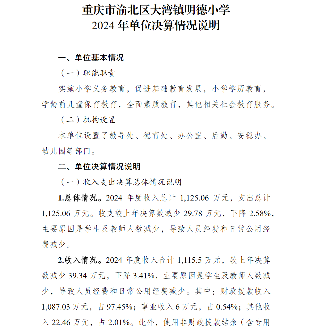 重庆市渝北区大湾镇明德小学2024年单位决算情况说明