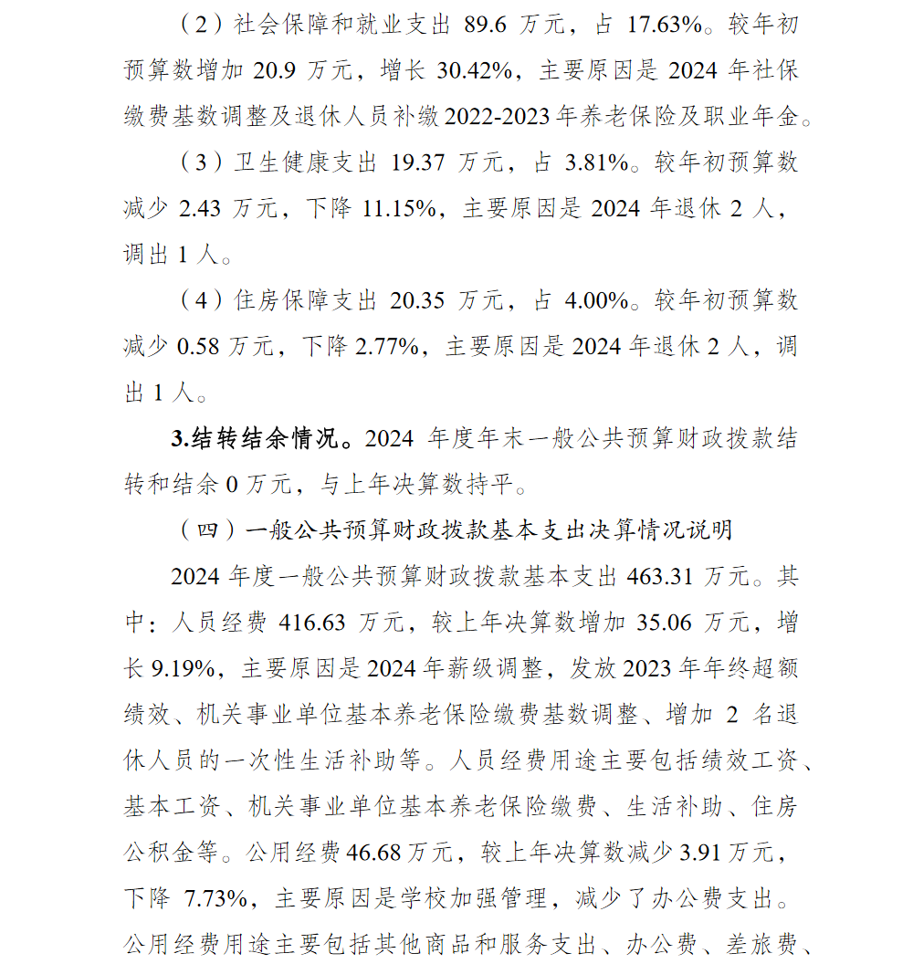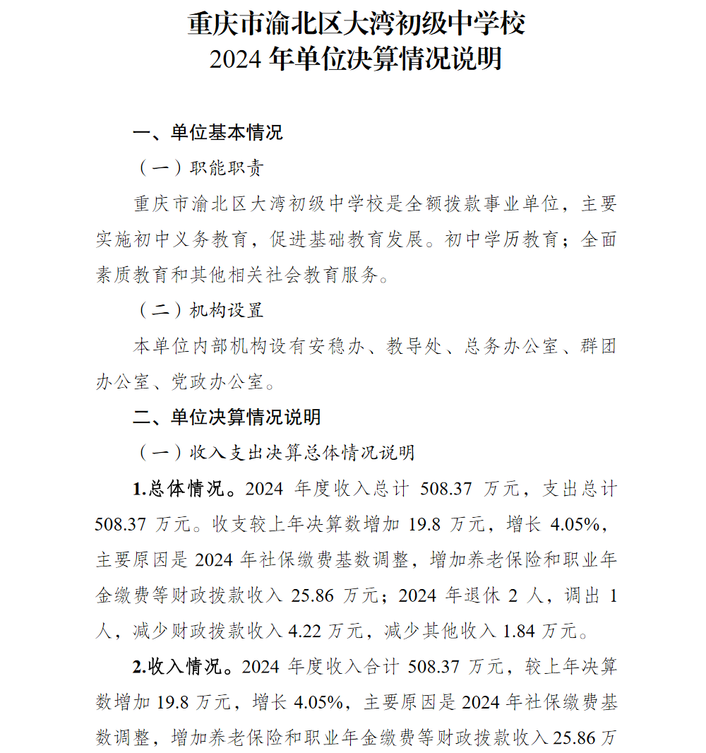 重庆市渝北区大湾初级中学校2024年单位决算情况说明