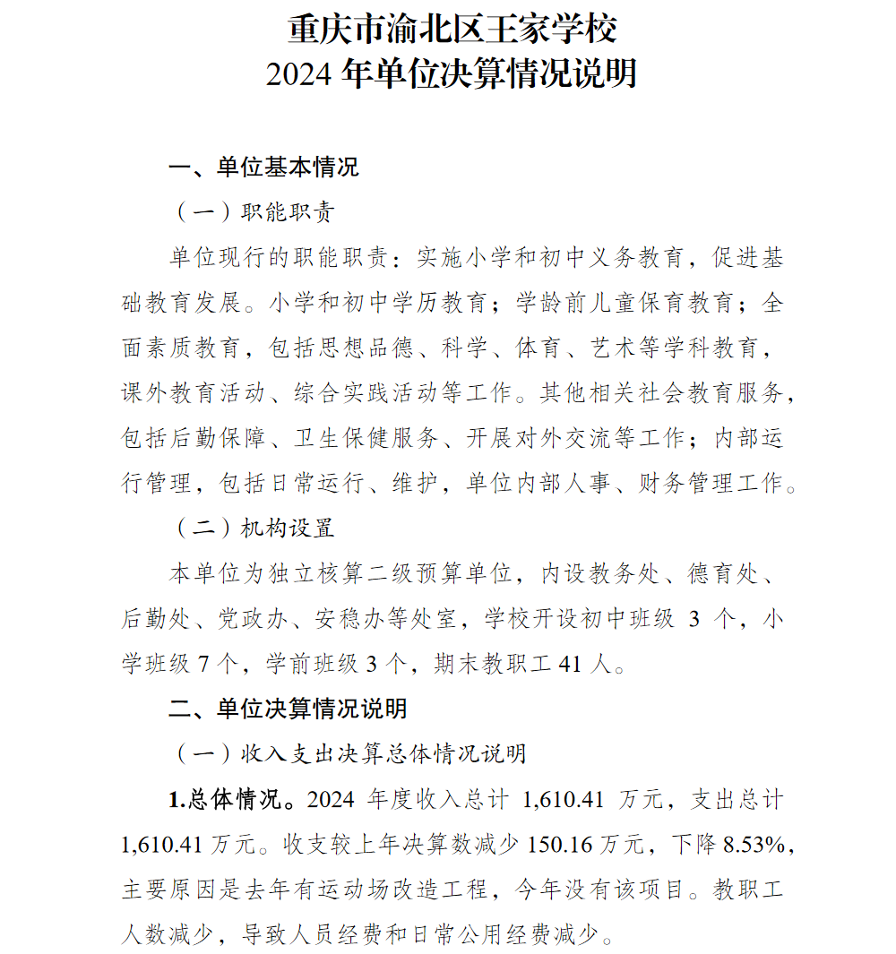重庆市渝北区王家学校2024年单位决算情况说明及附表.pdf