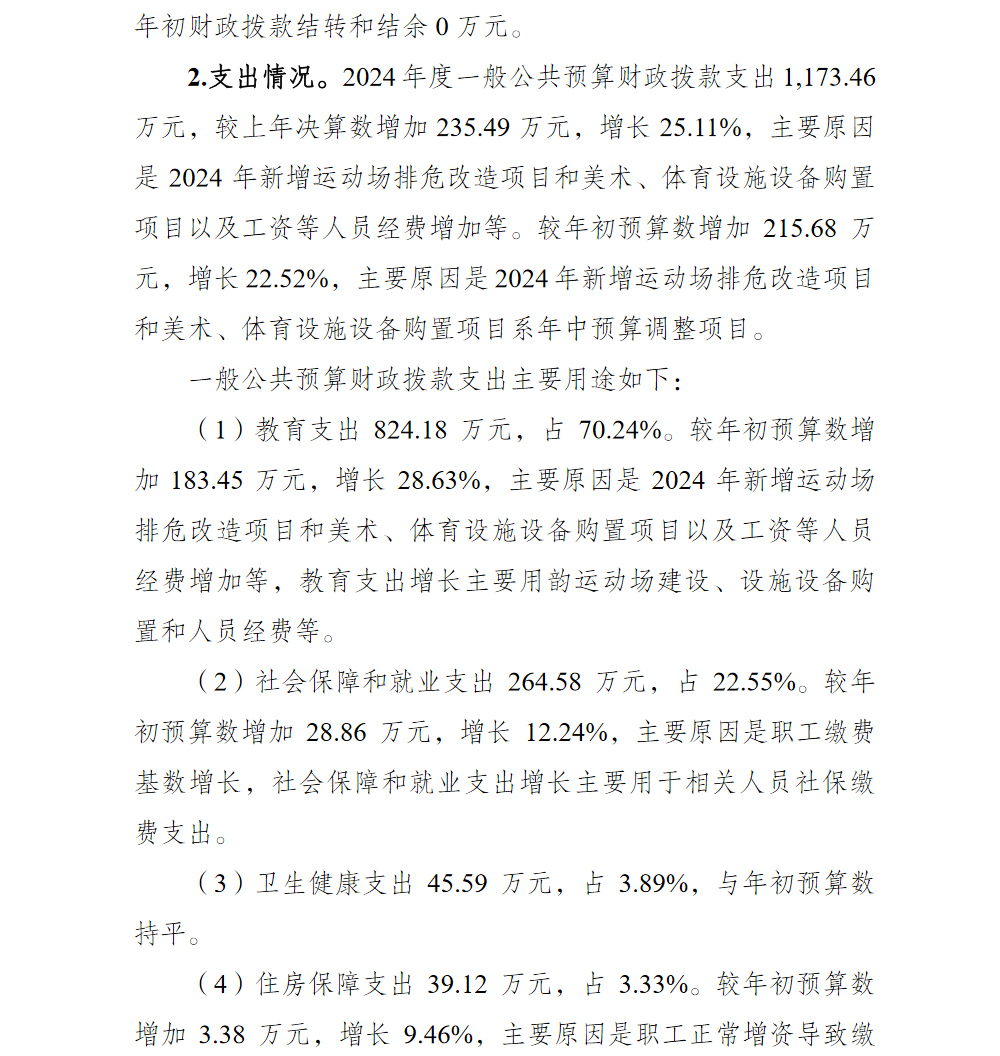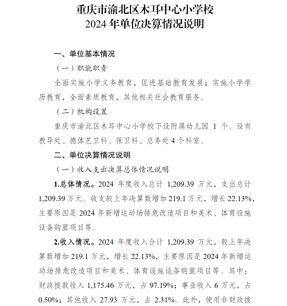 重庆市渝北区木耳中心小学校2024年单位决算情况说明