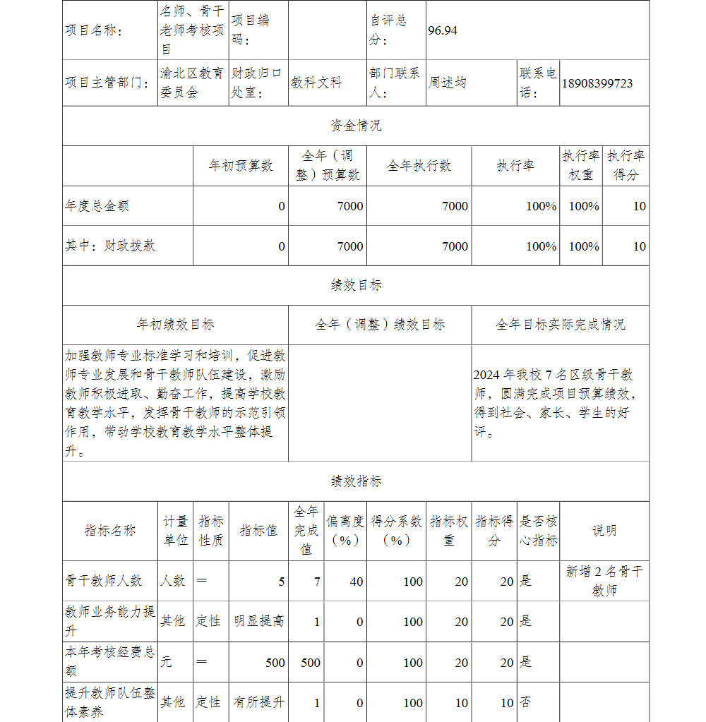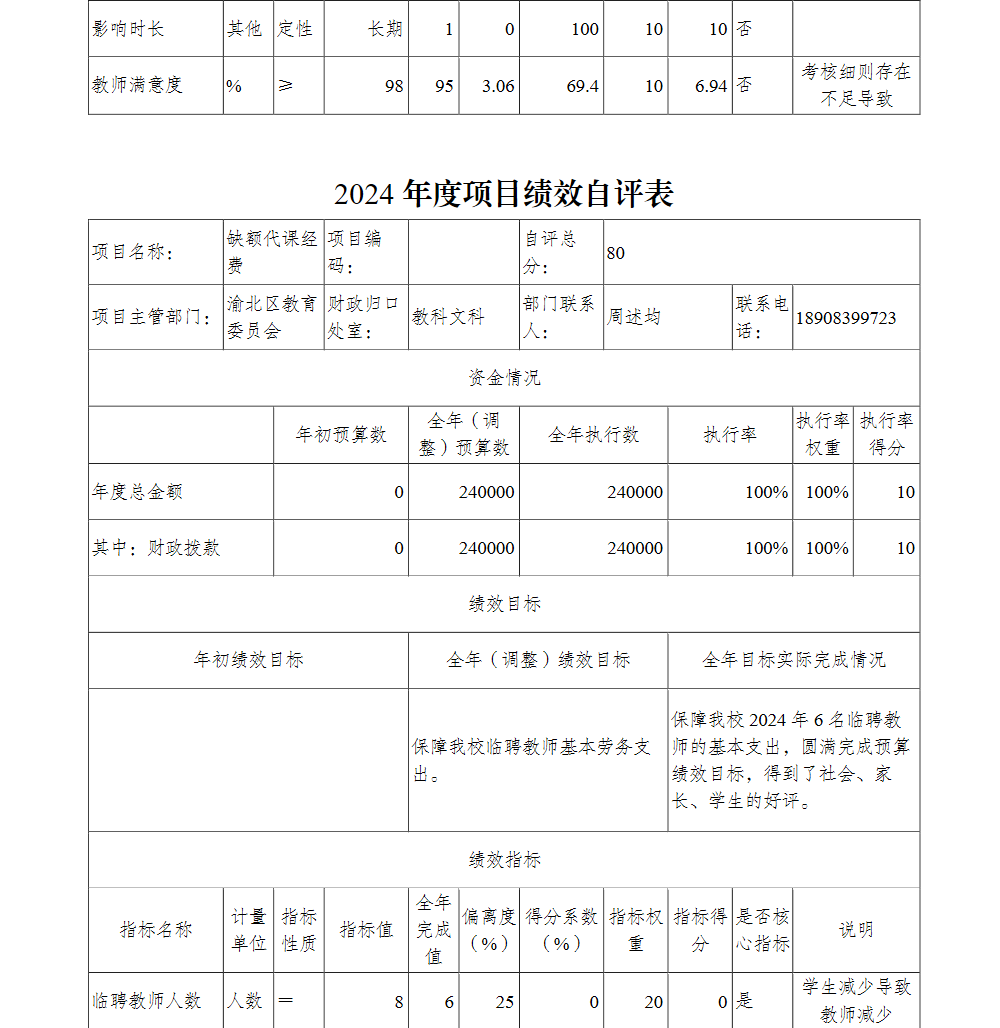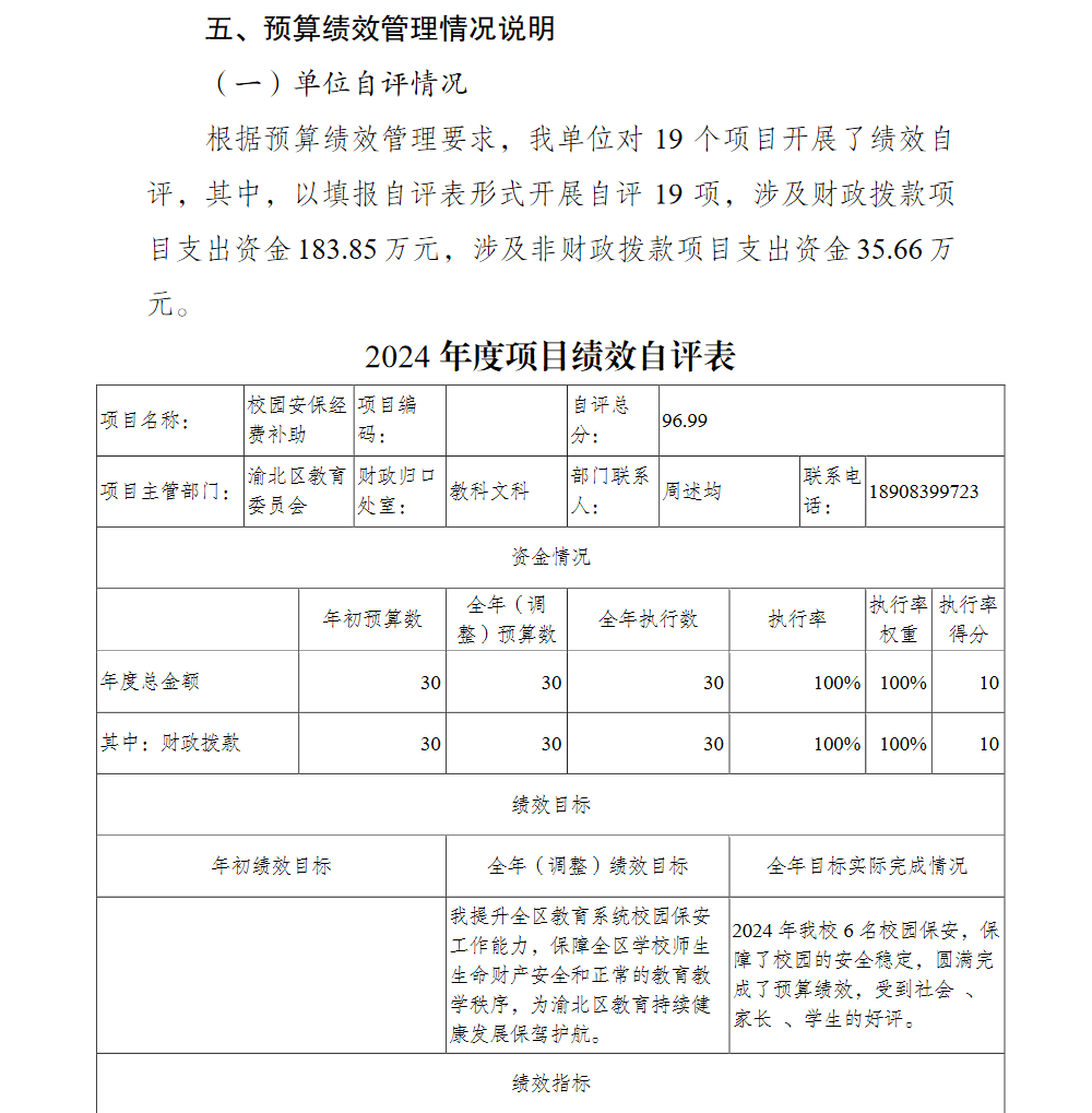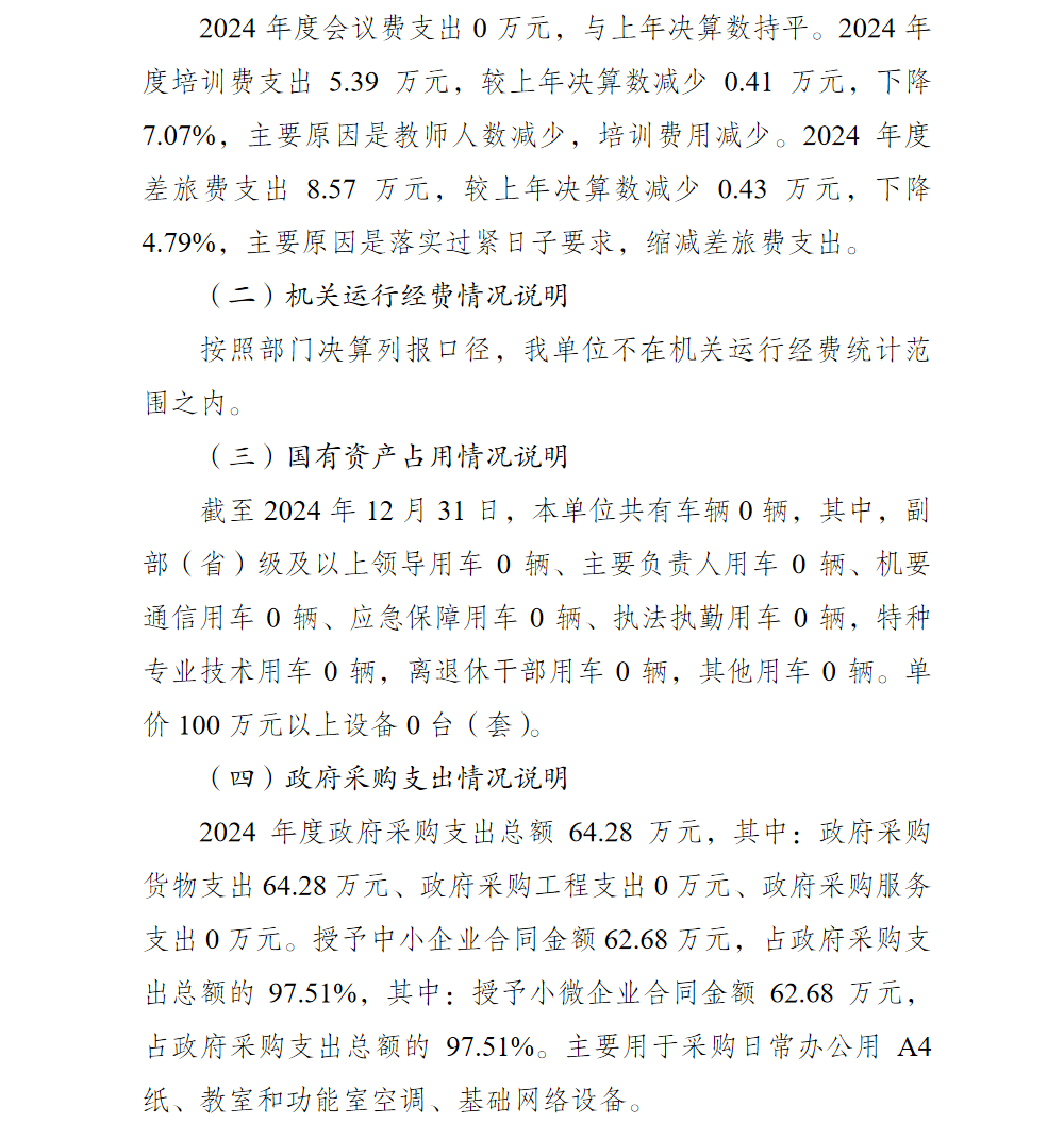 重庆市渝北区玉峰山初级中学校2024年单位决算情况说明