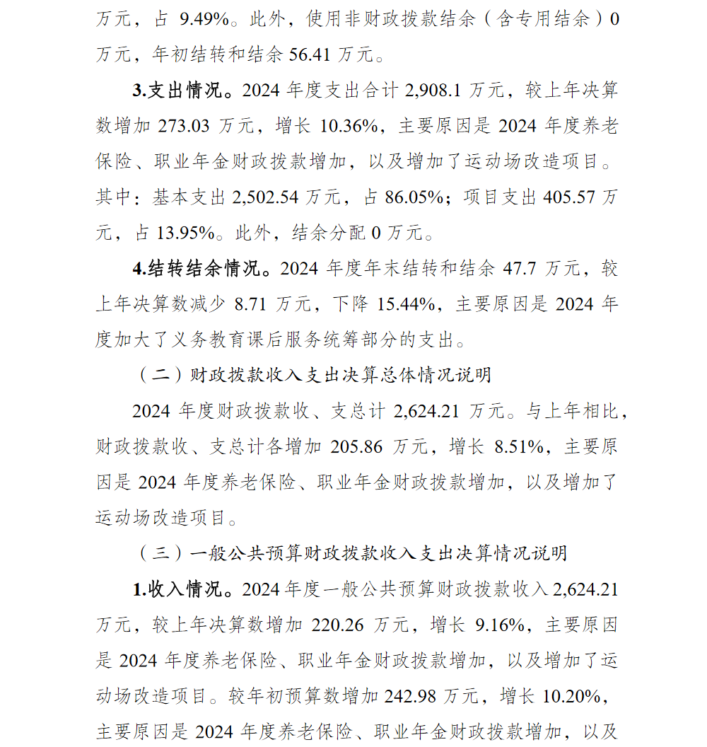重庆市渝北区新牌坊小学校2024年单位决算情况说明