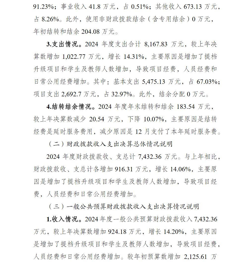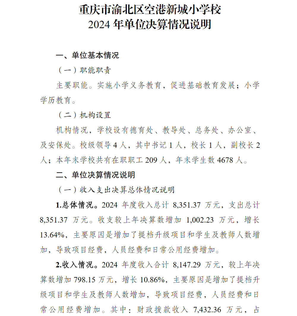 重庆市渝北区空港新城小学校2024年单位决算情况说明