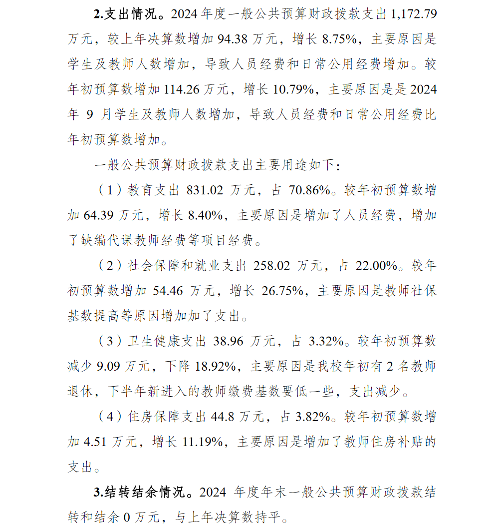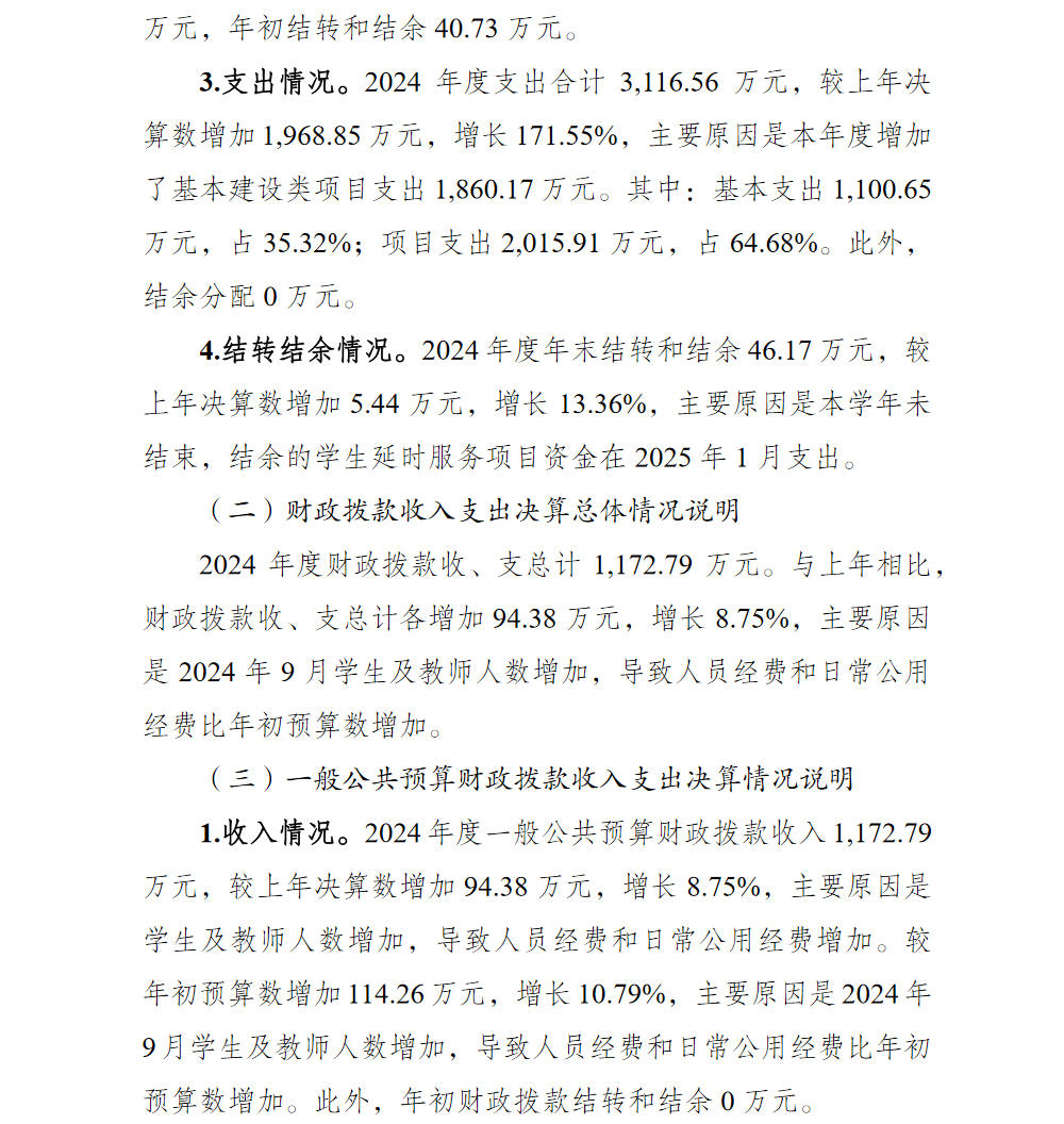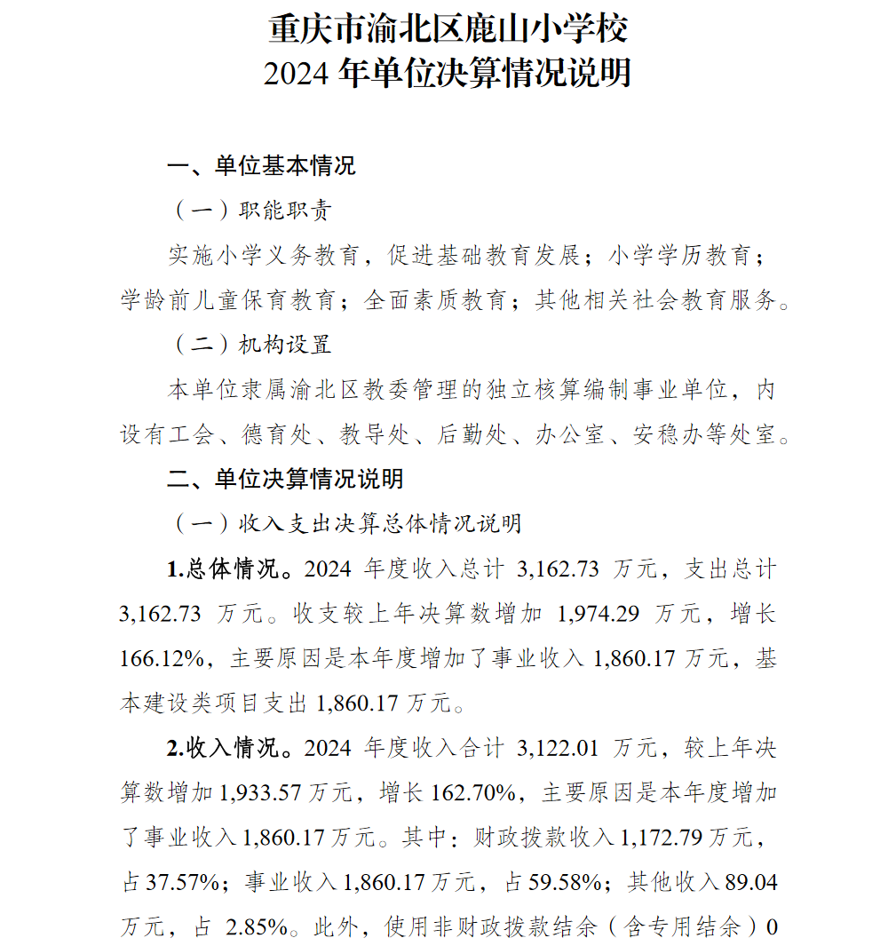 重庆市渝北区鹿山小学校2024年单位决算情况说明