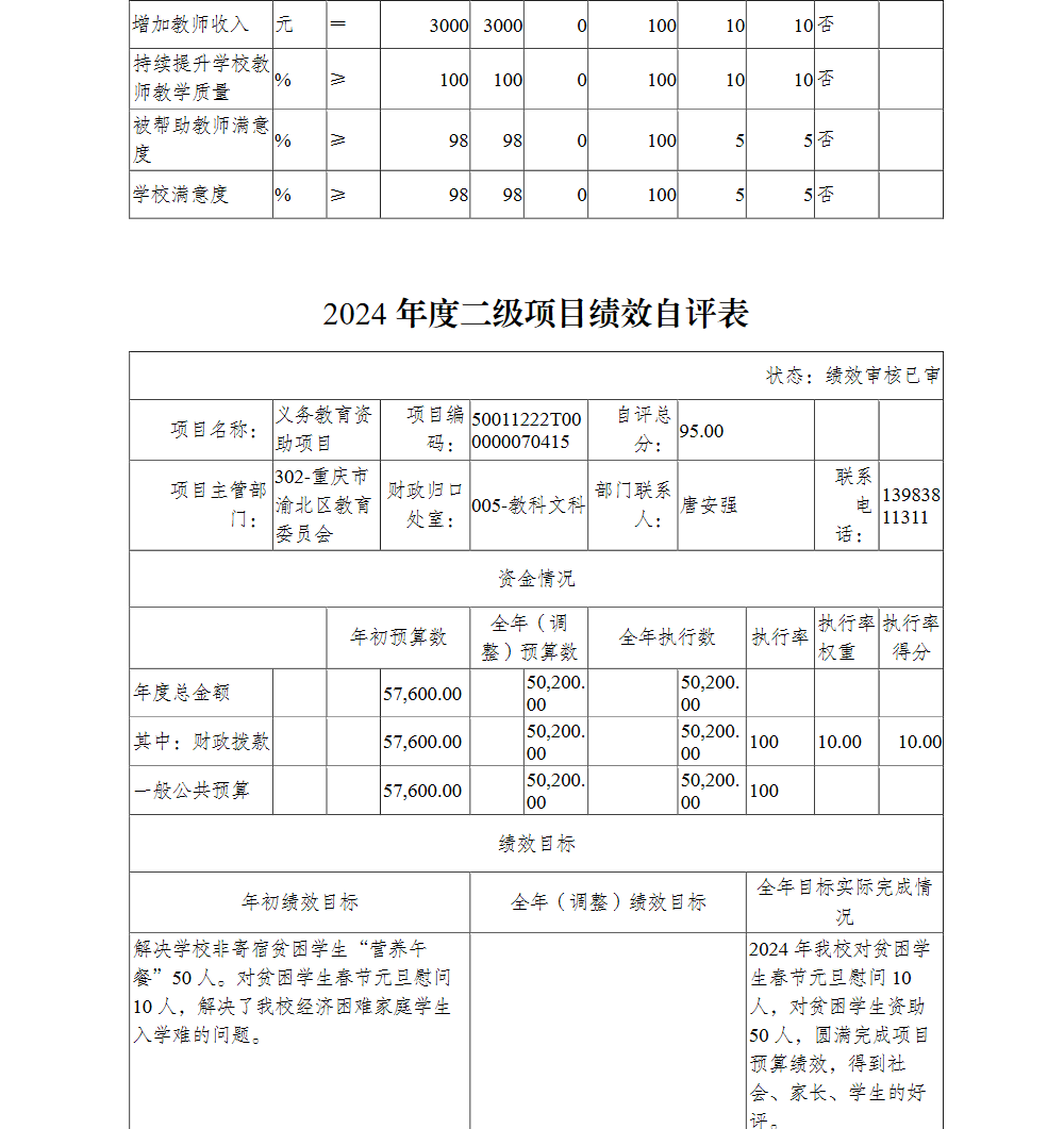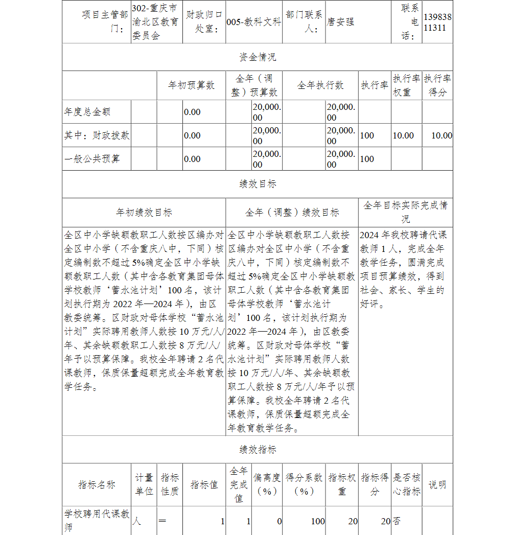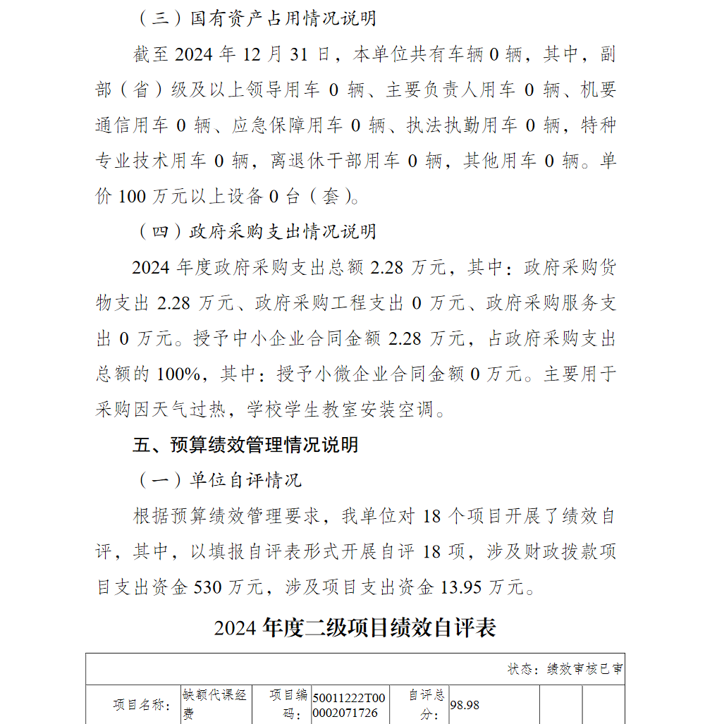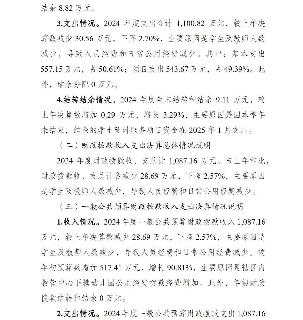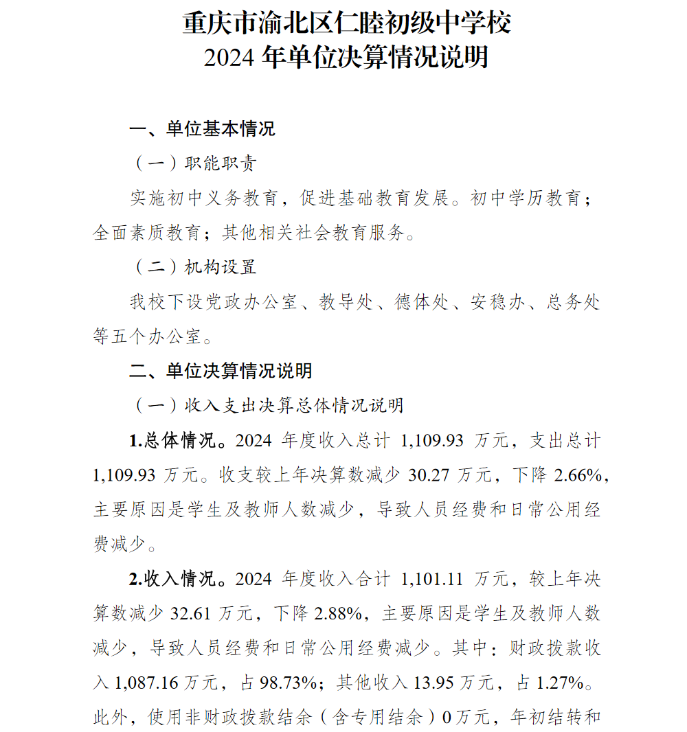 重庆市渝北区仁睦初级中学校2024年单位决算情况说明