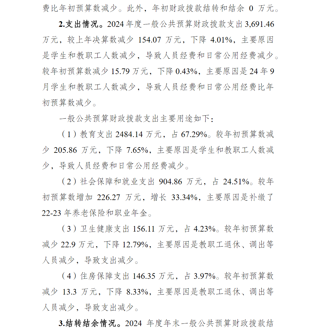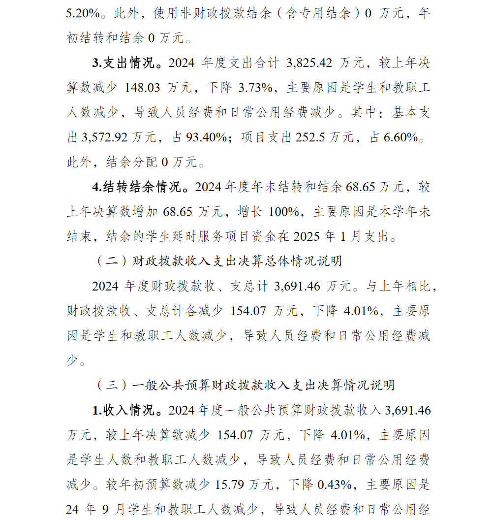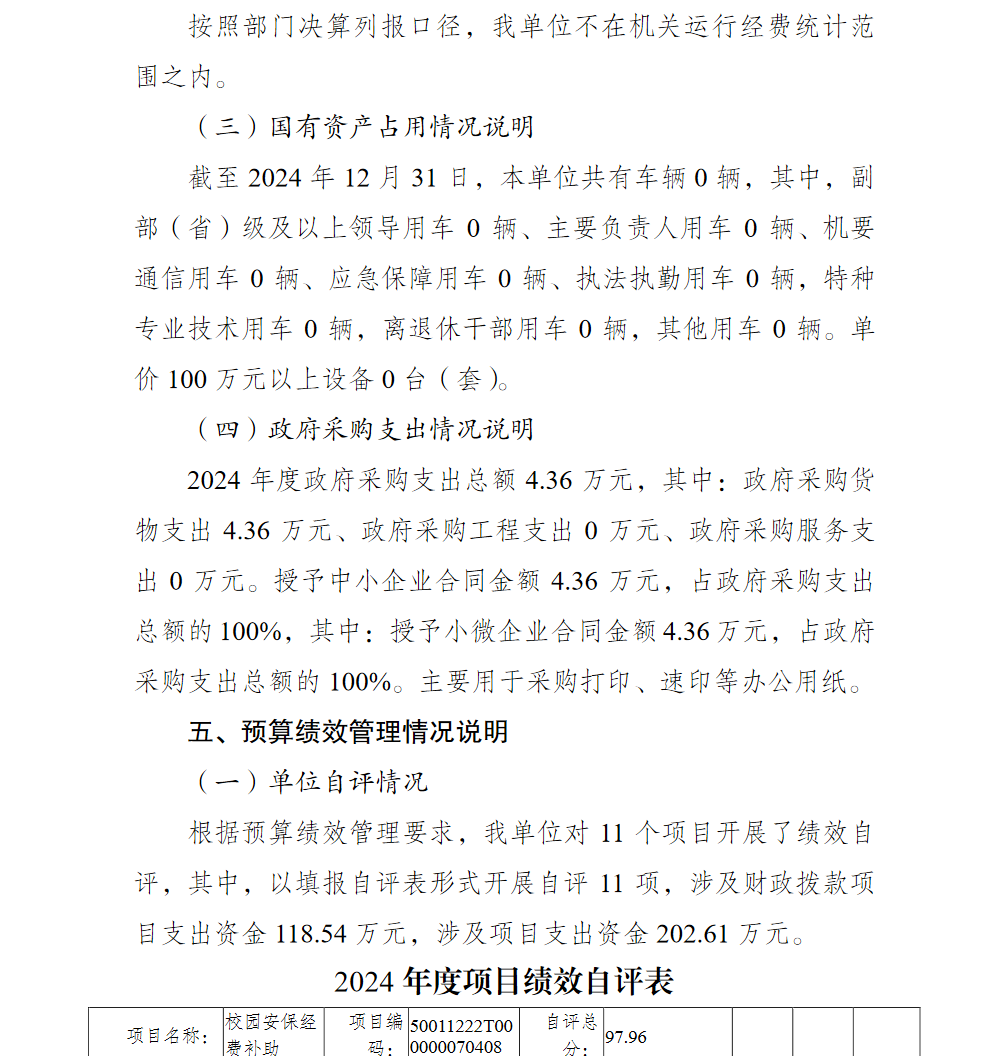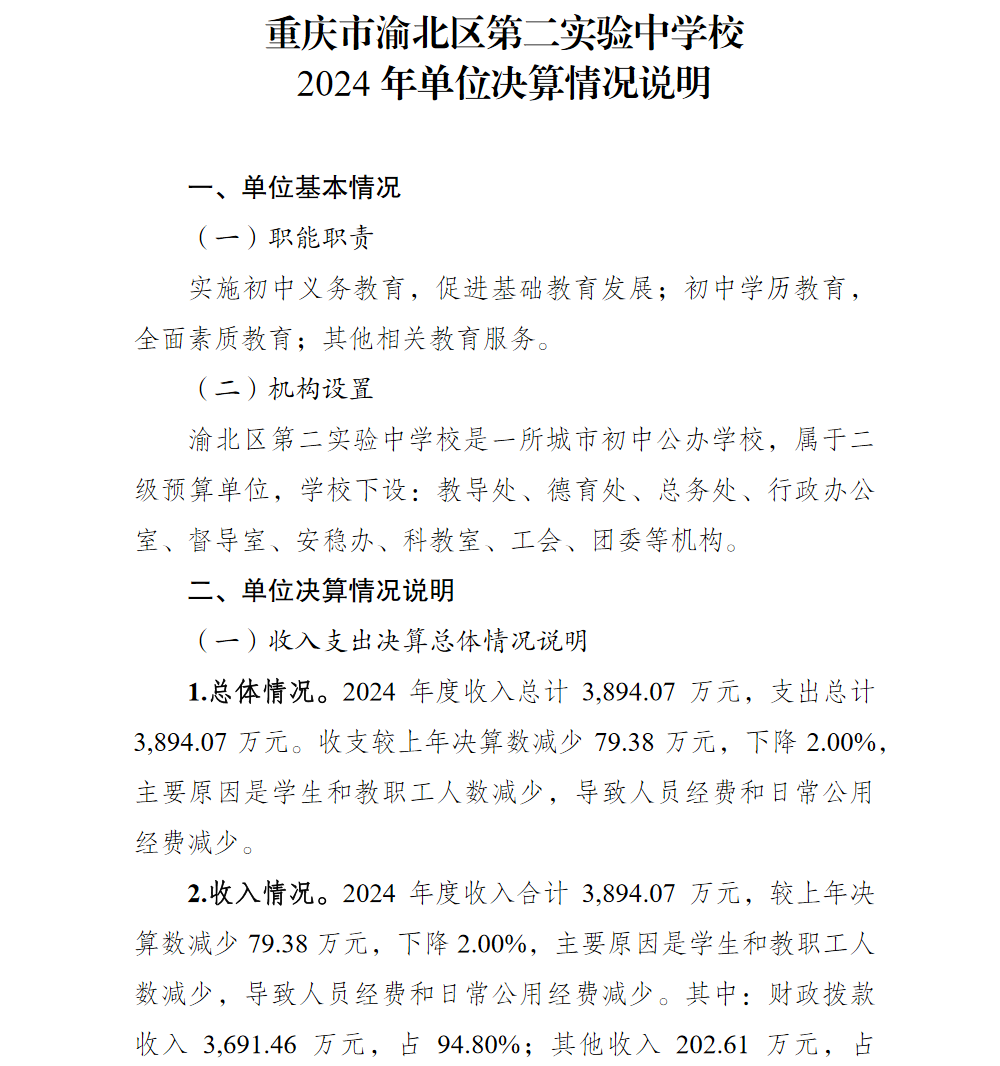重庆市渝北区第二实验中学校2024年单位决算情况说明