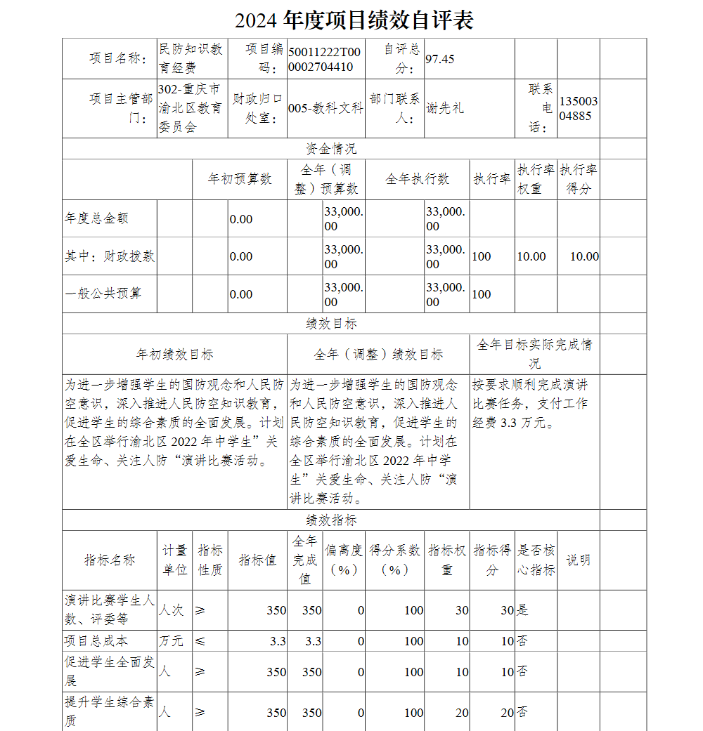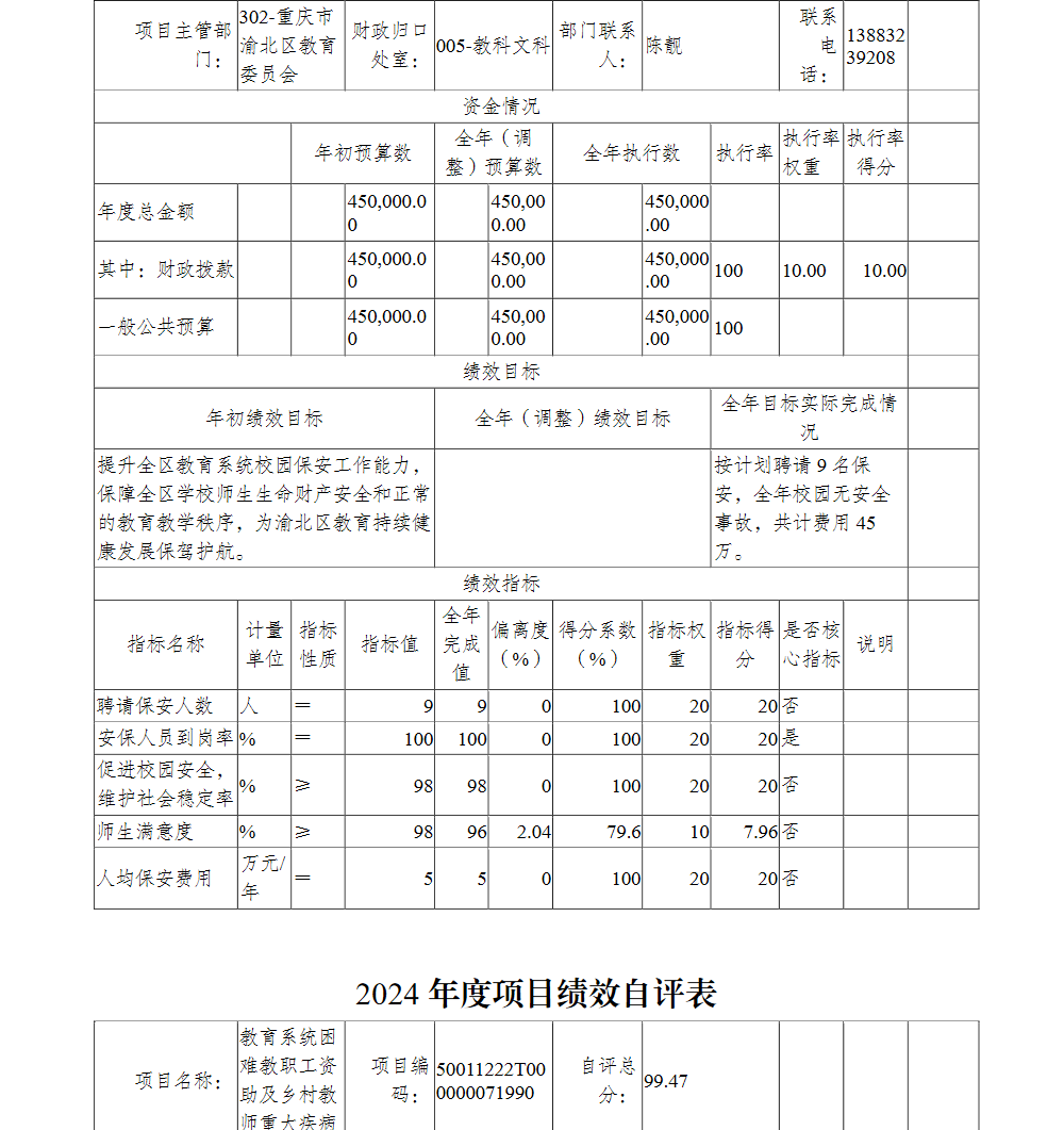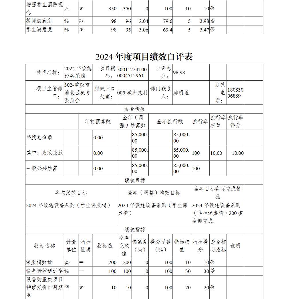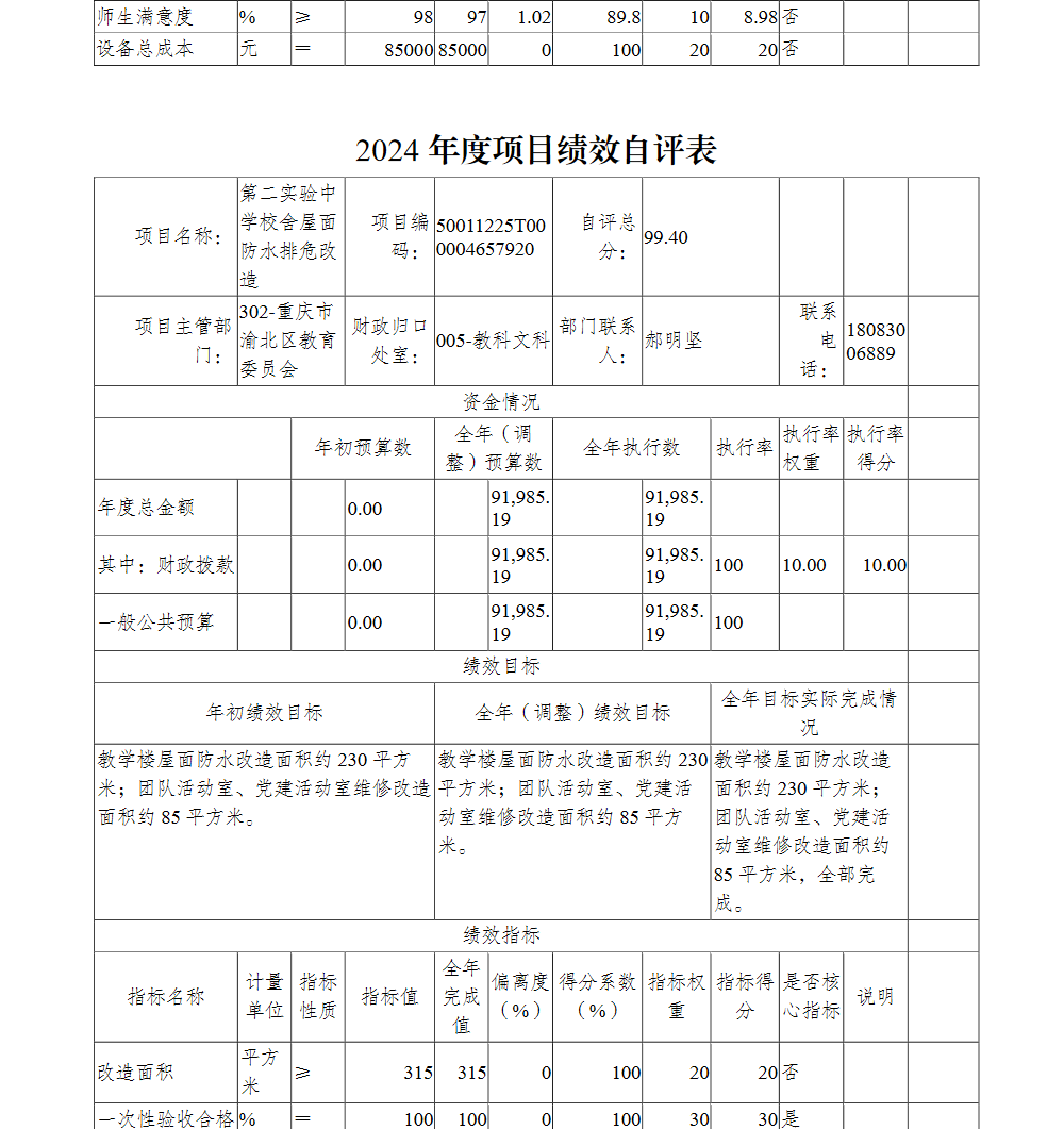 重庆市渝北区第二实验中学校2024年单位决算情况说明