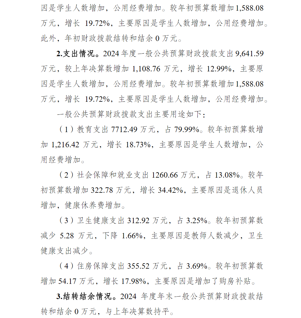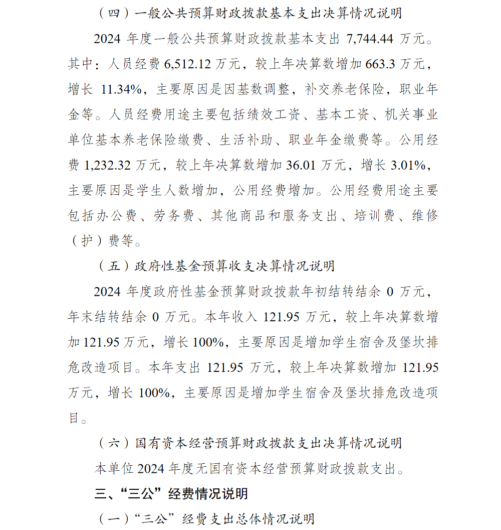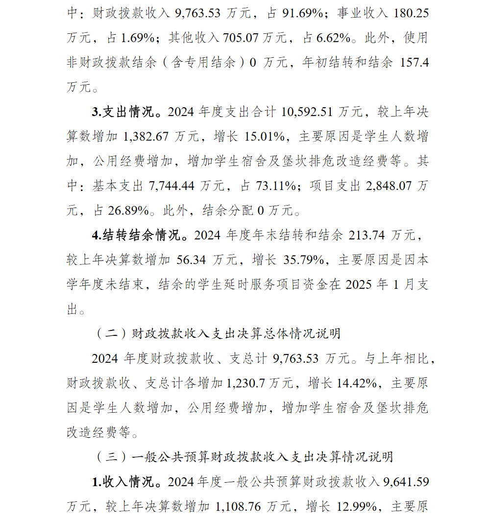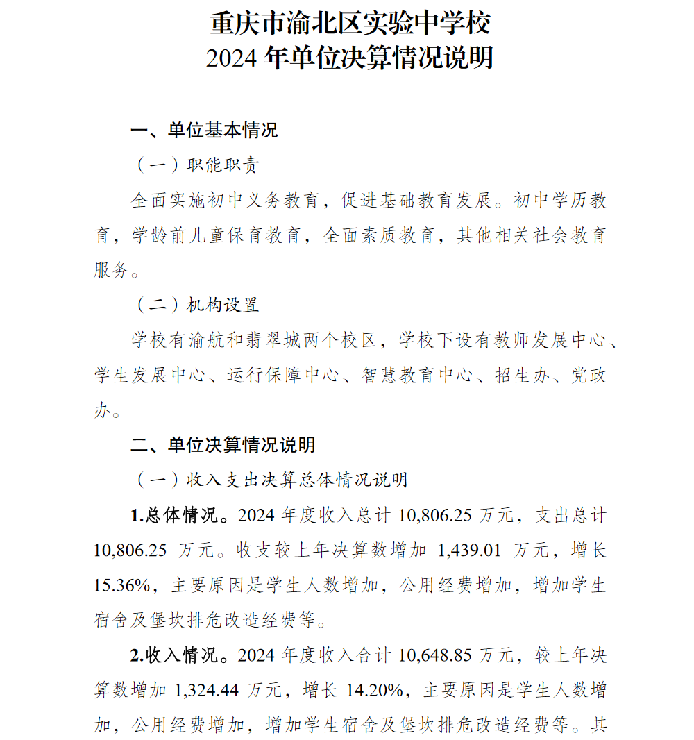 重庆市渝北区实验中学校2024年单位决算情况说明