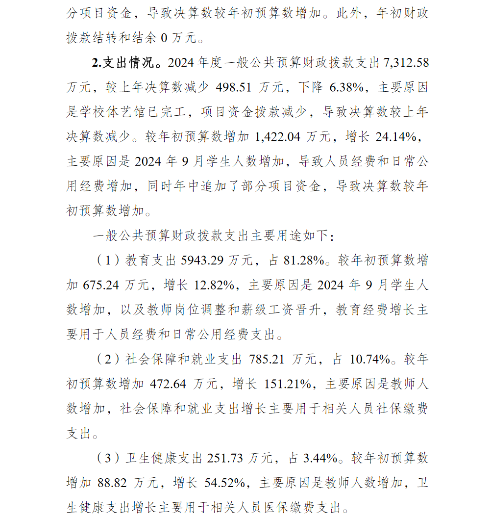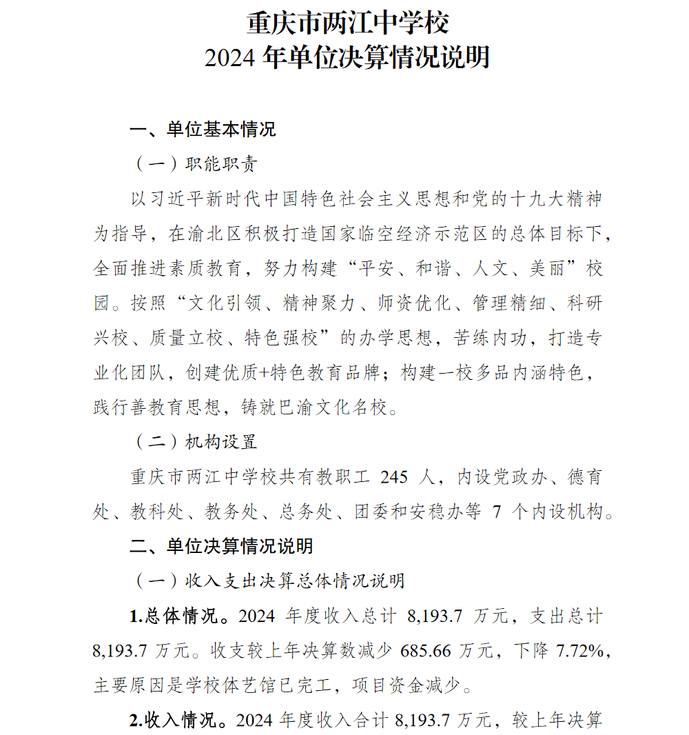 重庆市两江中学校2024年单位决算情况说明