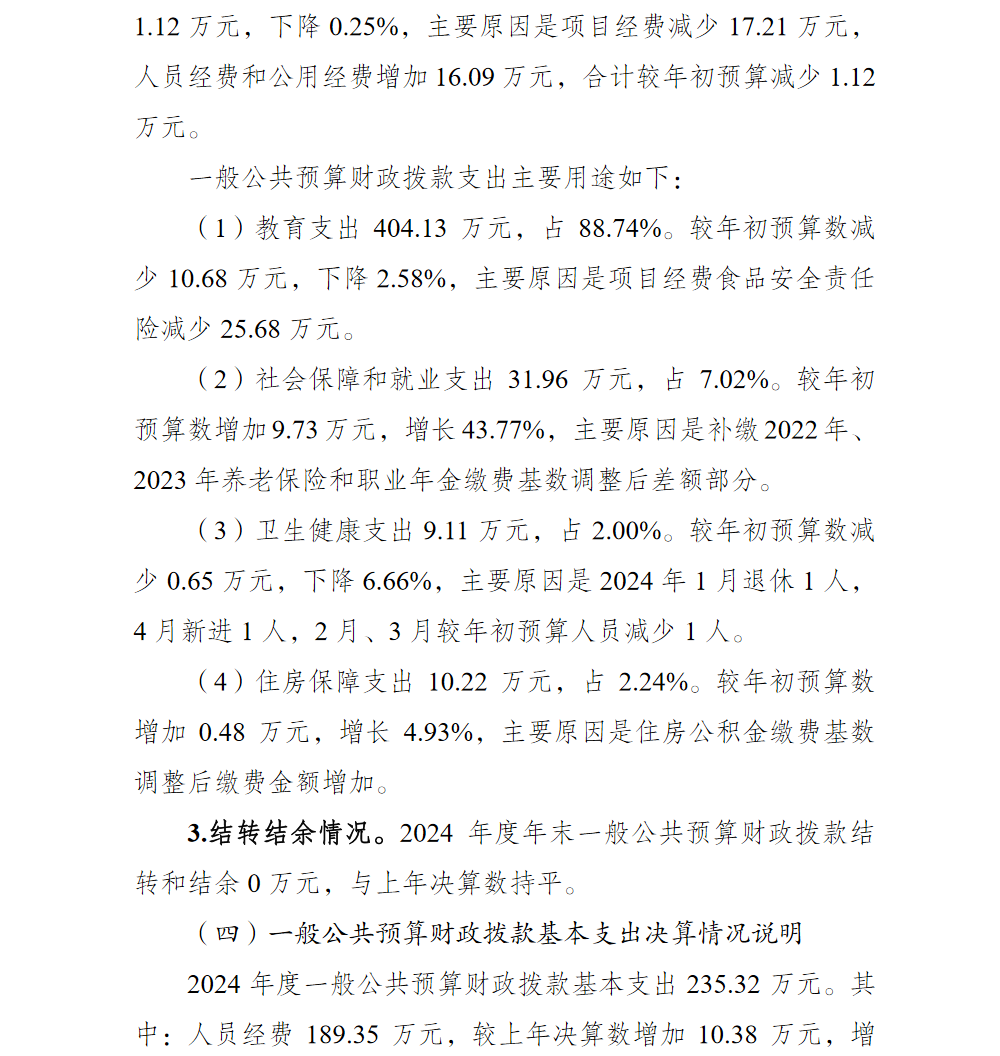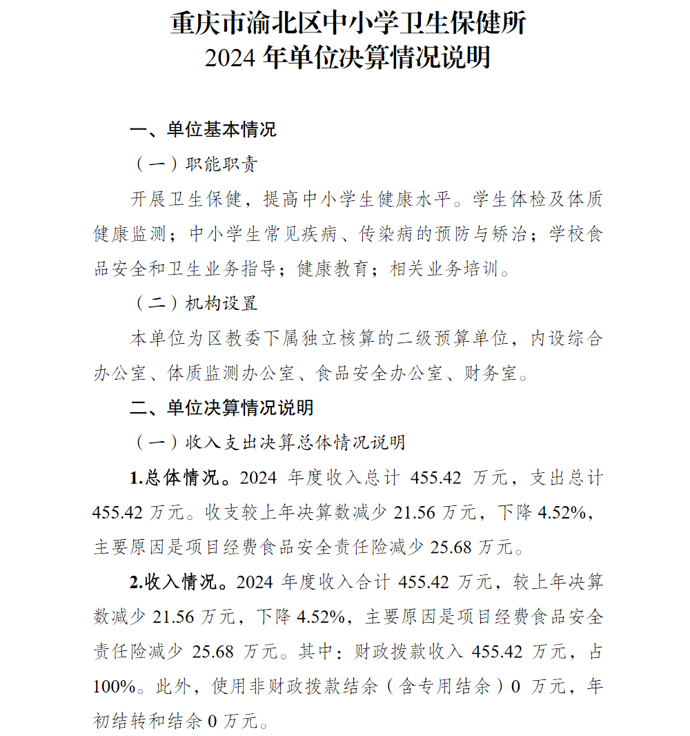 重庆市渝北区中小学卫生保健所2024年单位决算情况说明