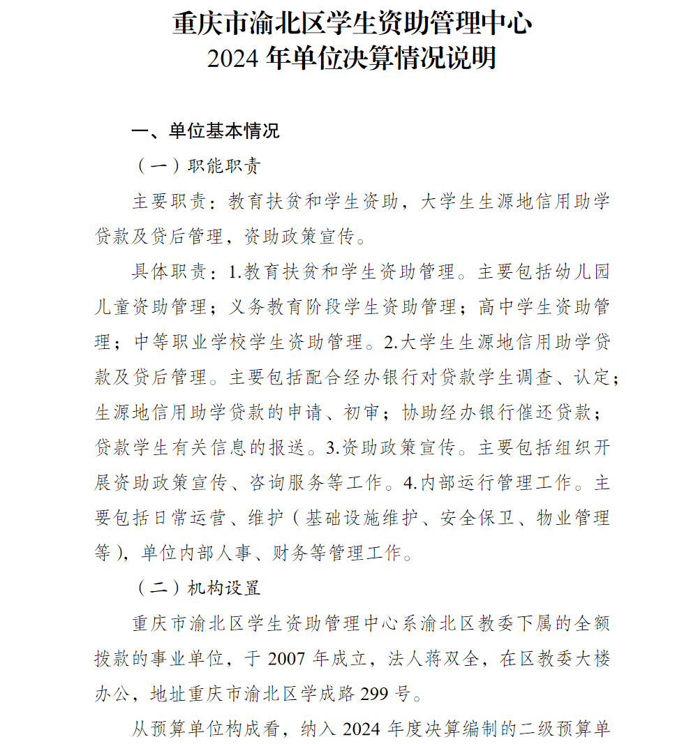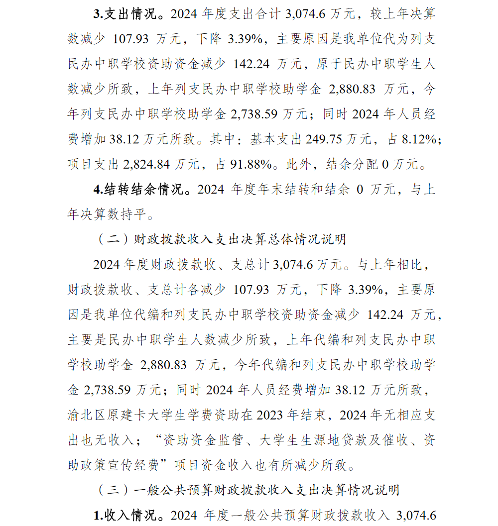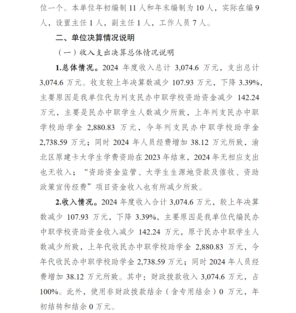 重庆市渝北区学生资助管理中心2024年单位决算情况说明